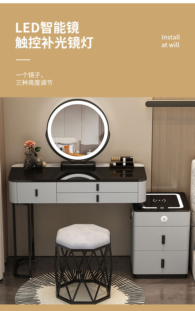 Elegante aparador moderno simple multifuncional inalámbrico Bluetooth carga Luz de lujo Internet celebridad pecho de cajones integrado tocador
