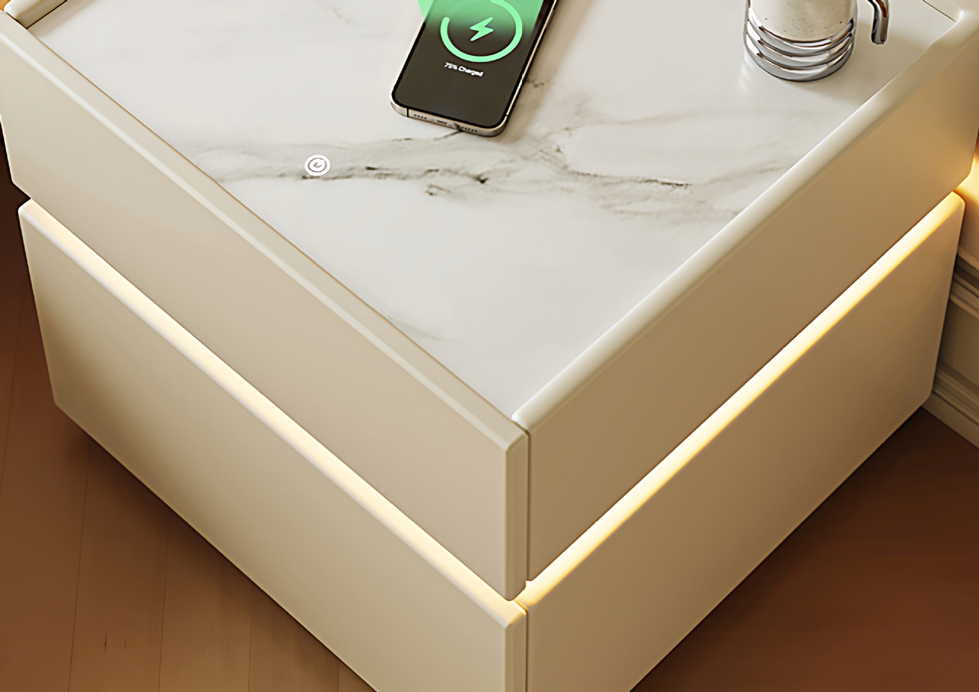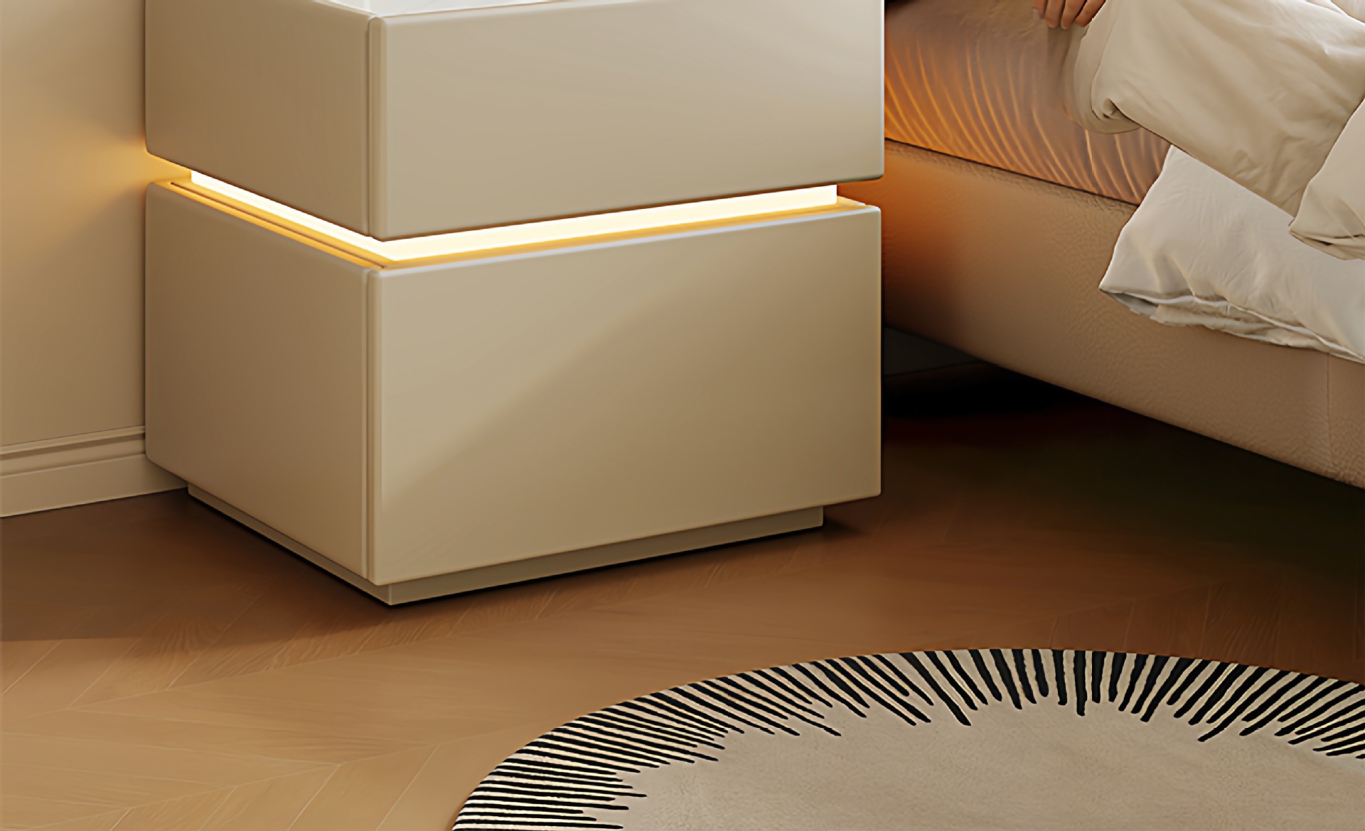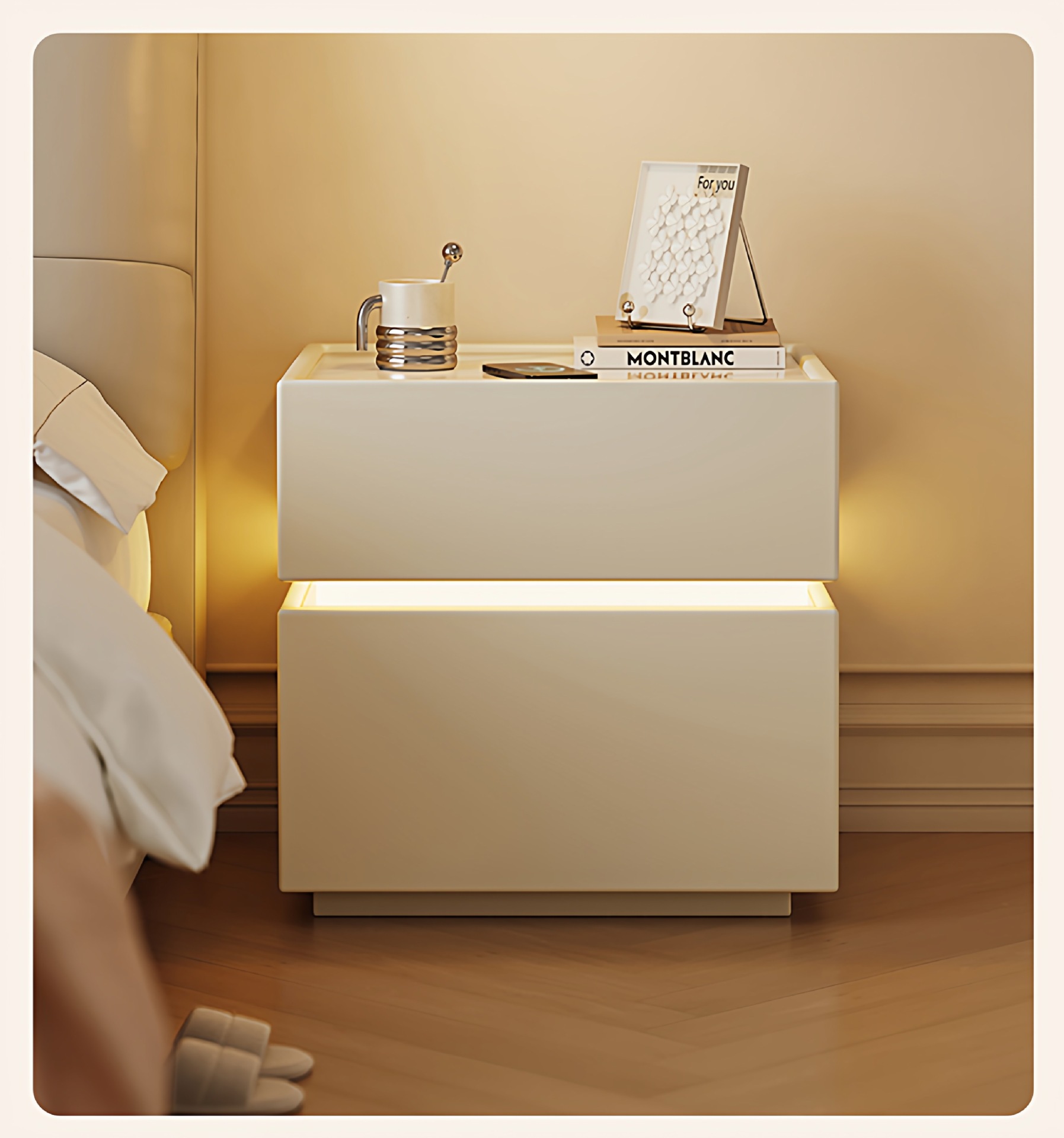 Madera de lujo ligera de alta sensación de mesilla de cama 2025 nuevo estilo italiano simple moderno dormitorio cuero inteligente gabinete de cama
