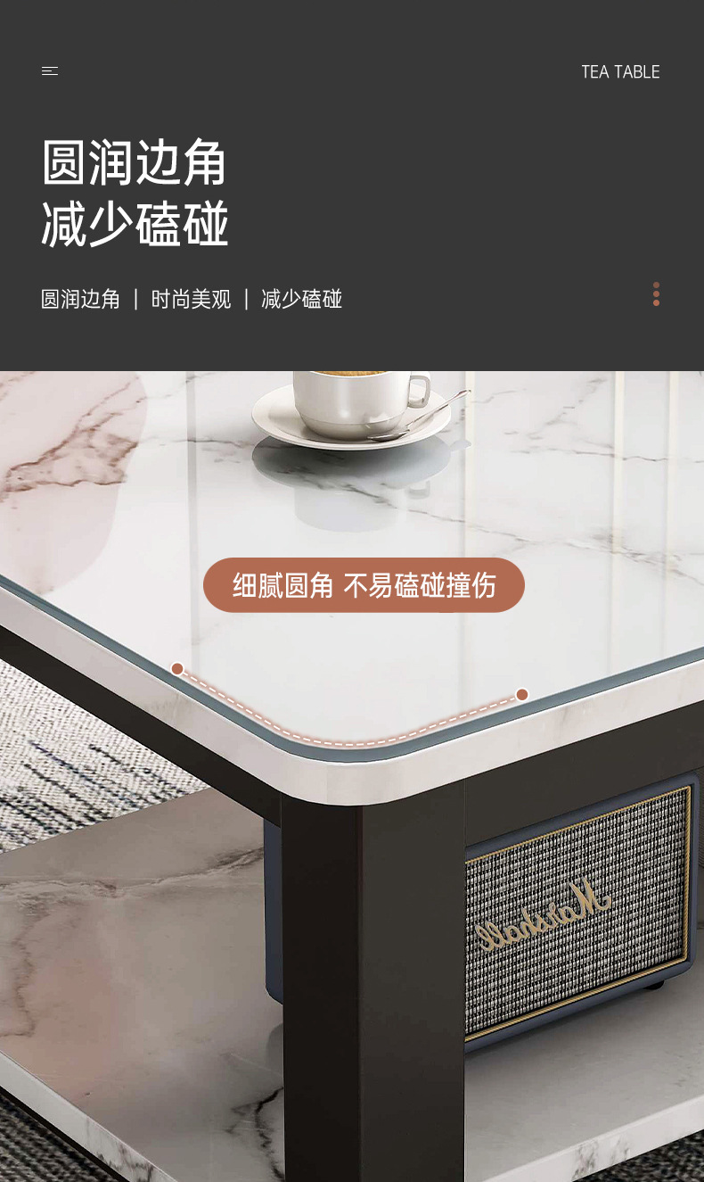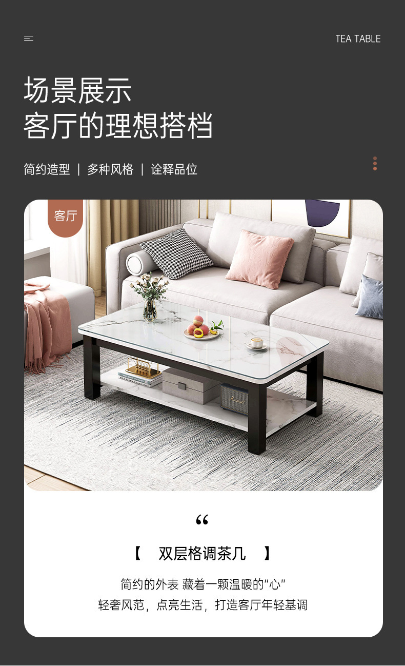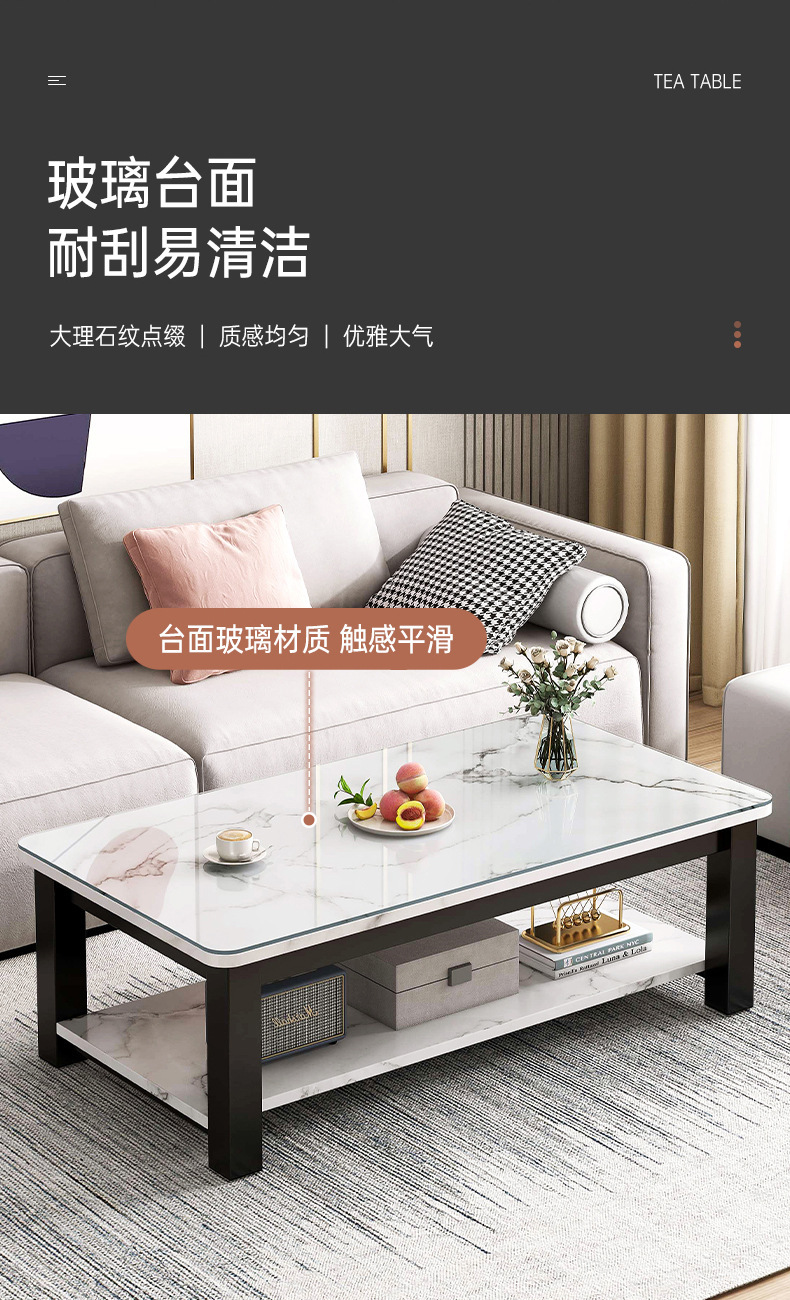 Mesa de té, mesa de oficina, mesa doméstica, mesa de té, balcón de lujo, estantería de vidrio, sala de estar, mesa de té simple