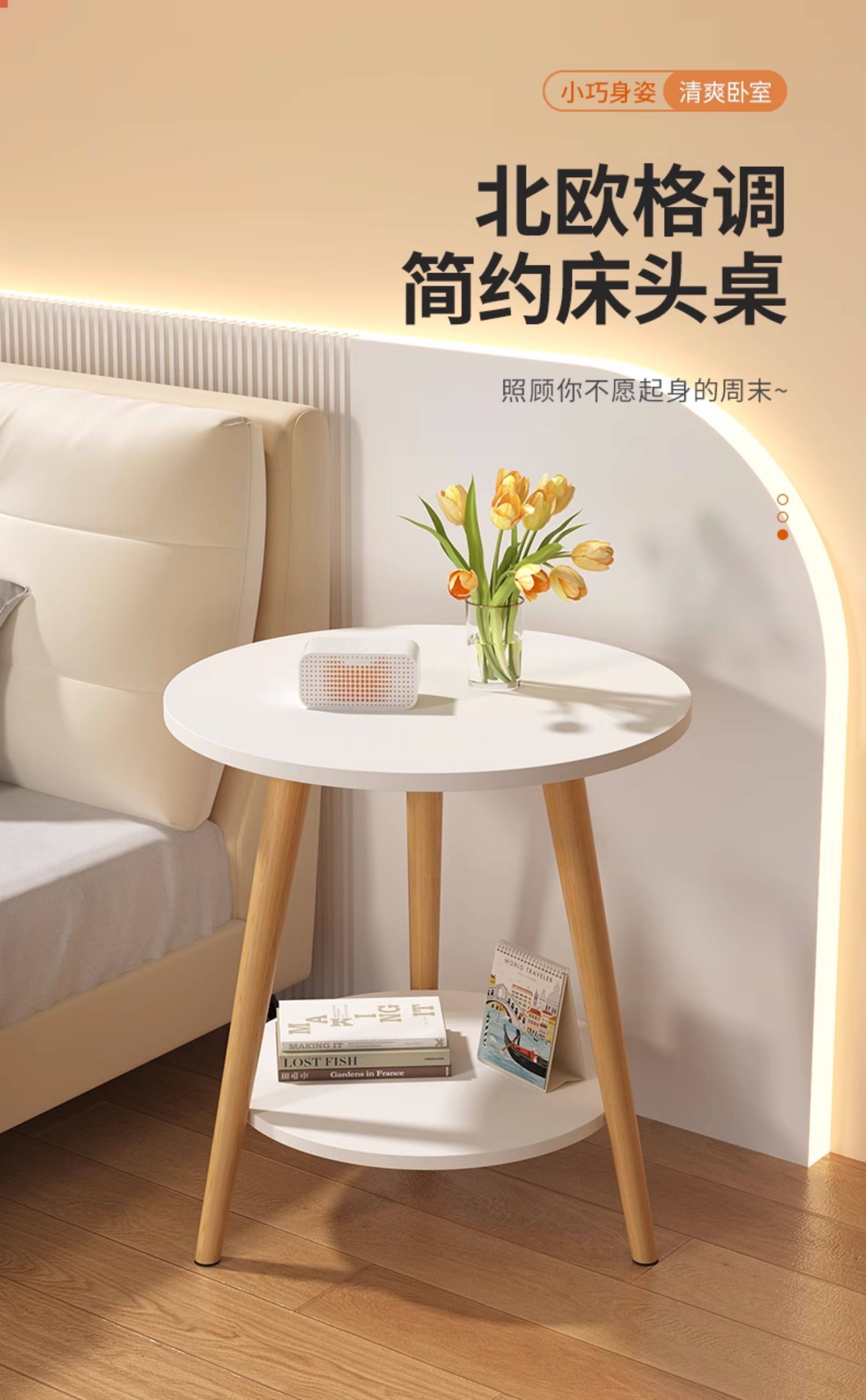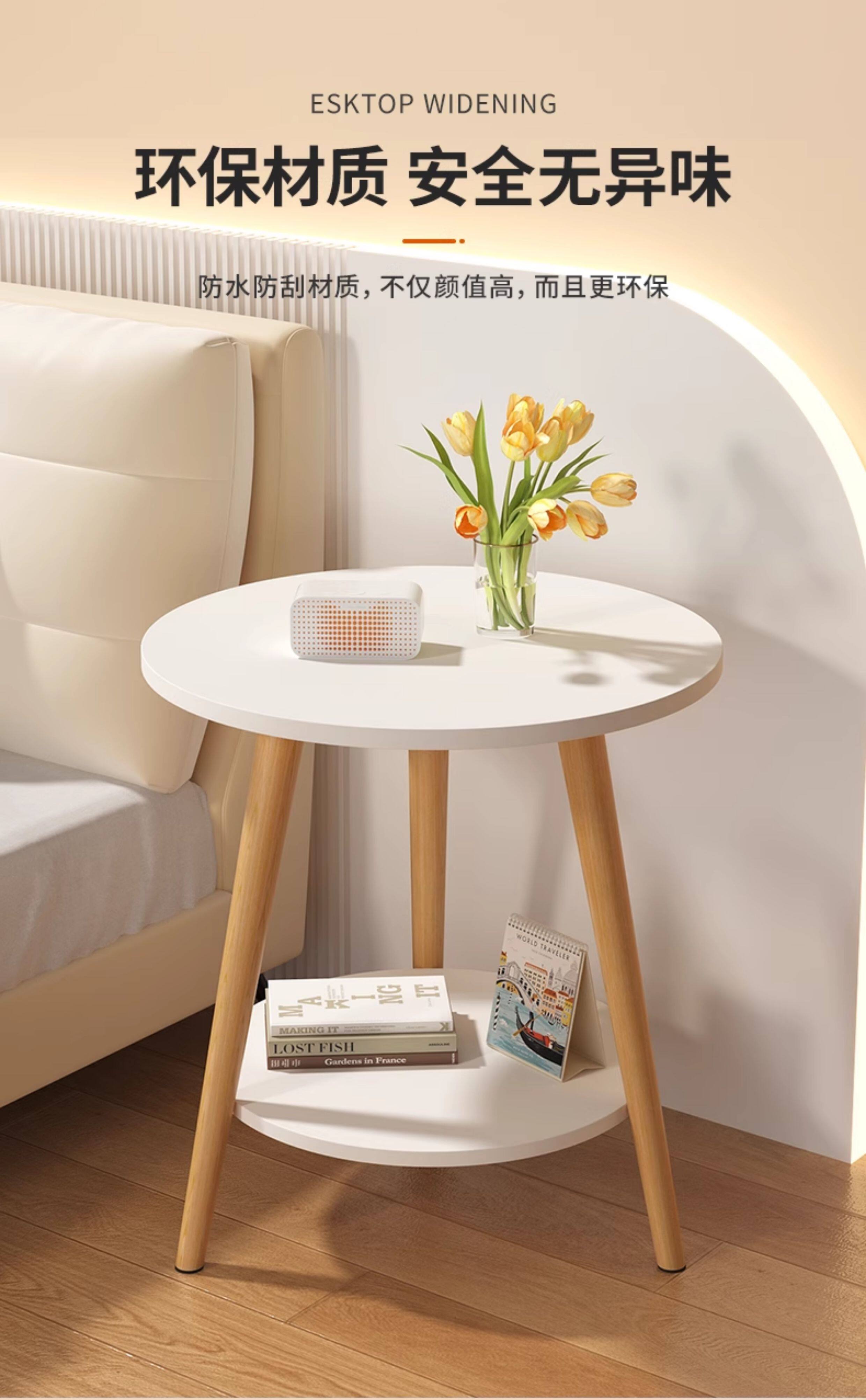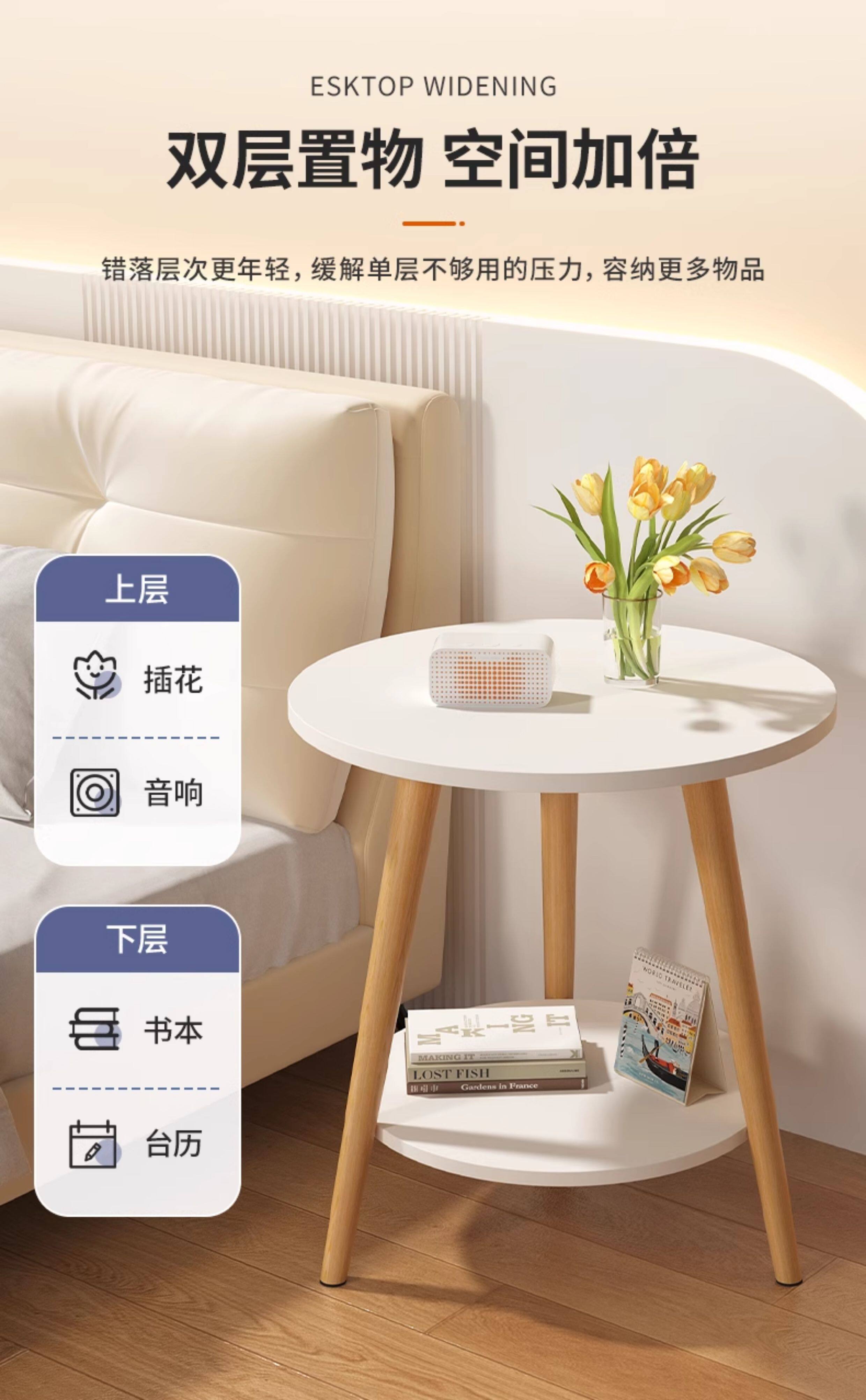 Mesa de cabecera de doble capa mesa de té pequeña casa de alquiler al lado de la casa balcón pequeña mesa de té estante de almacenamiento doméstico estante de almacenamiento de dormitorio