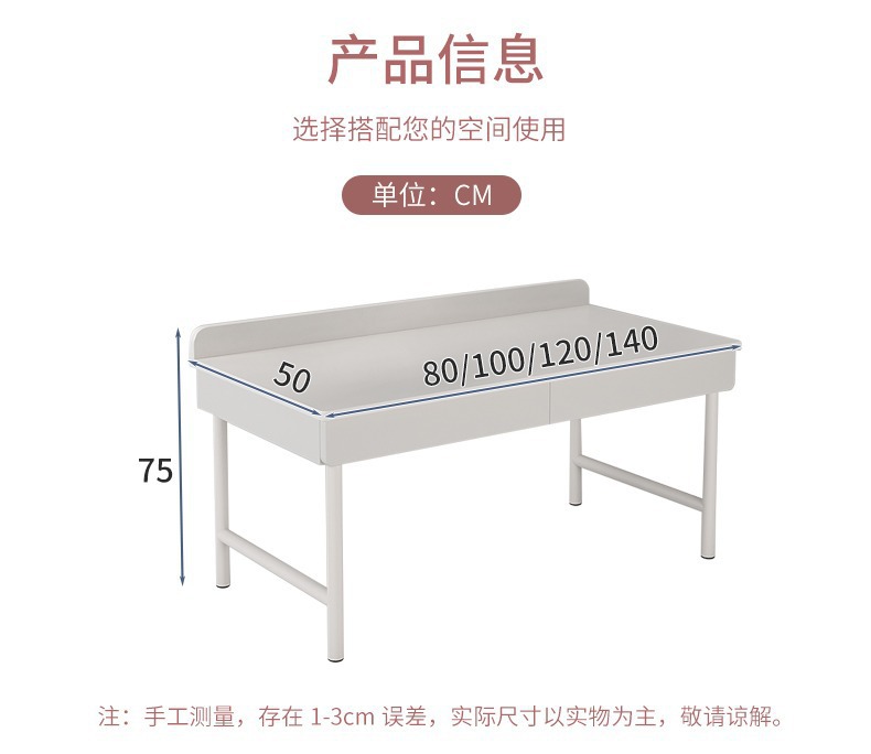 | Color | [doble sorteo actualizado] 80 * 50 * 75cm blanco cálido, [doble sorteo actualizado] 120 * 50 * 75cm blanco cálido, [doble sorteo actualizado] 80 * 50 * 75cm gris morandi, [doble sorteo actualizado] 100 * 50 * 75cm gris morandi, [doble sorteo actualizado] 120 * 50 * 75cm gris morandi, [escritorio 25mm engrosado + tubo redondo estándar 50mm] esquina redonda - blanco simple 80 * 40 * 75cm, [escritorio 25mm engrosado + tubo redondo estándar 50mm] esquina redonda - blanco simple 80 * 50 * 75cm, [escritorio 25mm engrosado + tubo redondo estándar 50mm] esquina redonda - blanco simple* 75cm, [engrosamiento de la Mesa de 25mm + tubo redondo estándar de 50mm] redondeado - blanco simple 100 * 60 * 75cm, [engrosamiento de la Mesa de 25mm + tubo redondo estándar de 50mm] redondeado - blanco simple 120 * 40 * 75cm, [engrosamiento de la Mesa de 25mm + tubo redondo estándar de 50mm] redondeado - blanco simple 120 * 50 * 75cm, [engrosamiento de la Mesa de 25mm + tubo redondo estándar de 50mm] redondeado - blanco simple 120 * 60 * 75cm, [engrosamiento de la Mesa de 25mm + tubo redondo estándar de 50mm] - redondeado - blanco simple 140 * 40 * 75cm, [mesa engrosada de 25 mm + tubo redondo estándar de 50 mm] redondeado - blanco simple 140 * 60 * 75 cm, blanco + pie de madera maciza |