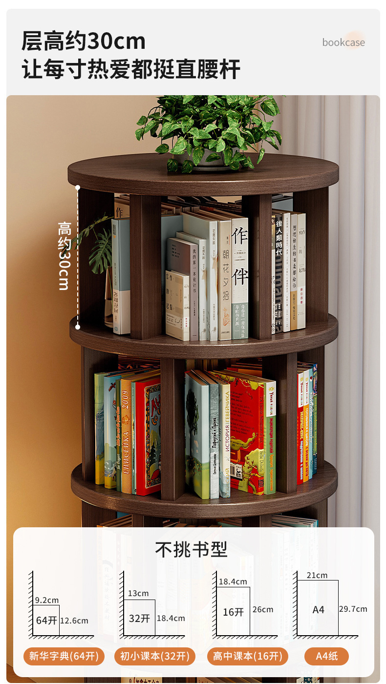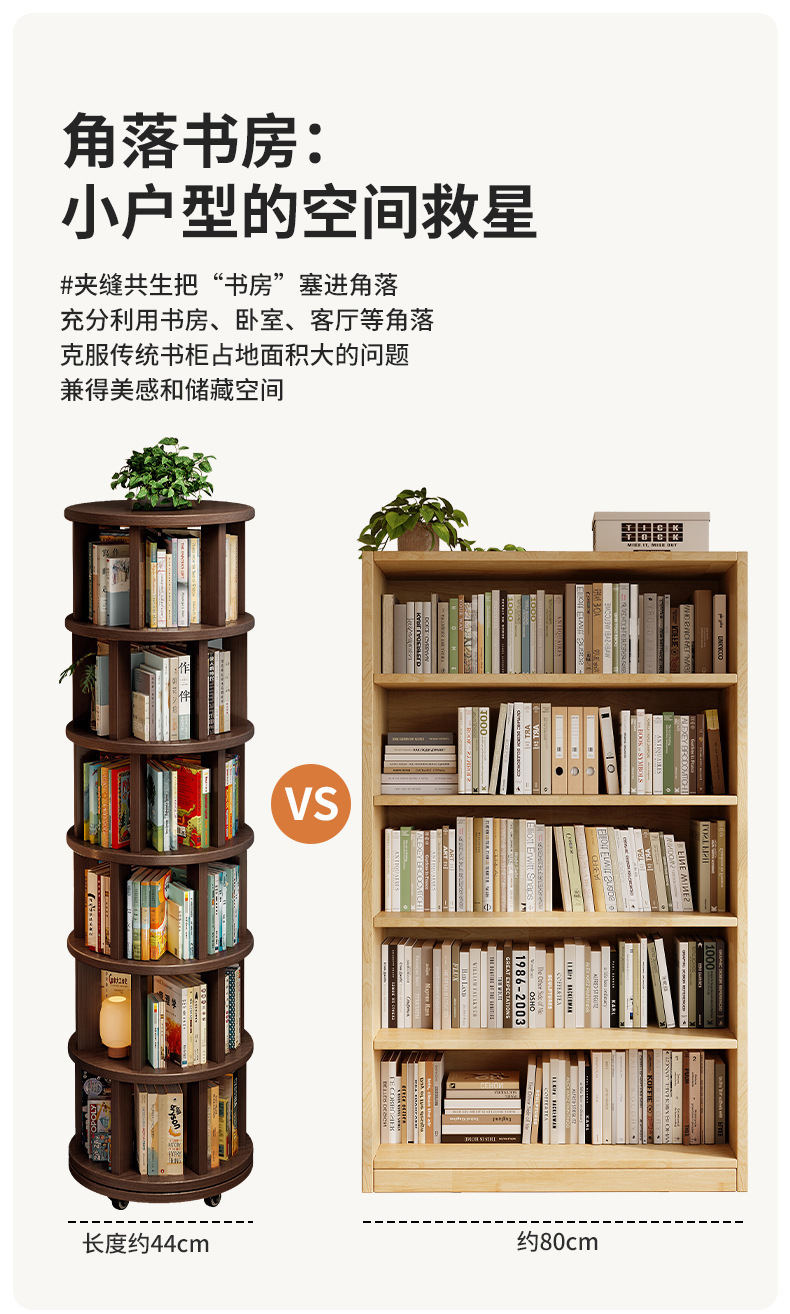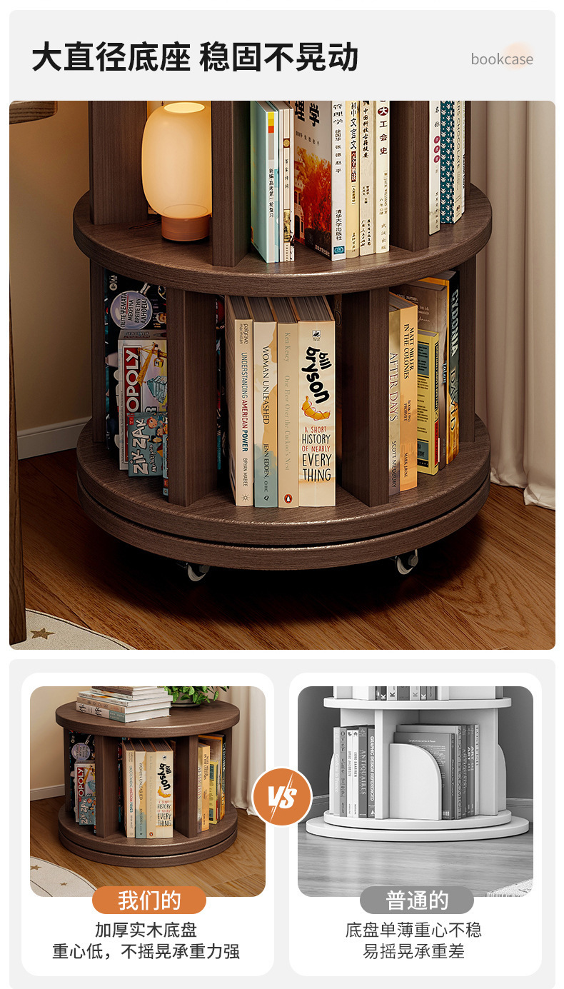 Estante giratorio de madera sólida estante de piso de 360 grados junto al escritorio móvil gabinete estrecho contra la pared gabinete de esquina