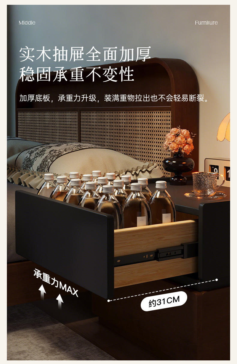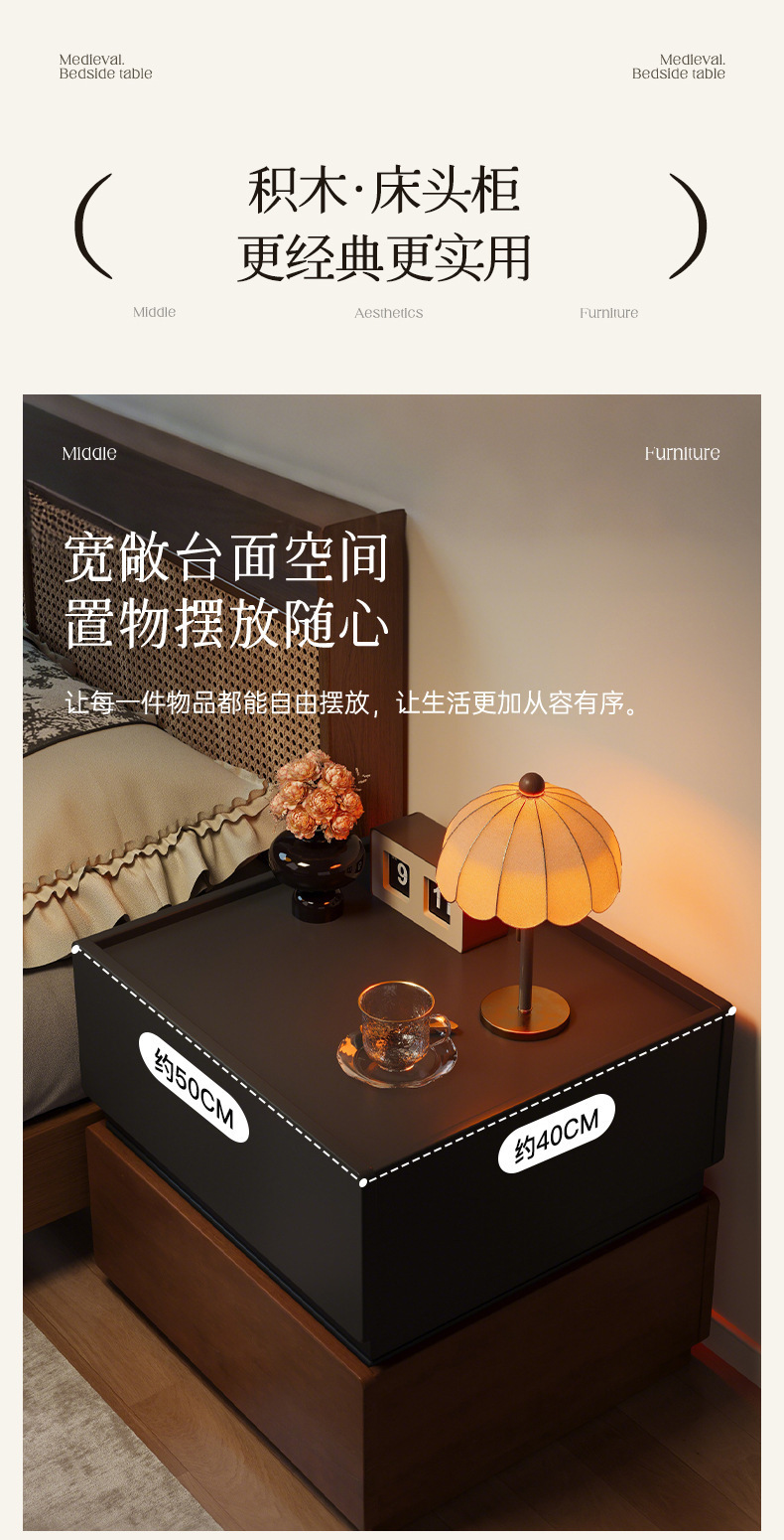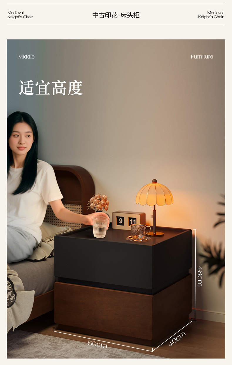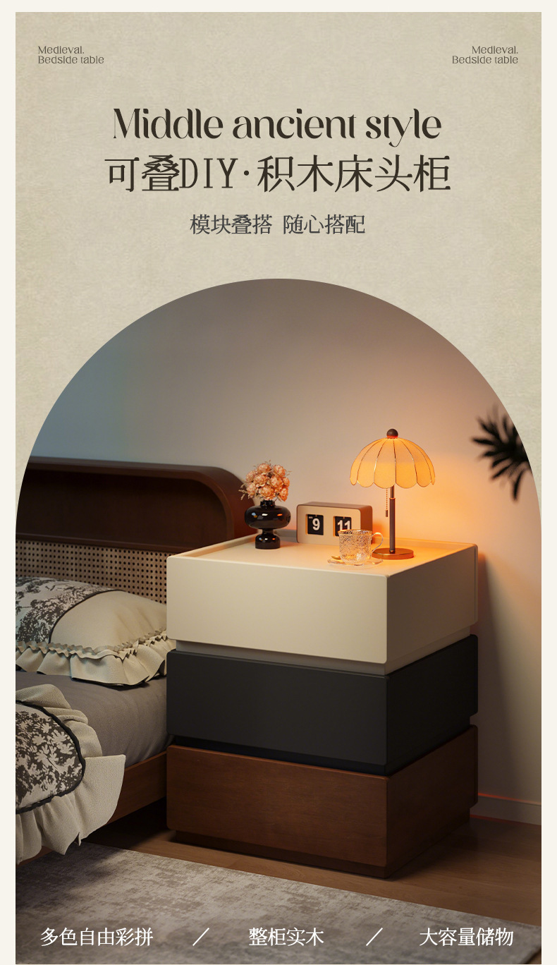 Todo el armario de cabecera de madera sólida creativo casero armario de almacenamiento de dormitorio 2025 nuevo armario de cabecera de cama de estilo medieval