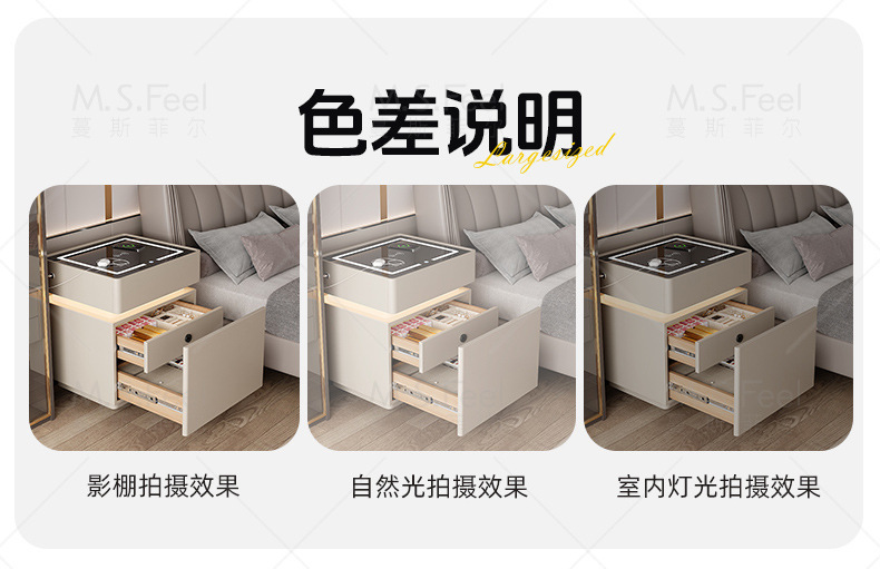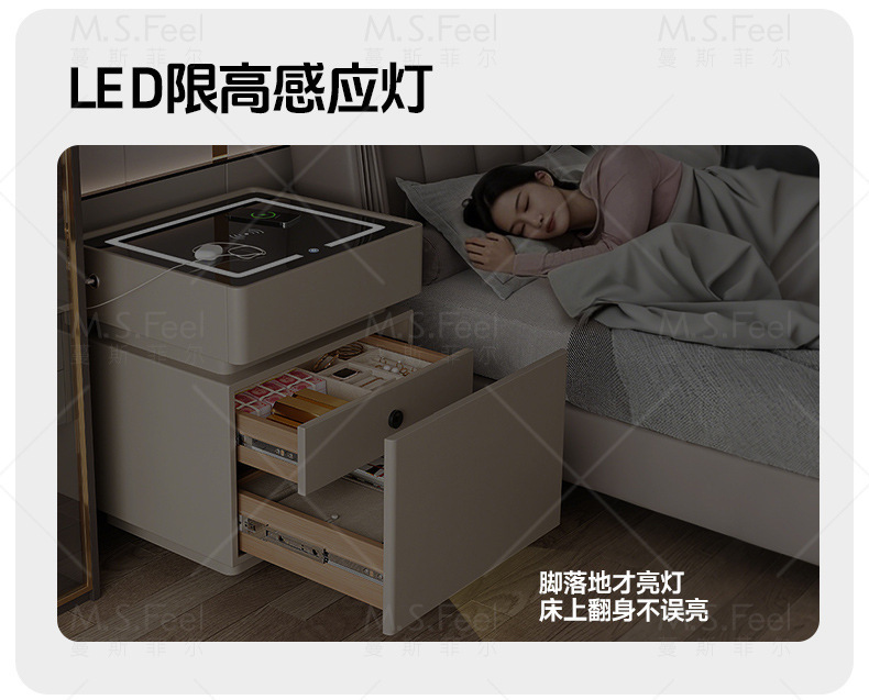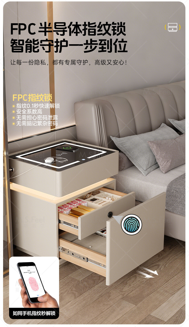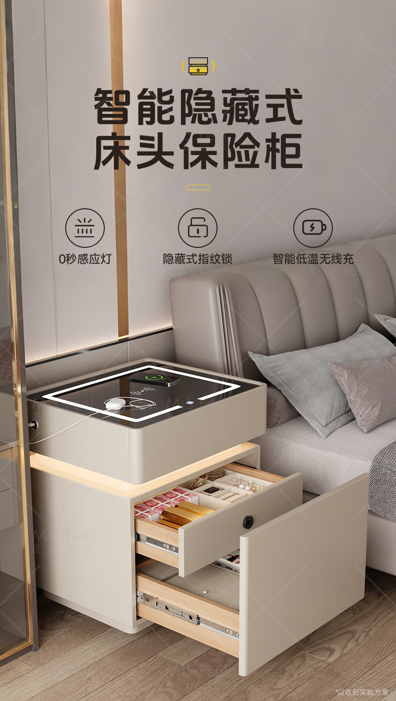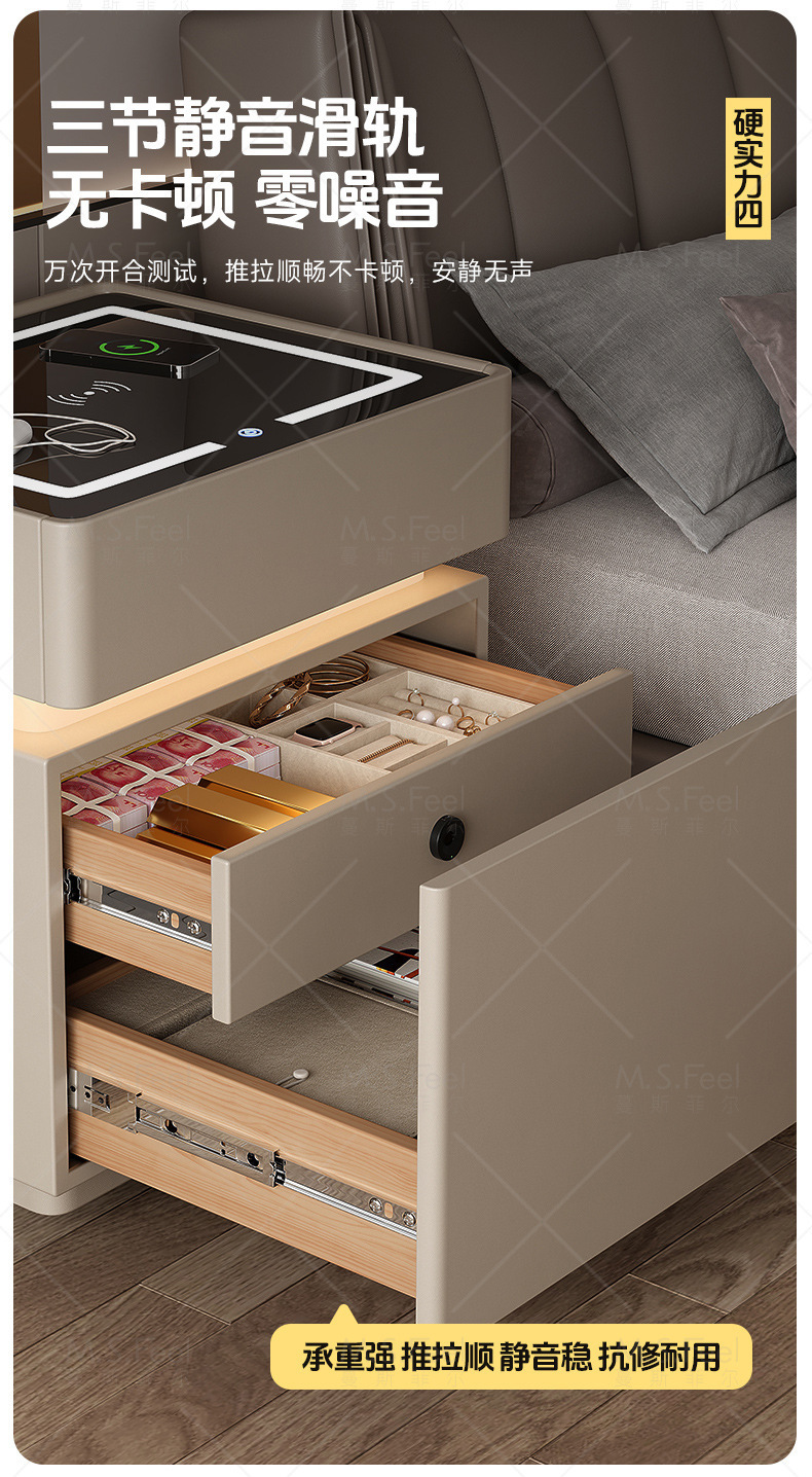 Smart bedside table2025 nuevo modelo simple de madera sólida con armario de almacenamiento oculto multifuncional con bloqueo de la cama