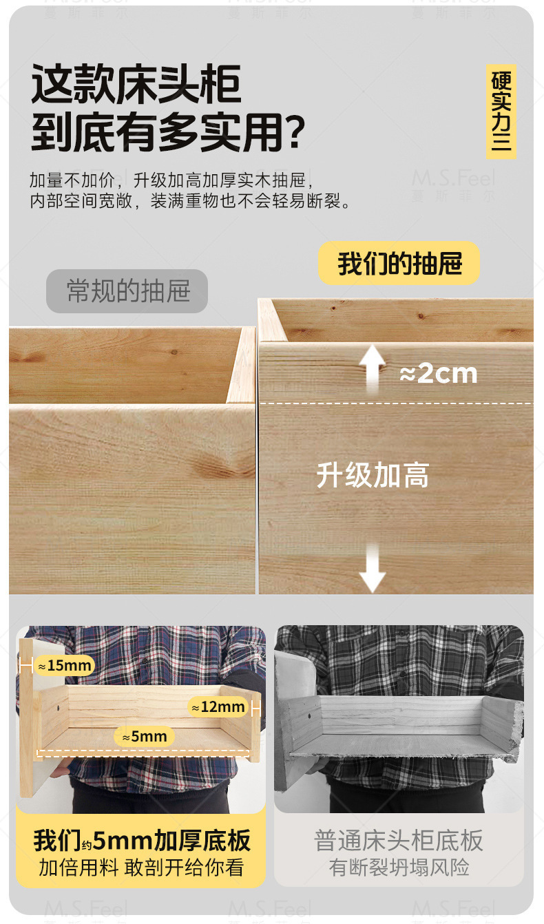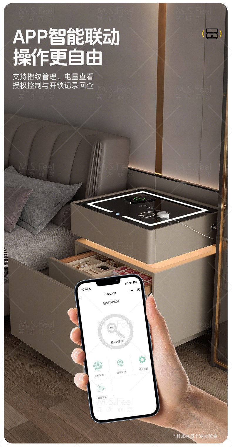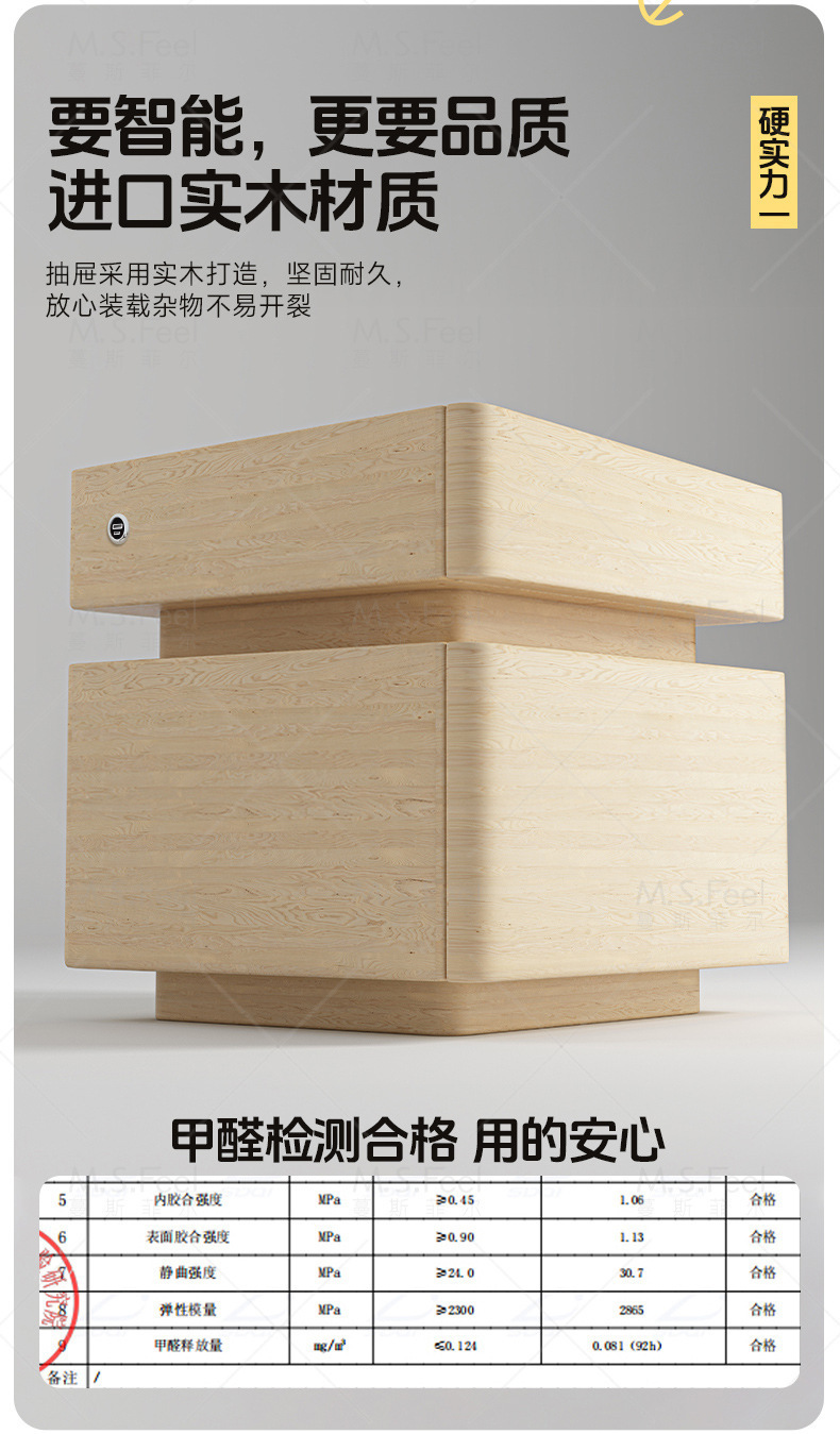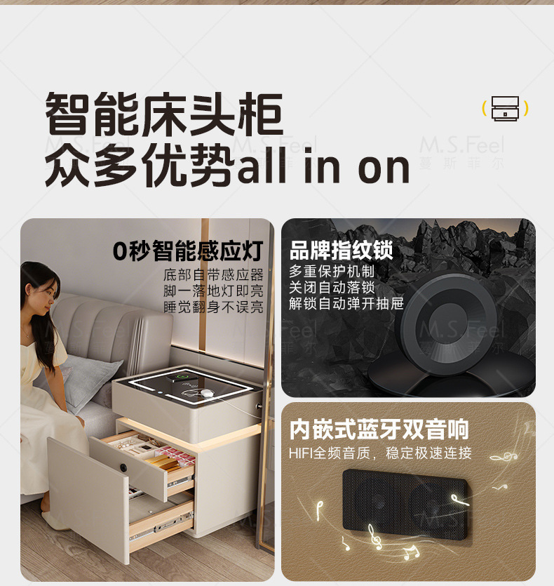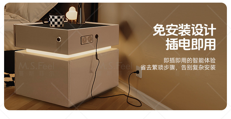 Smart bedside table2025 nuevo modelo simple de madera sólida con armario de almacenamiento oculto multifuncional con bloqueo de la cama