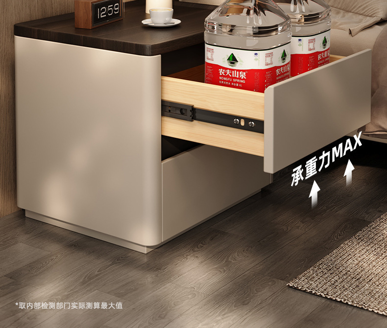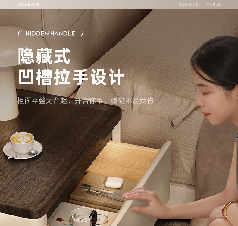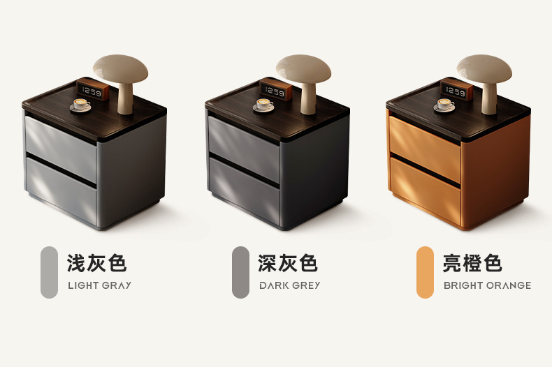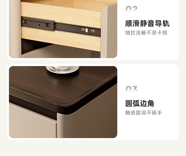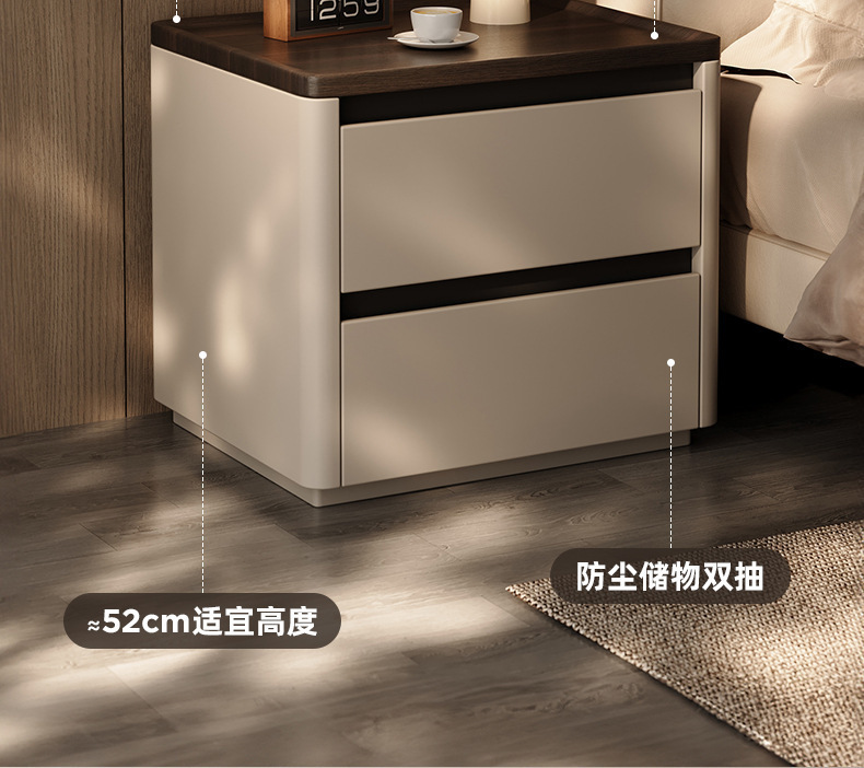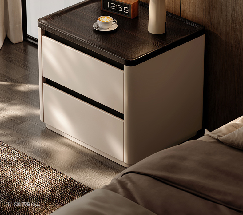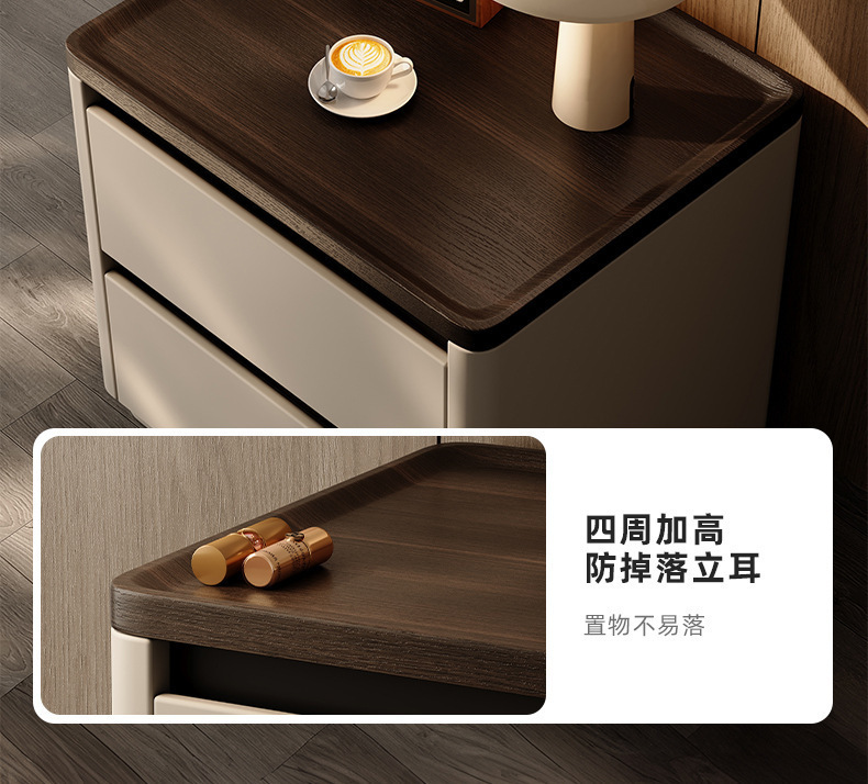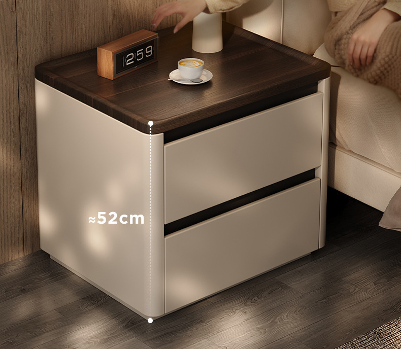 Minima mesita de cama de madera maciza2025 nuevo diseño de alta sensación de lujo ligero moderno y simple gabinete de cama de dormitorio familiar