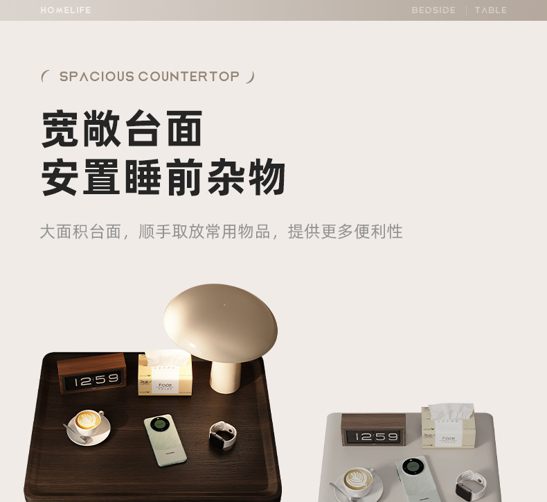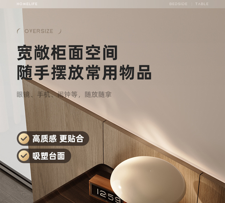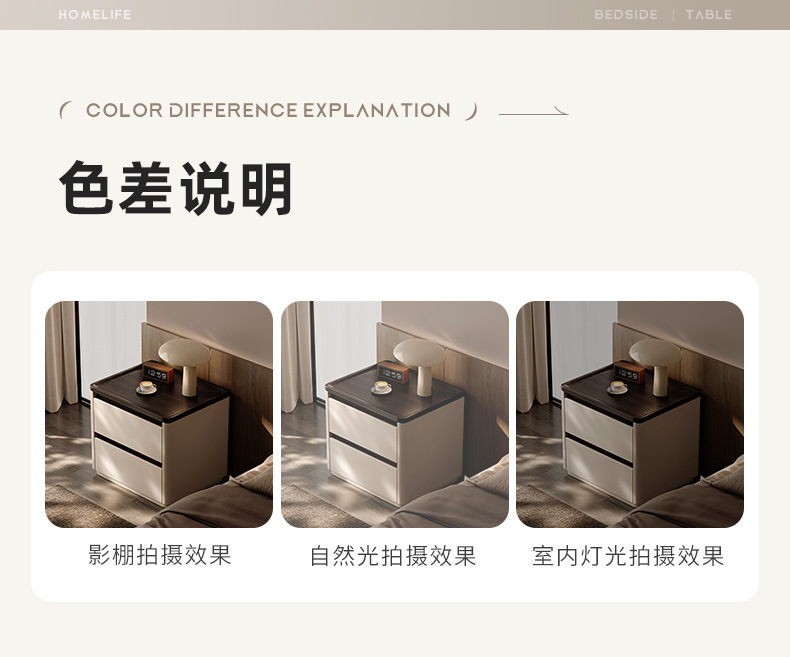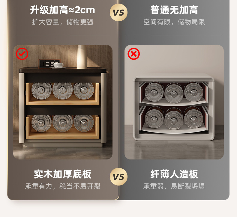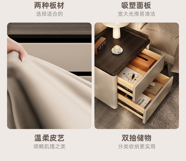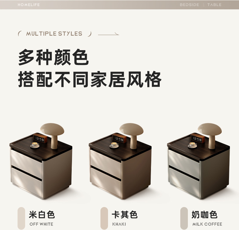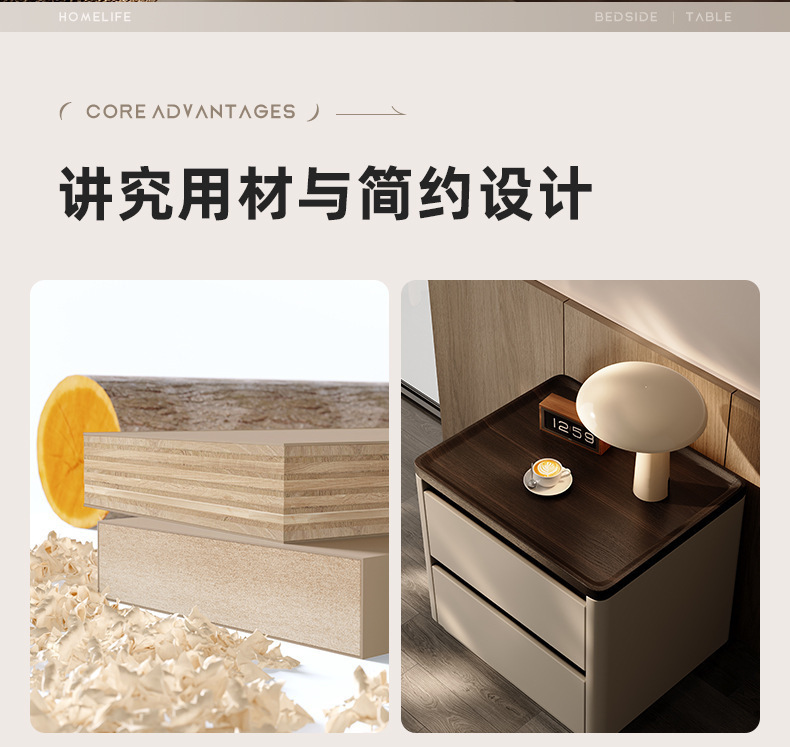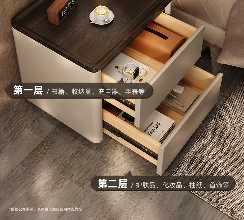 Minima mesita de cama de madera maciza2025 nuevo diseño de alta sensación de lujo ligero moderno y simple gabinete de cama de dormitorio familiar