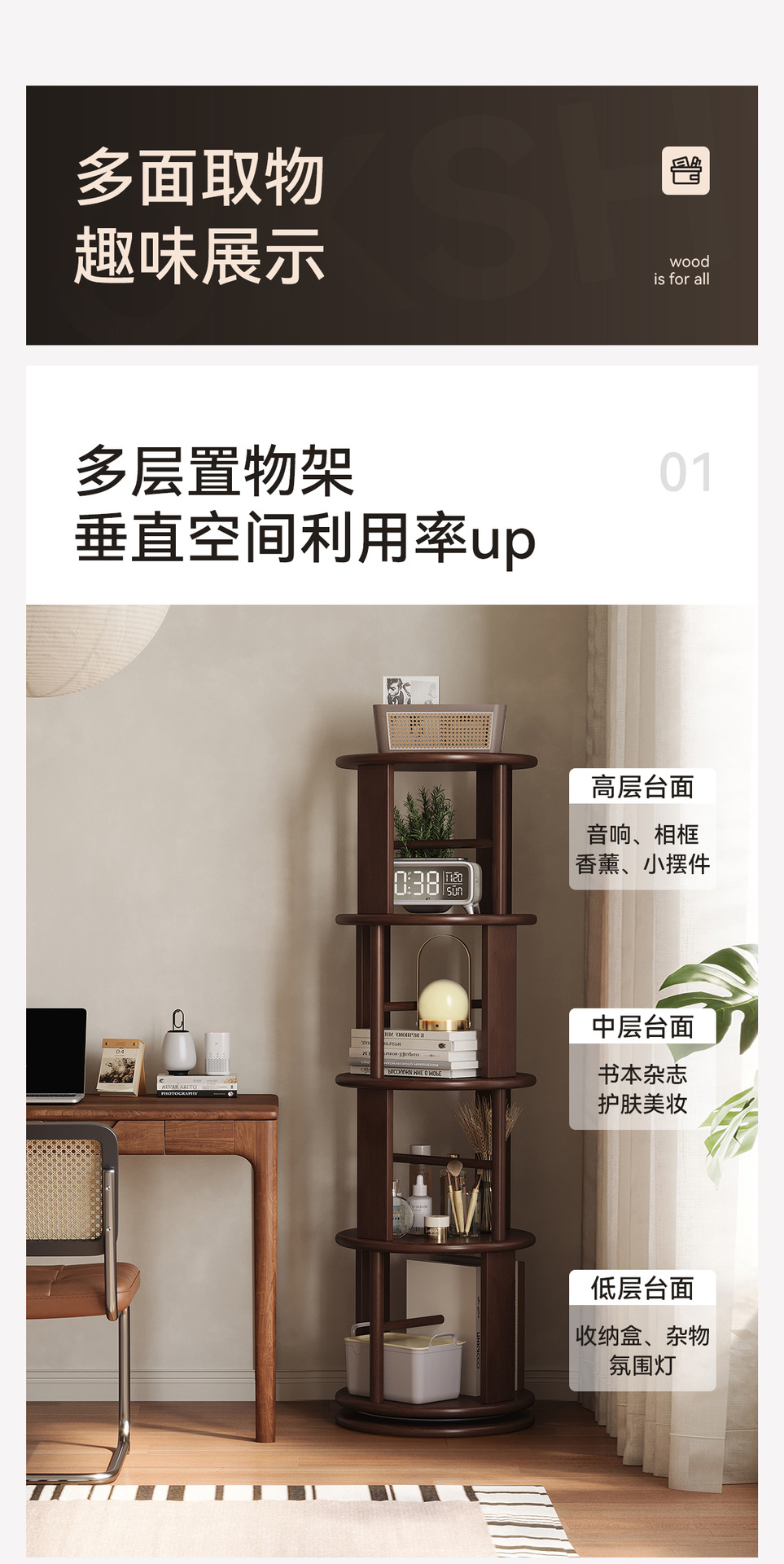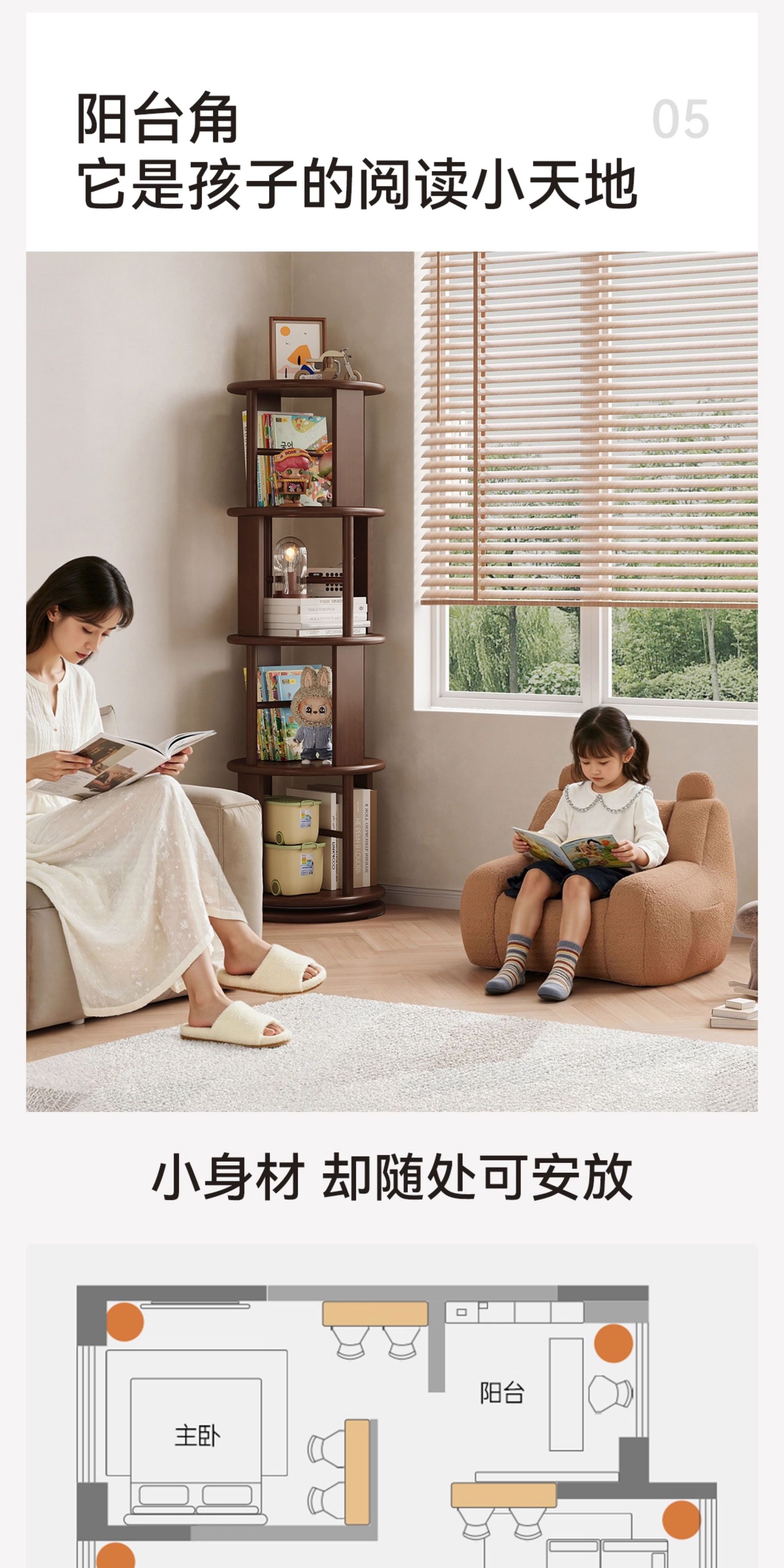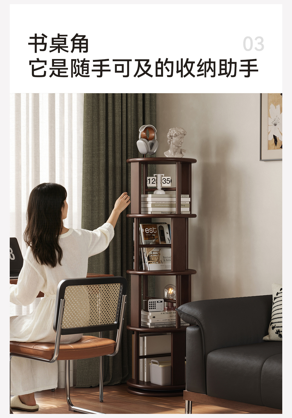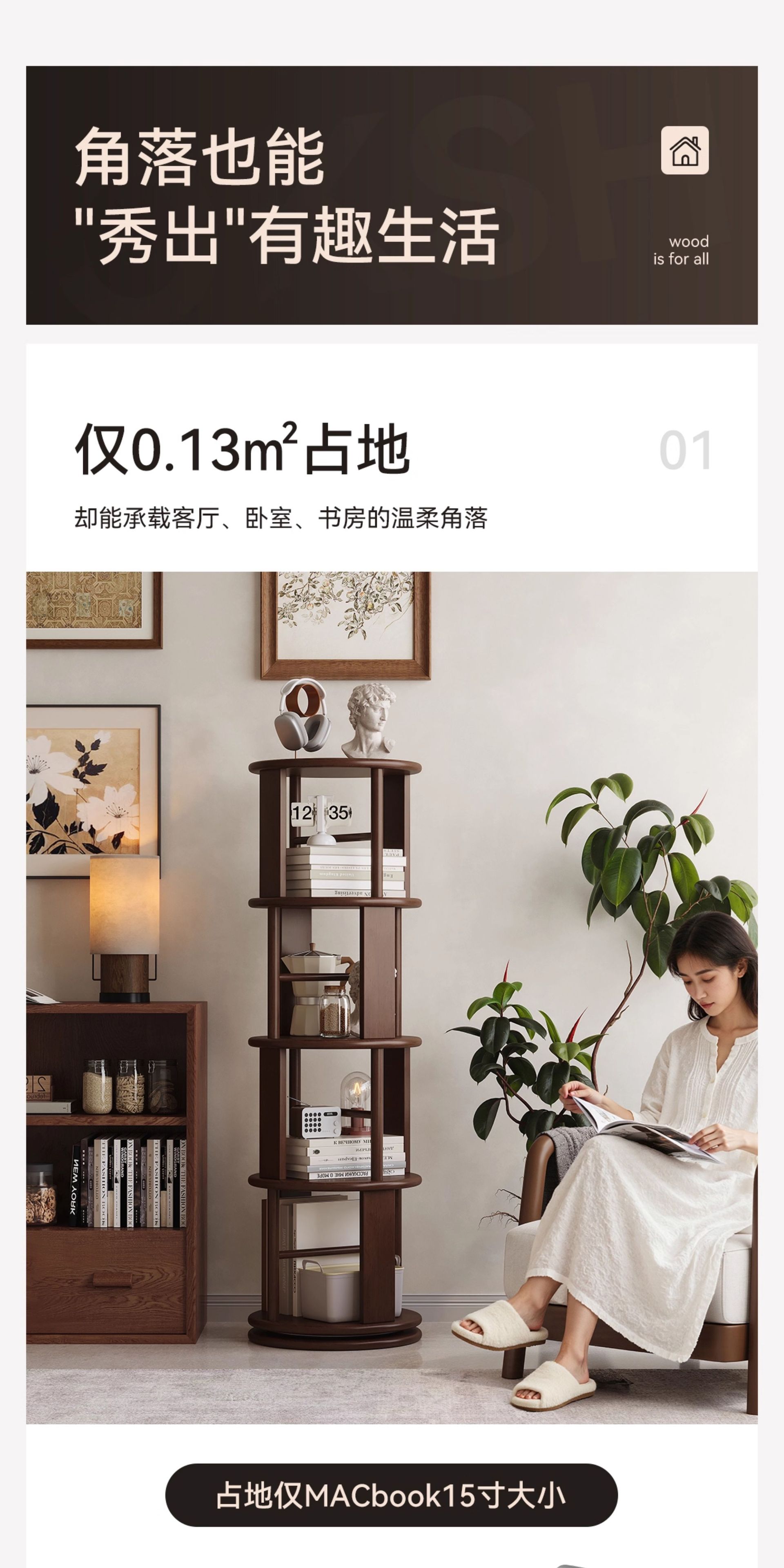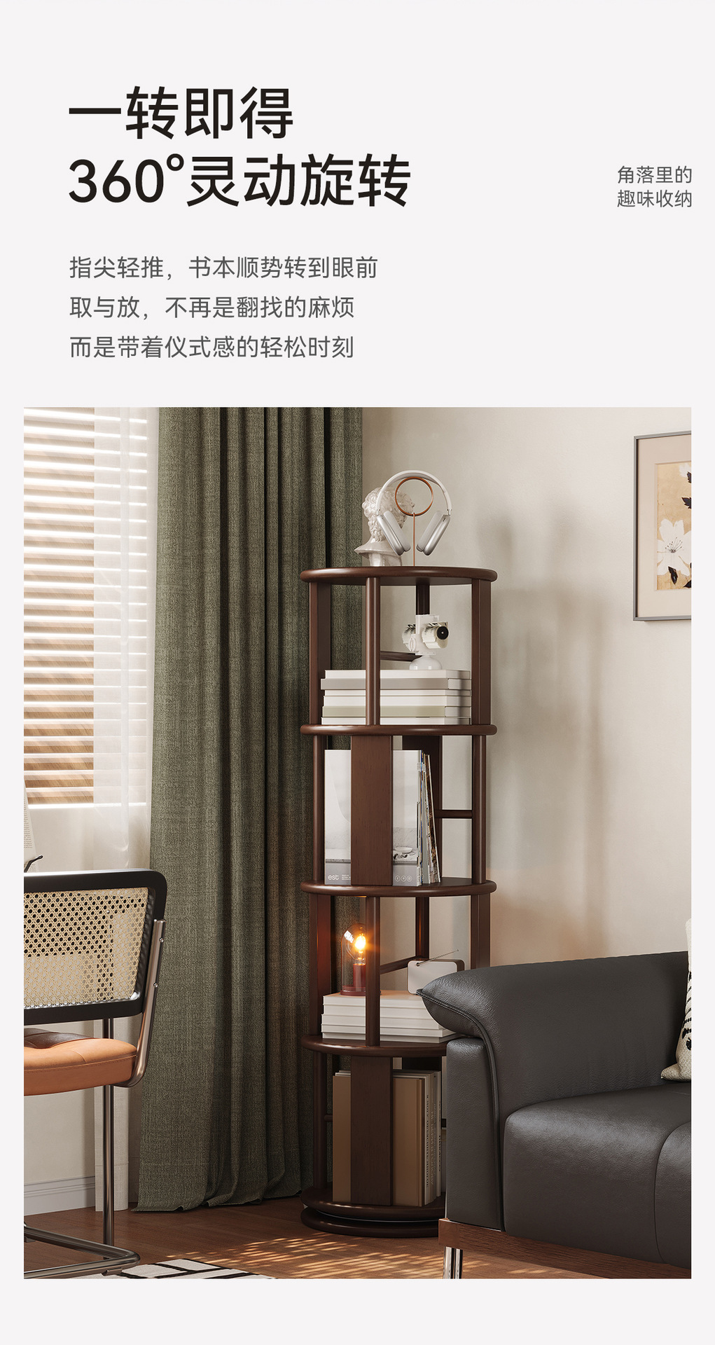 Estante giratorio de madera sólida estante de exhibición estante de biblioteca doméstico sala de estar esquina estante de libro ilustrado de estudiantes integrado contra la pared