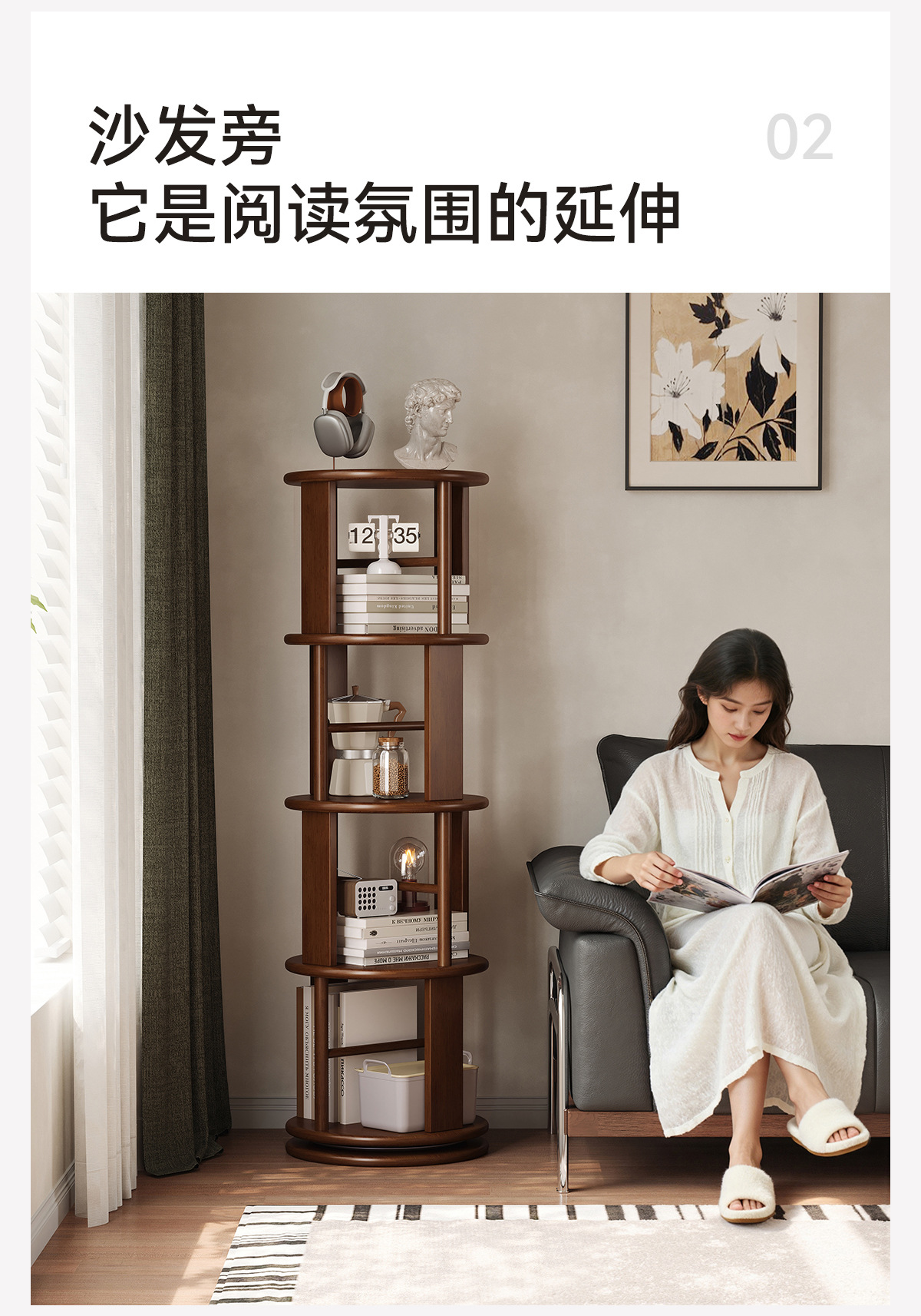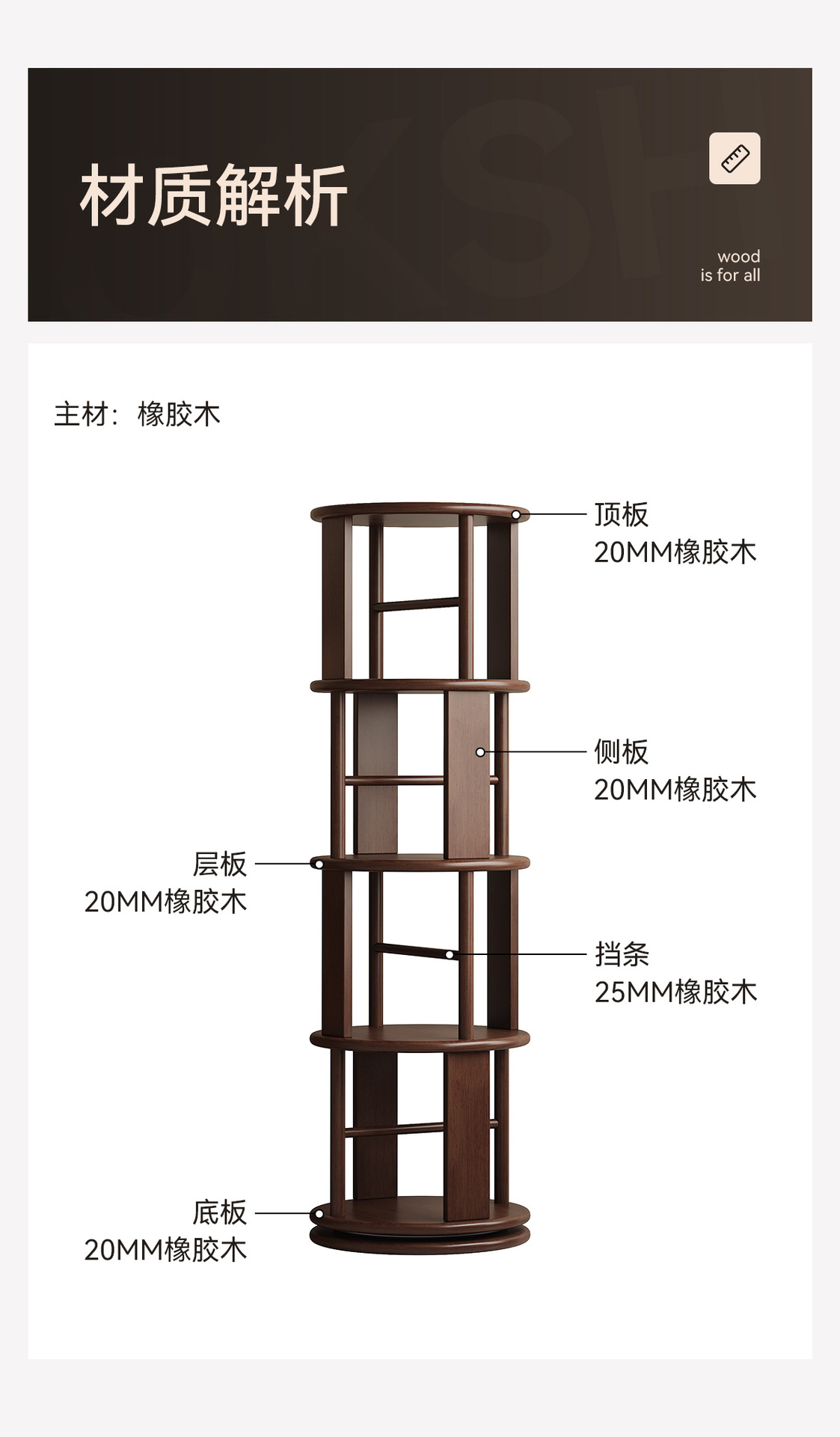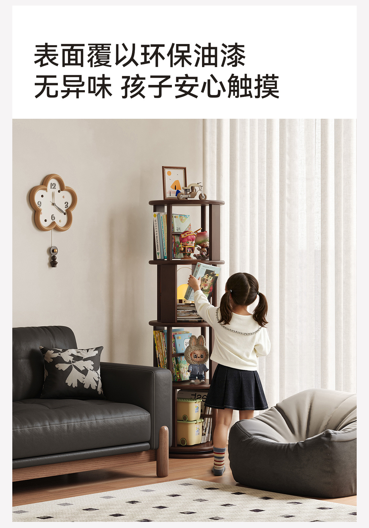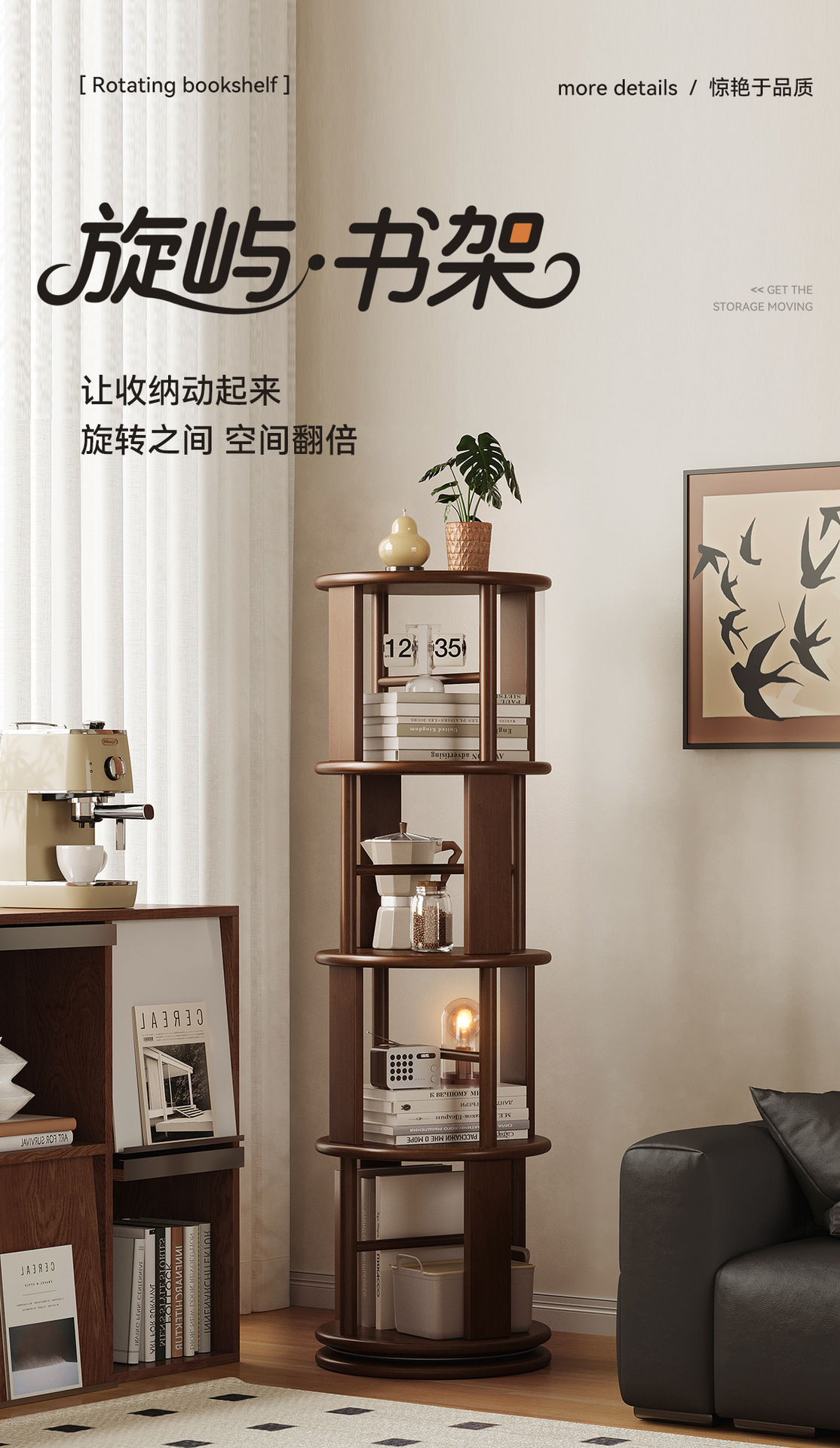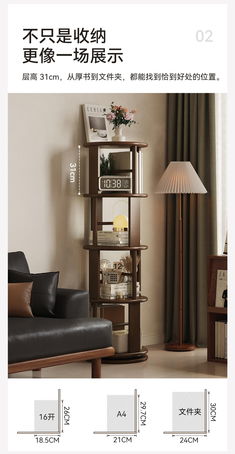 Estante giratorio de madera sólida estante de exhibición estante de biblioteca doméstico sala de estar esquina estante de libro ilustrado de estudiantes integrado contra la pared