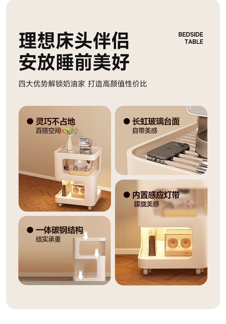 Substitución de la meseta de cabecera de hierro forjado estante de almacenamiento dormitorio 2025 creativo para el hogar móvil de tamaño grande simple