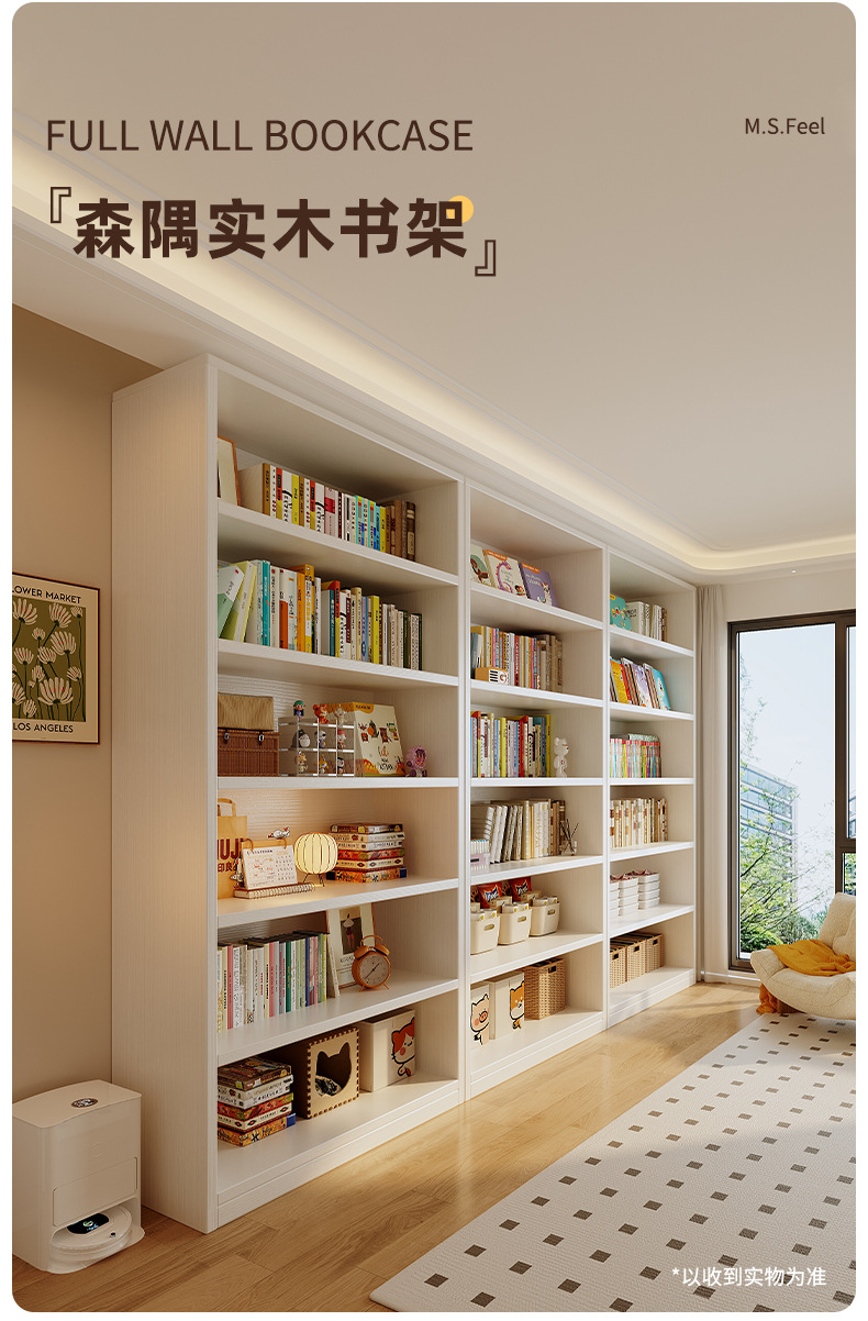 Estante de madera sólida Estante de piso Estante de almacenamiento Área de lectura infantil Estante de almacenamiento Salón contra la pared Gabinete de exhibición integrado Gabinete de almacenamiento