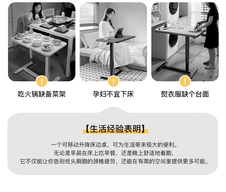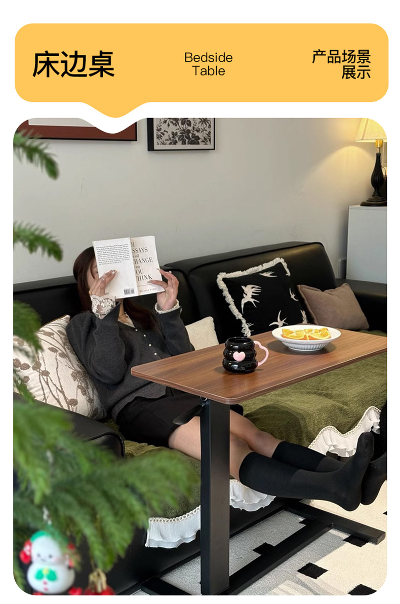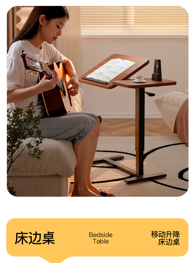 Mesa de cama de madera sólida, mesa elevable, dormitorio doméstico, mesa de oficina móvil, mesa de cabecera plegable, mesa lateral