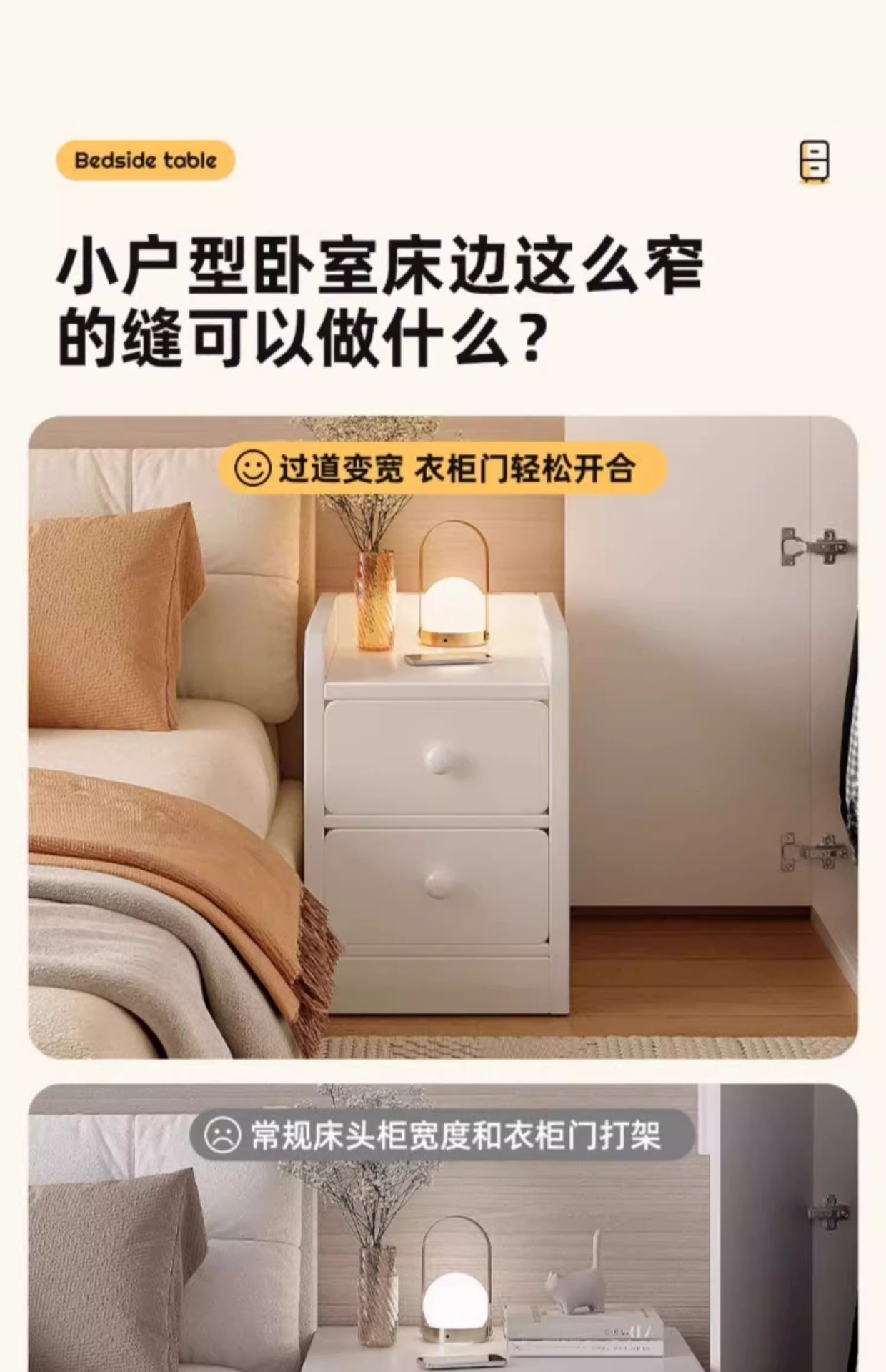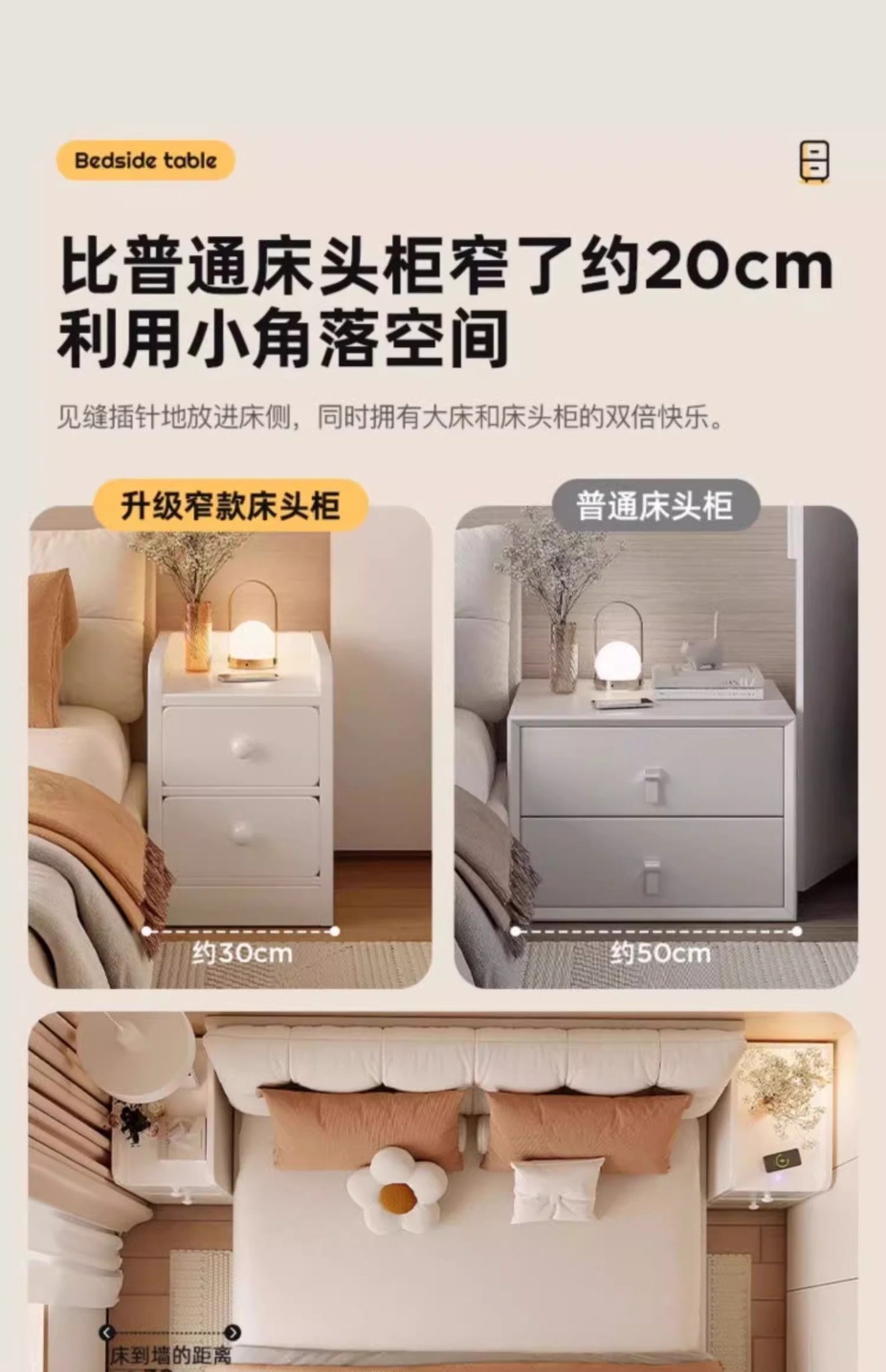 Mesa de cabezal de cama pequeña y simple moderna al lado de la cama gabinete de hendidura muy estrecha simple mini gabinete de borde estrecho de 20 cm