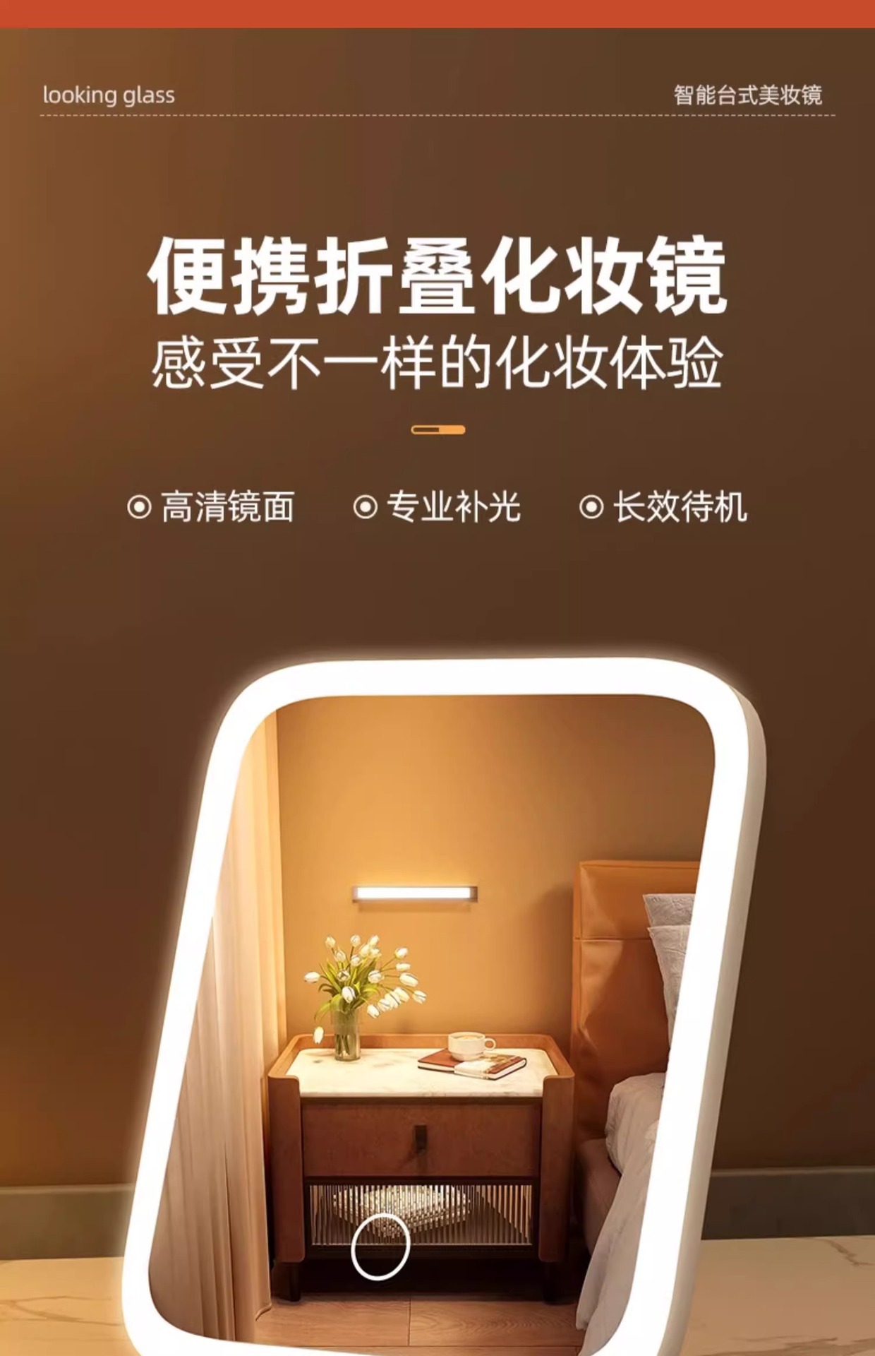 LED con lámpara梳妆台 espejo de maquillaje de brillo 2025 nuevo inwind dormitorio espejo plegable de escritorio