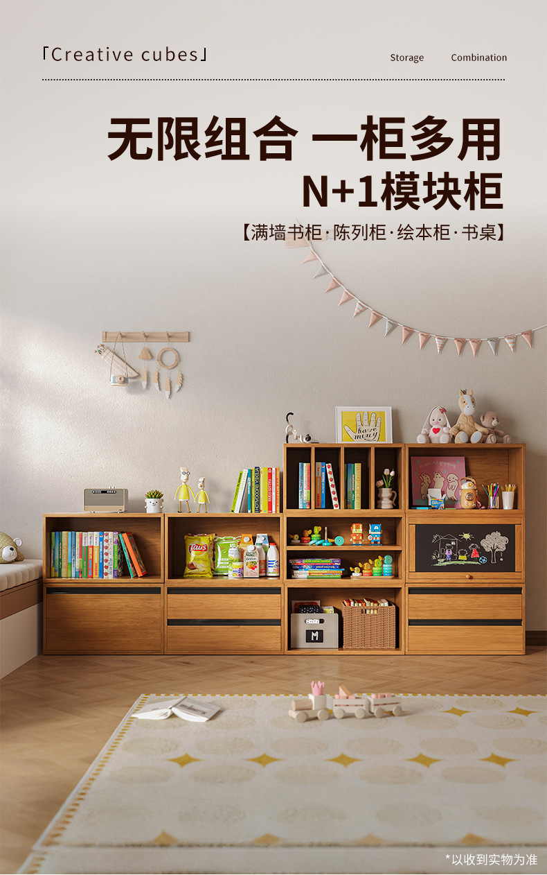 Gabinete de libros para niños de madera maciza estante de piso libre combinación modular gabinete de cuadrícula estante de libros doméstico de estudiantes gabinete bajo