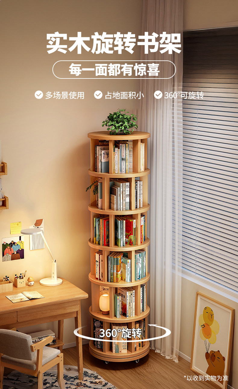 Estante giratorio de madera sólida estante de 360 grados estante de estante de piso integrado contra la pared esquina móvil pequeño gabinete estrecho para niños