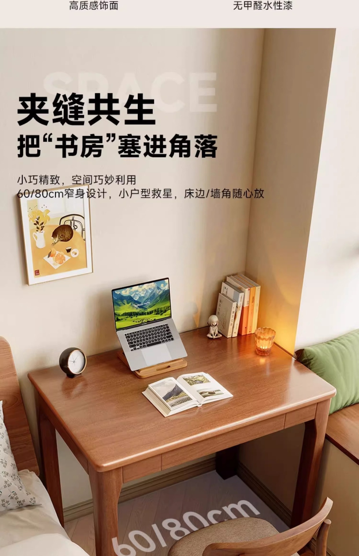 Mesa de lado de la cama, escritorio estrecho de madera sólida, estante de escritorio, escritorio de dormitorio, escritorio de estudio pequeño, escritorio estrecho contra la pared.
