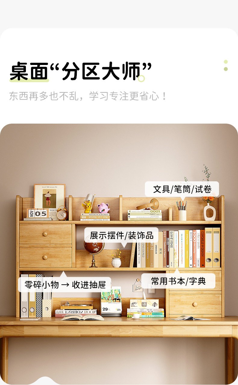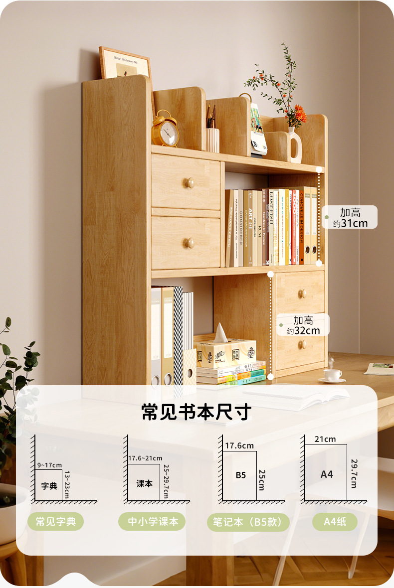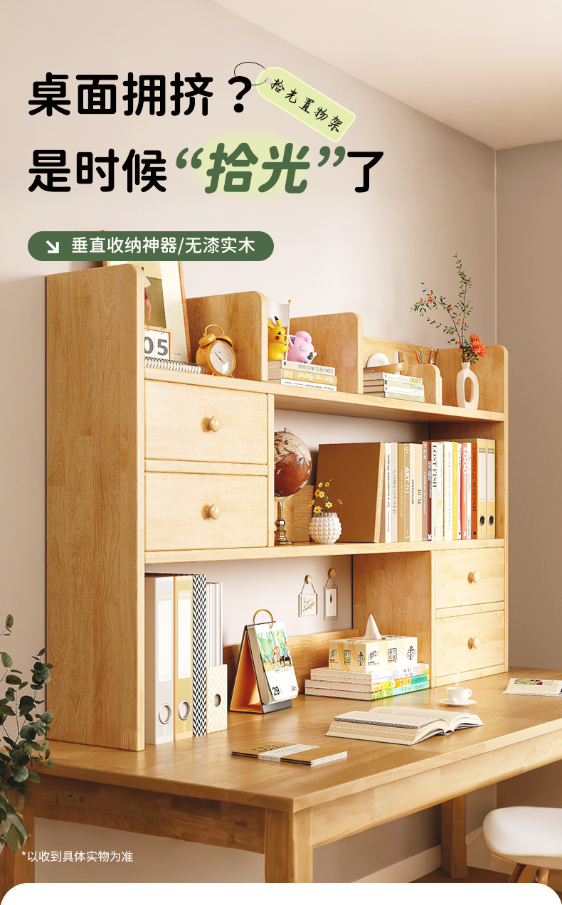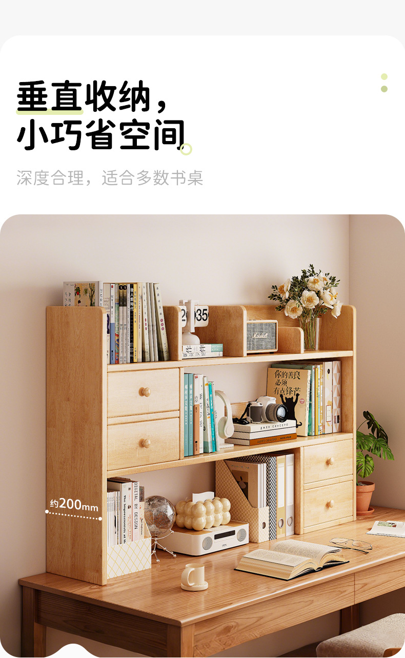 Estantería de madera maciza Estante de escritorio Estante de almacenamiento simple en el escritorio de los estudiantes Estante de oficina pequeña de varias capas vertical