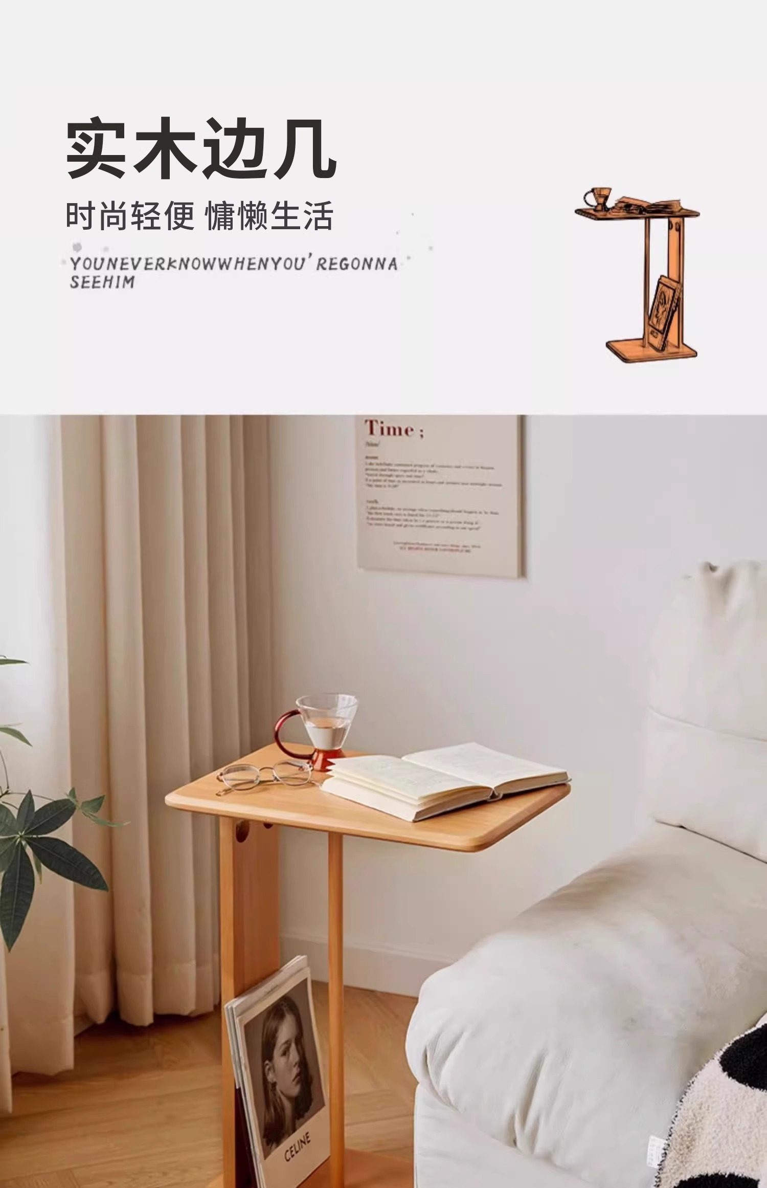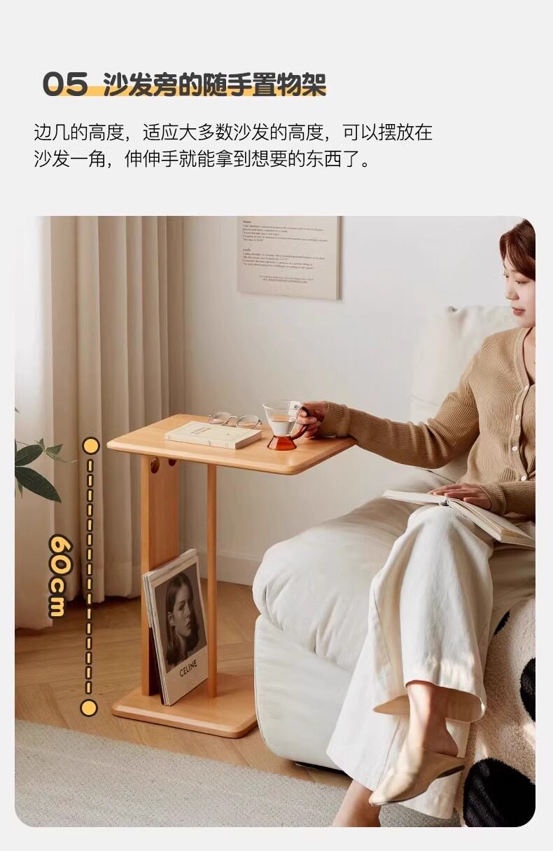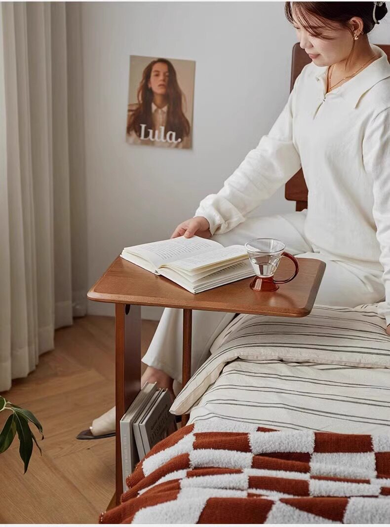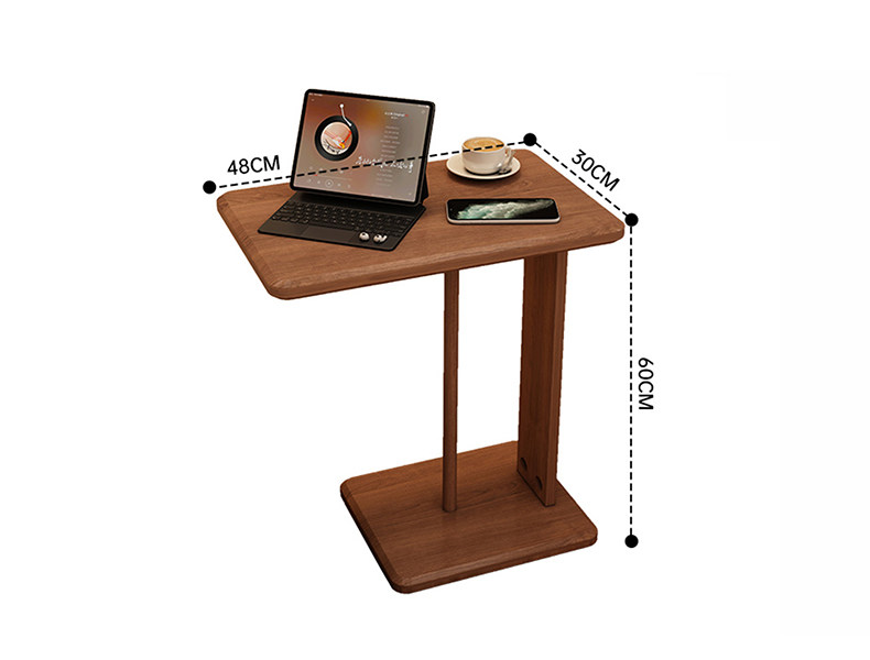 Mesa de té de madera sólida móvil en forma de C, sofá de lado, mini mesa lateral, sala de estar, mesa de té de esquina, pequeño hogar