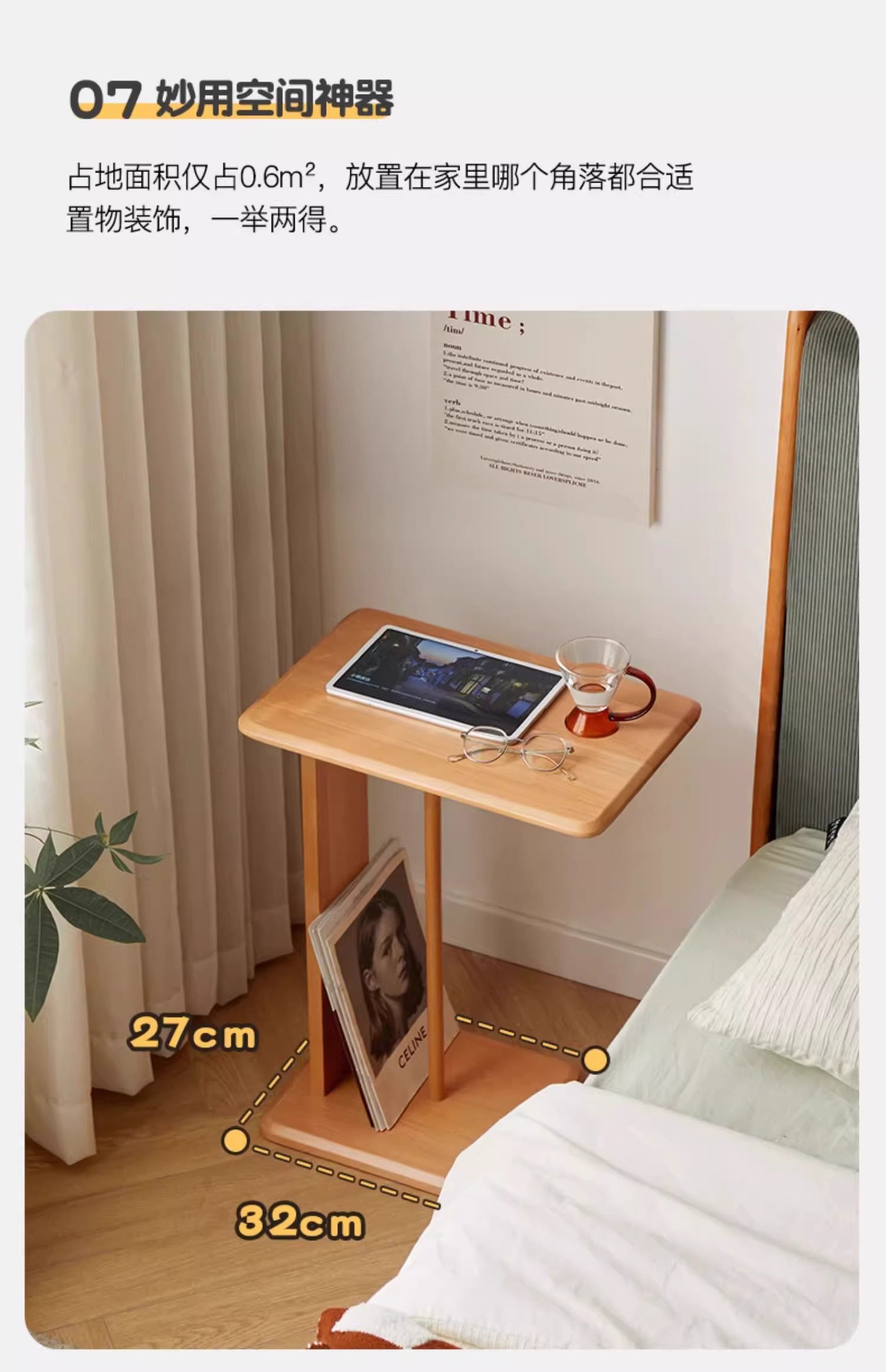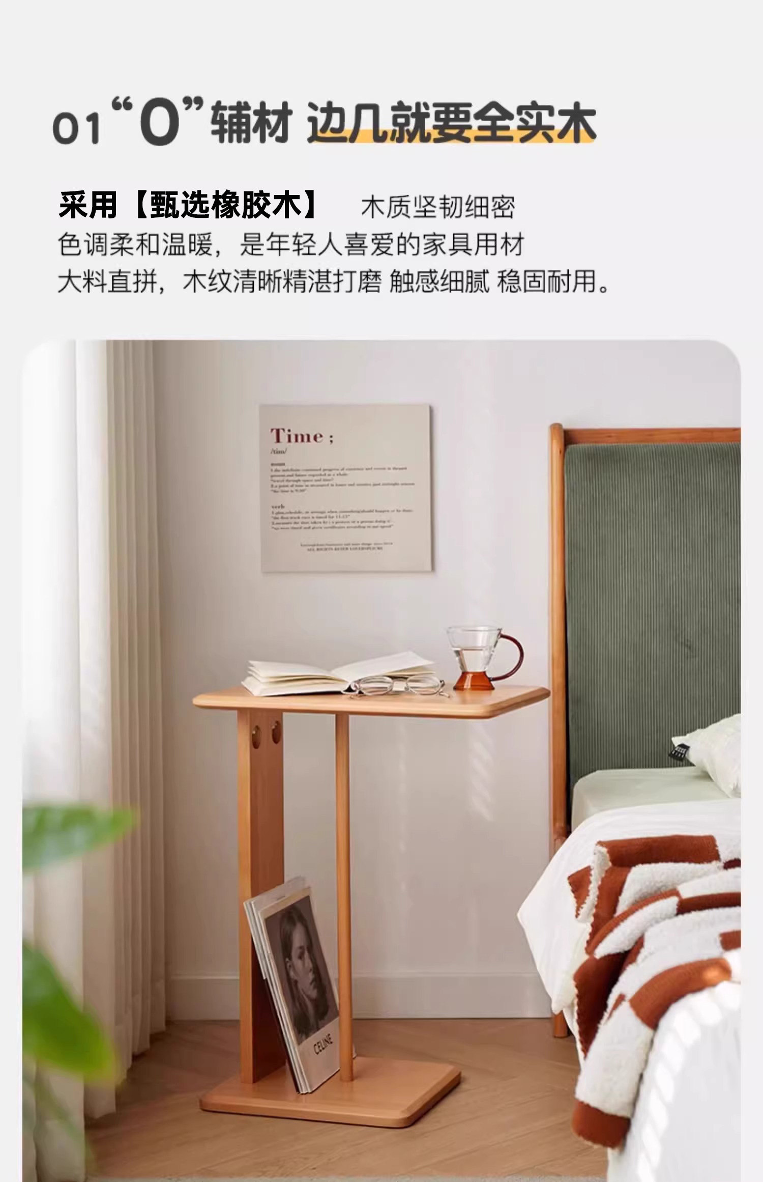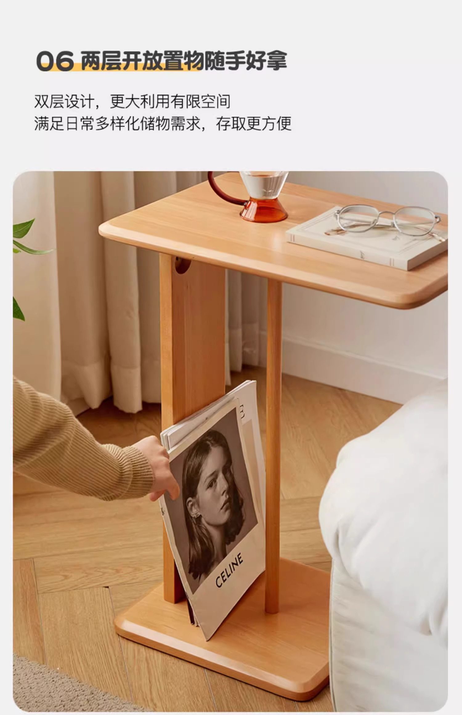 Mesa de té de madera sólida móvil en forma de C, sofá de lado, mini mesa lateral, sala de estar, mesa de té de esquina, pequeño hogar