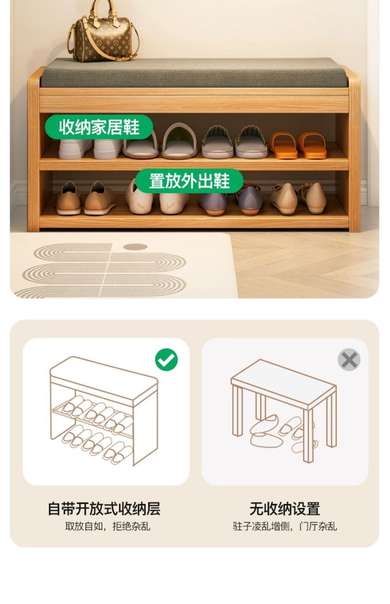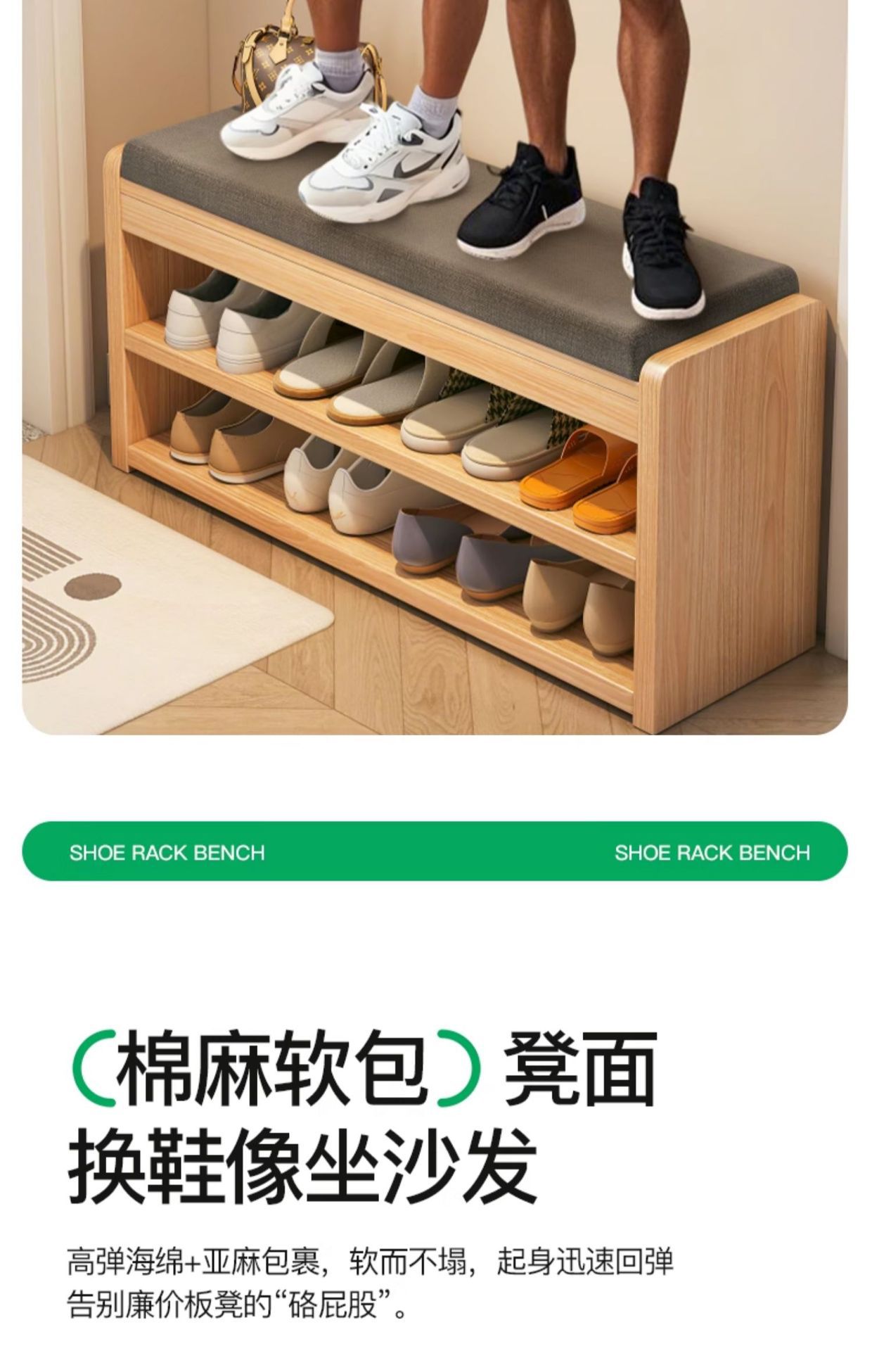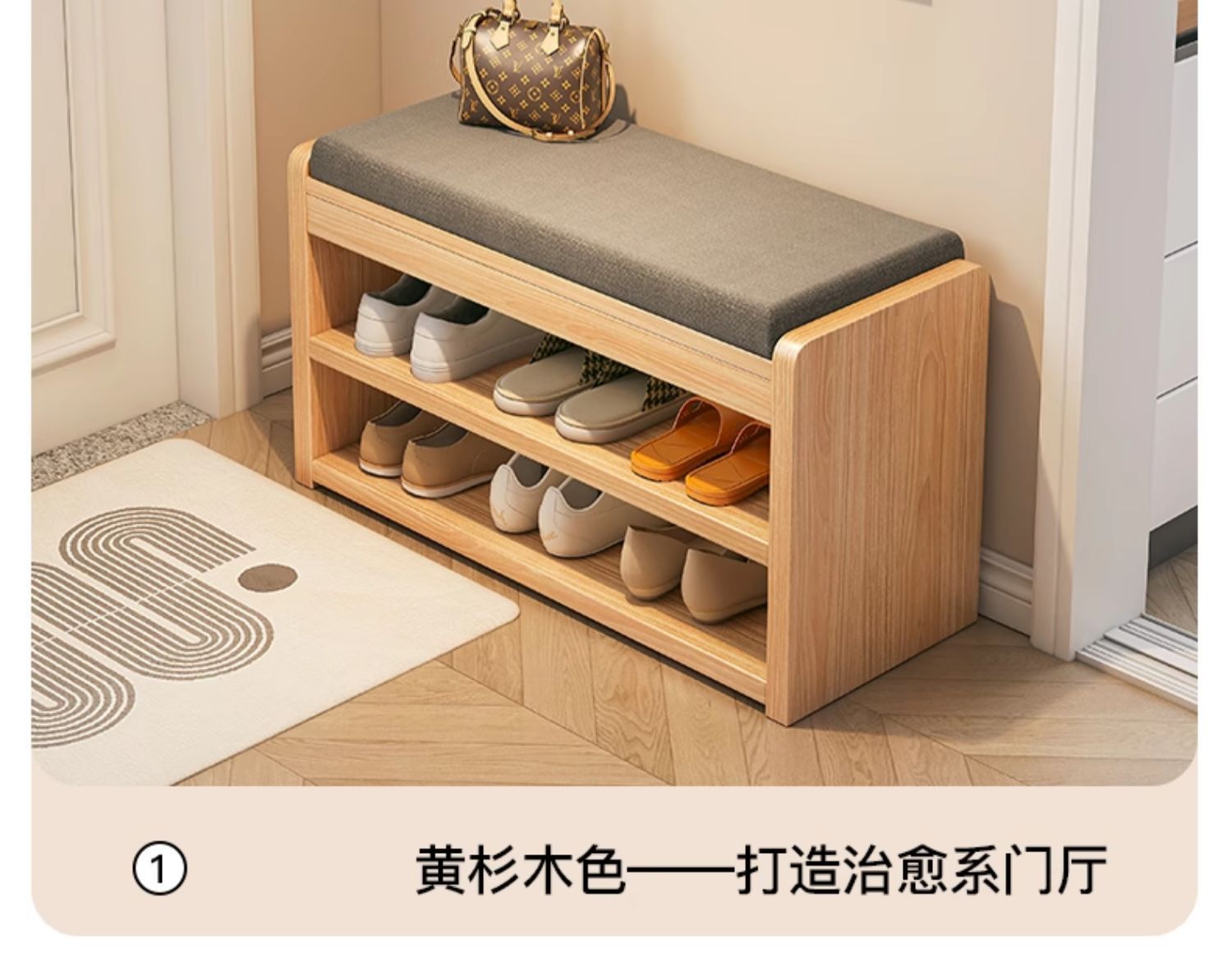 Taburete de cambio de zapatos de madera sólida multicapa de puerta doméstica se puede sentar en 2025 nuevo tipo de puerta de entrada pequeño gabinete de zapatos estrecho