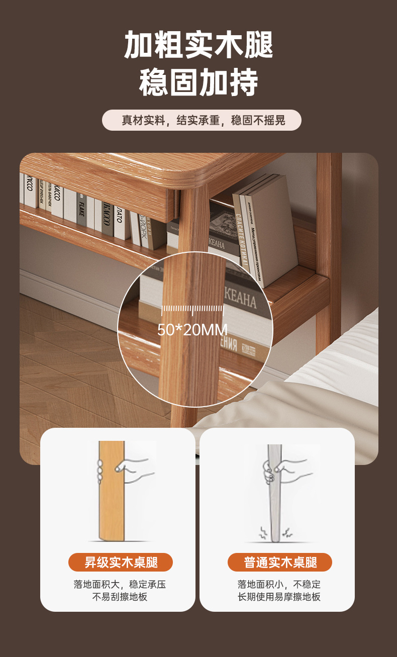 Casa de alquiler de madera sólida ensanchada escritorio de computadora dormitorio doméstico mesilla de cama pequeña casa con estante de escritorio estrecho