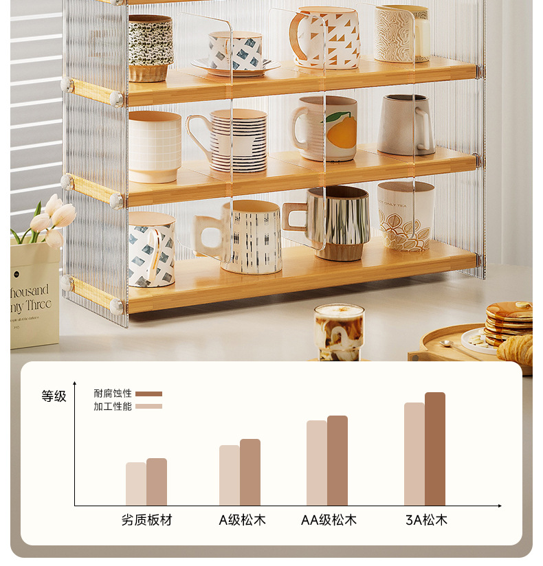 Portalápices de madera maciza Portalápices de almacenamiento de tazas Gabinete de comedor Gabinete de almacenamiento Taza de té Taza de café Taza de agua Estante de exhibición de encimera