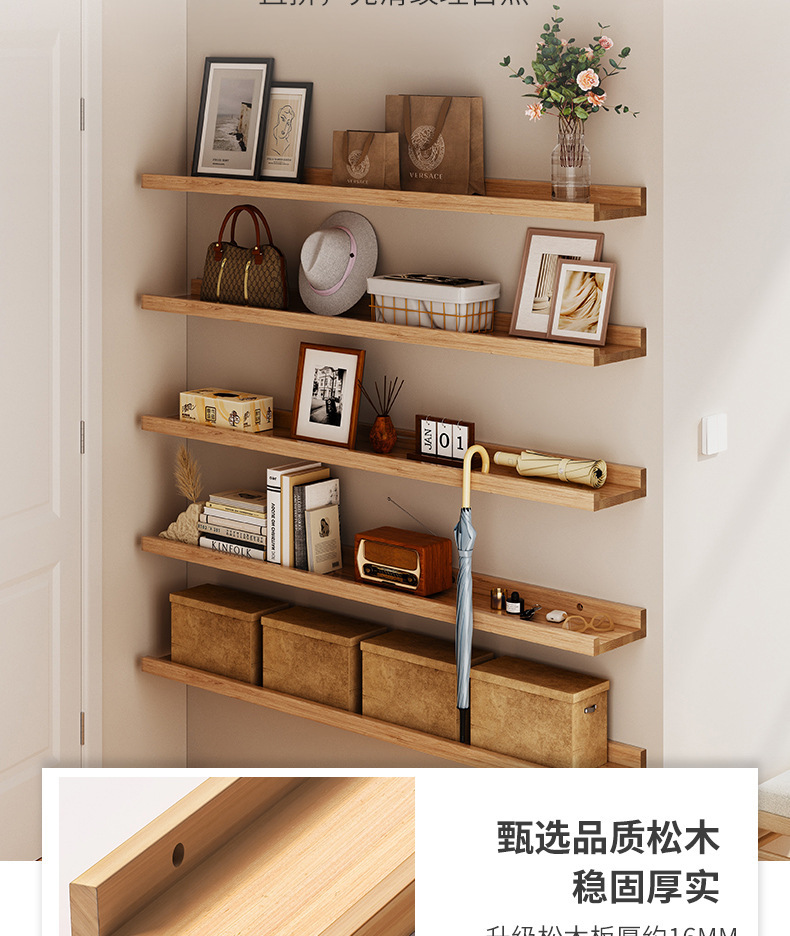 Estante de pared Tablero de una palabra de madera maciza Tablero de pared Tablero de almacenamiento sin perforaciones Estantería de piso verde de entrada