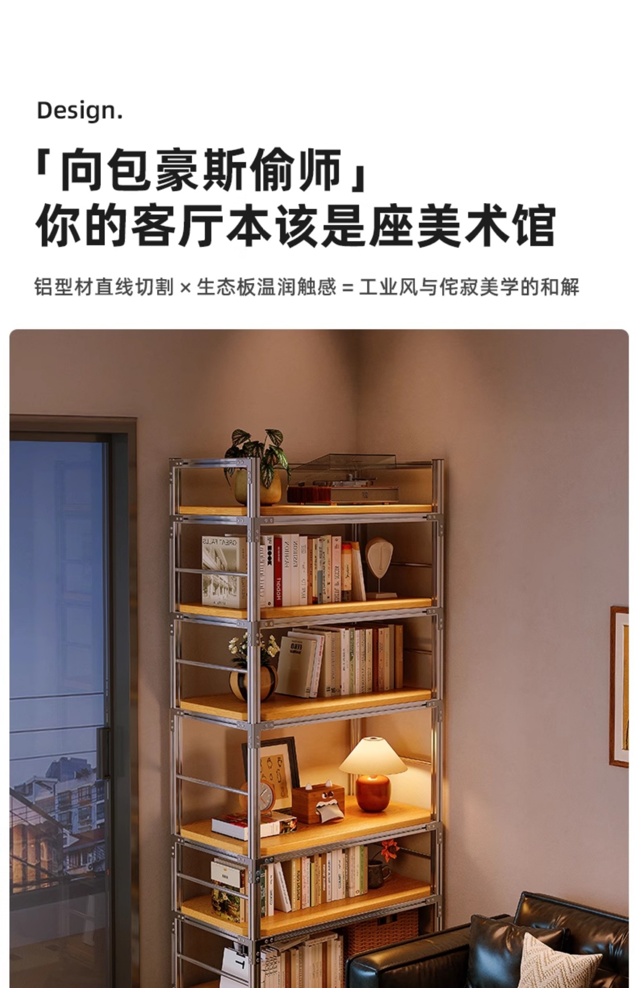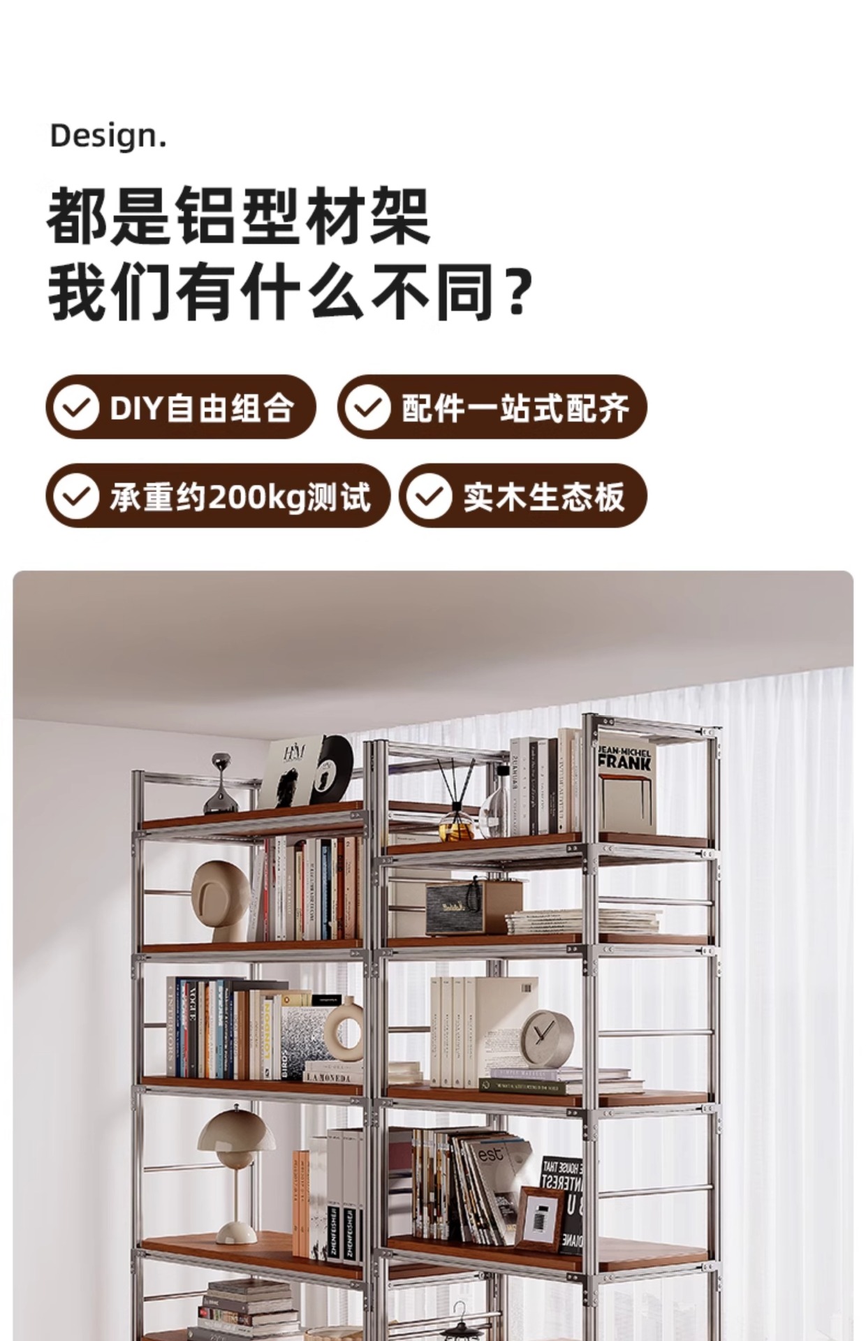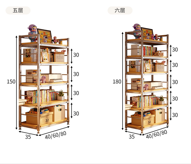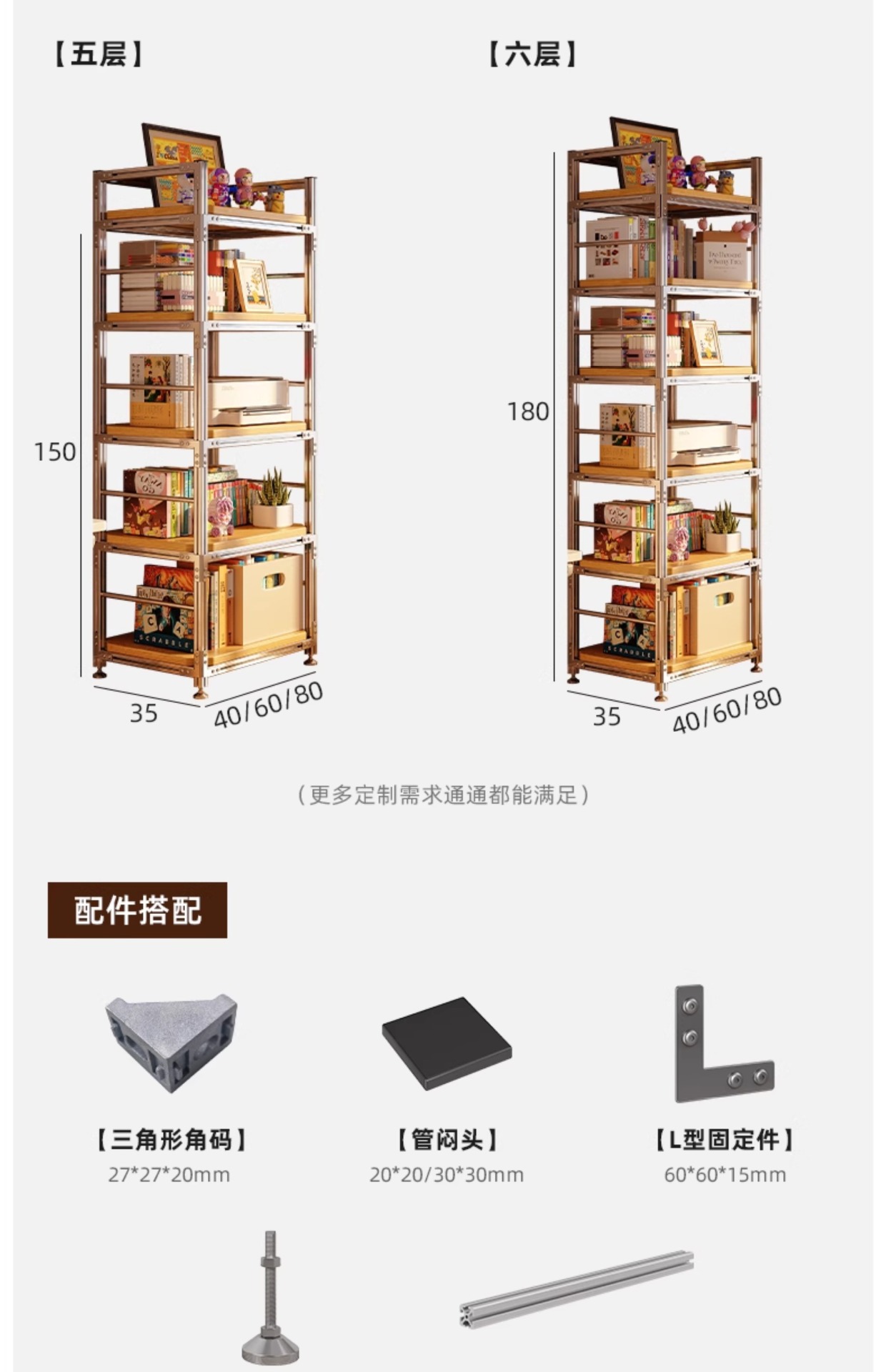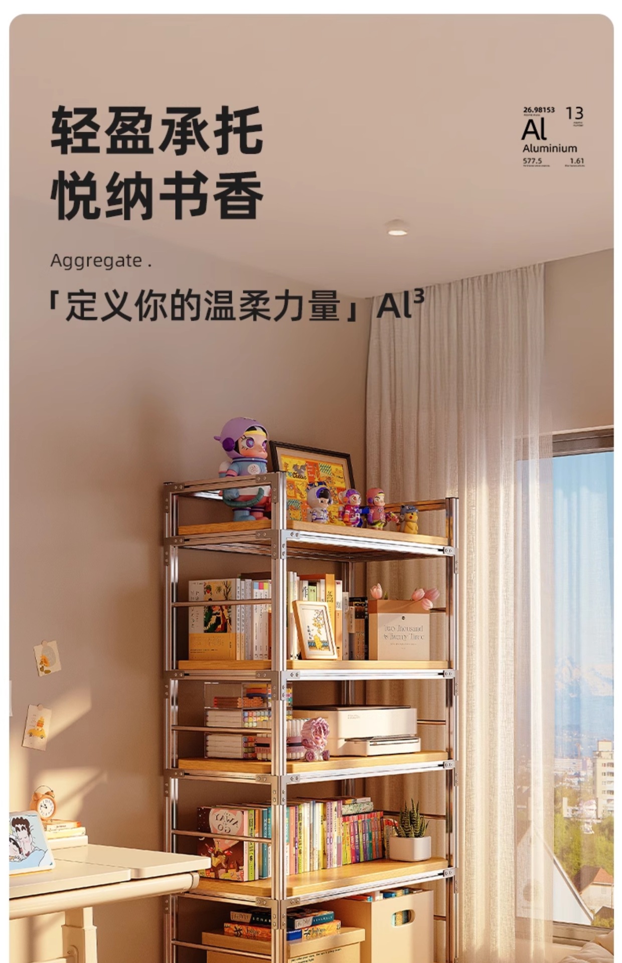 Estantería de perfil de aluminio Estante de piso Estante de almacenamiento multicapa Estante de almacenamiento Estante para niños Una estantería simple para estudiantes contra la pared