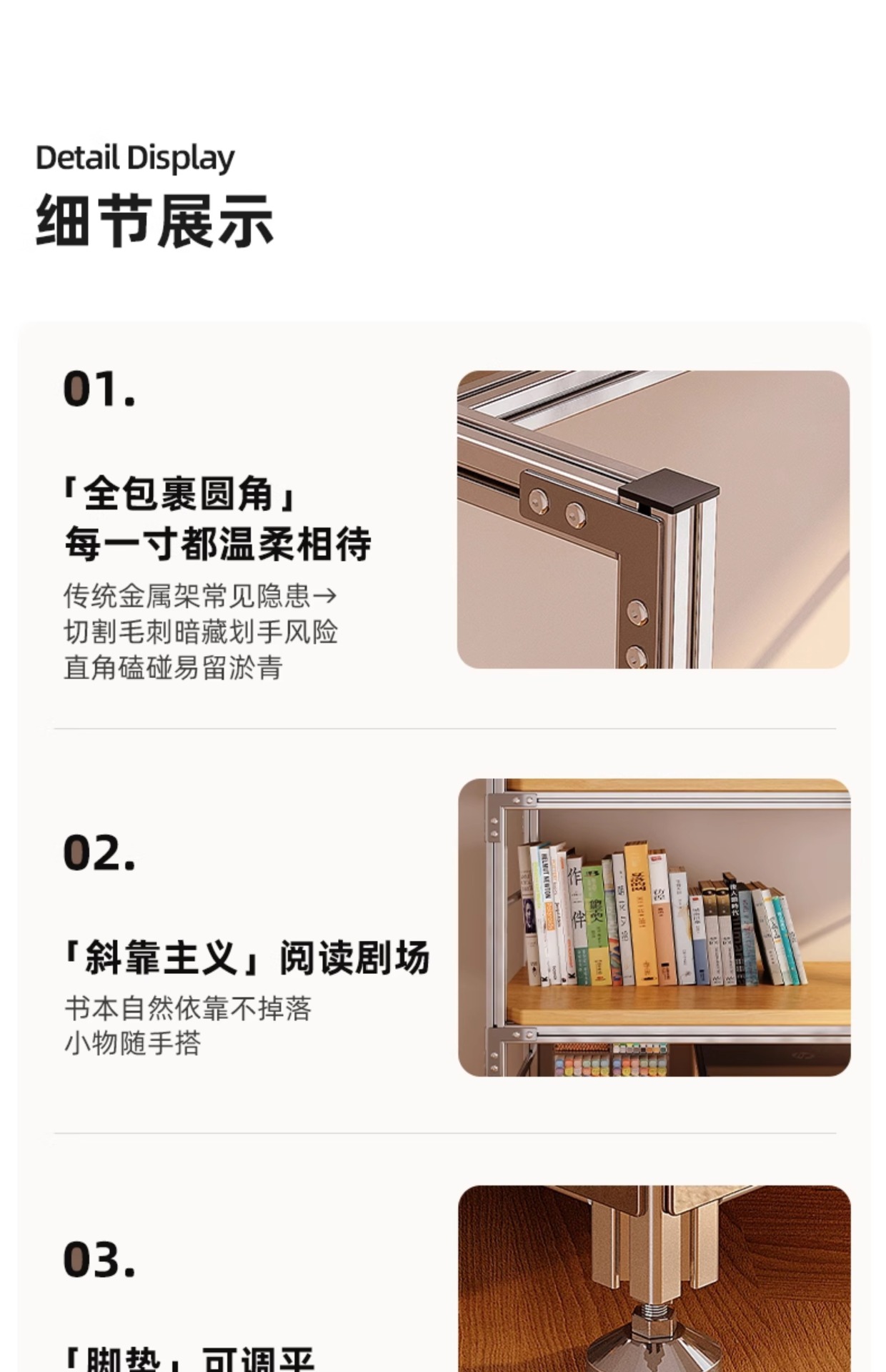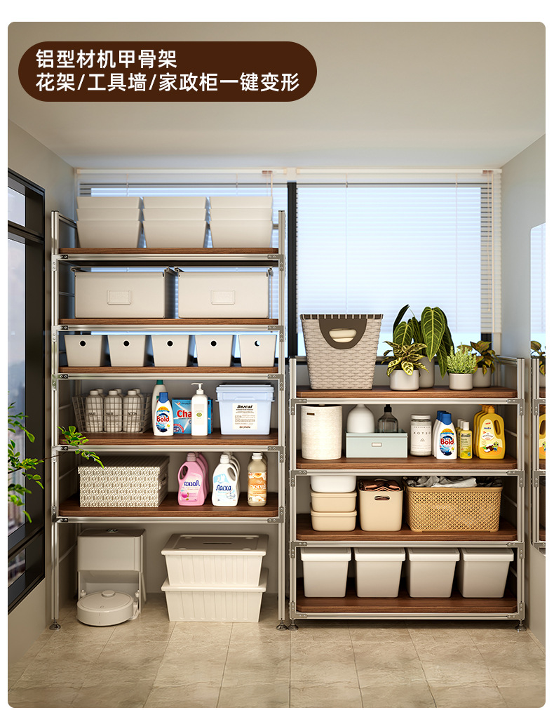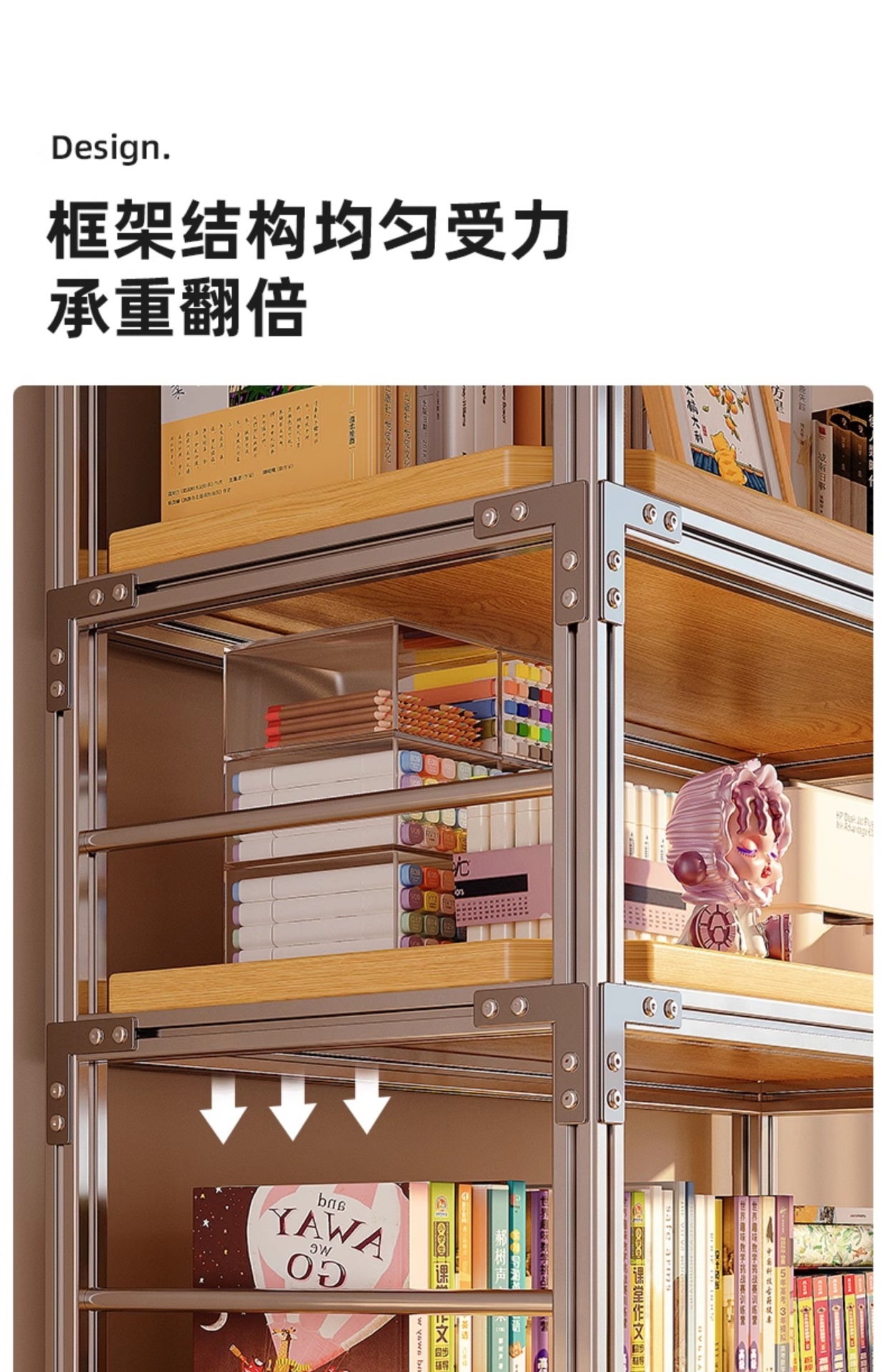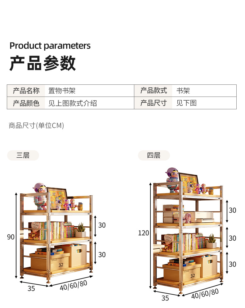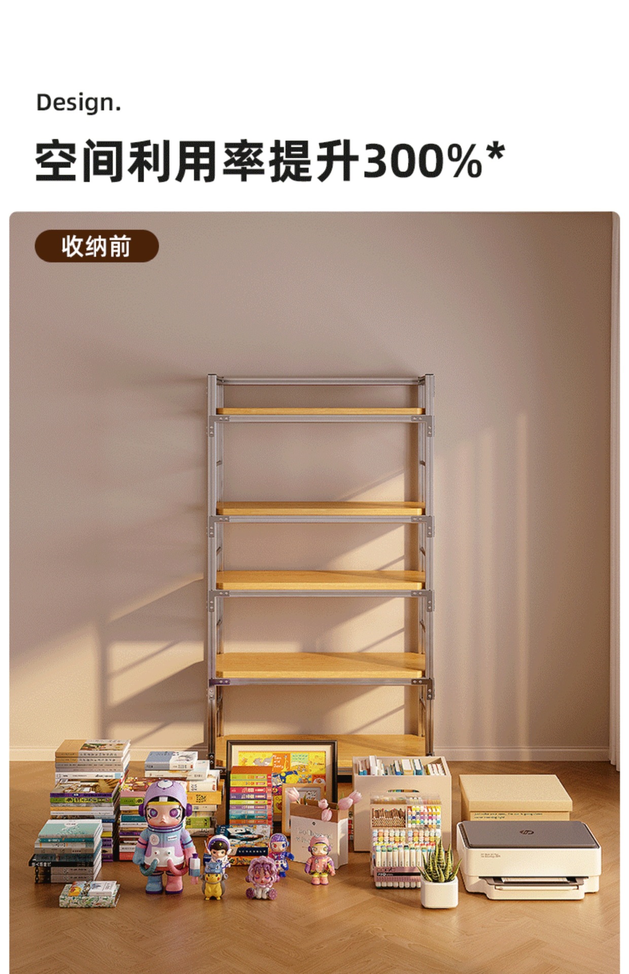 Estantería de perfil de aluminio Estante de piso Estante de almacenamiento multicapa Estante de almacenamiento Estante para niños Una estantería simple para estudiantes contra la pared