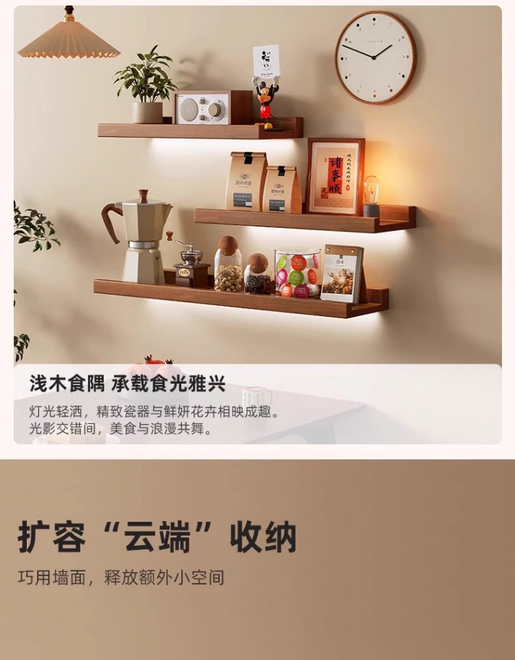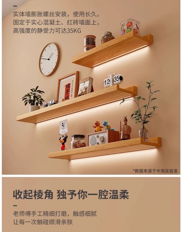 Estante de pared de madera maciza completo Estante de una palabra Estante de almacenamiento montado en la pared Estante de vino de pared Estante de exhibición de almacenamiento doméstico