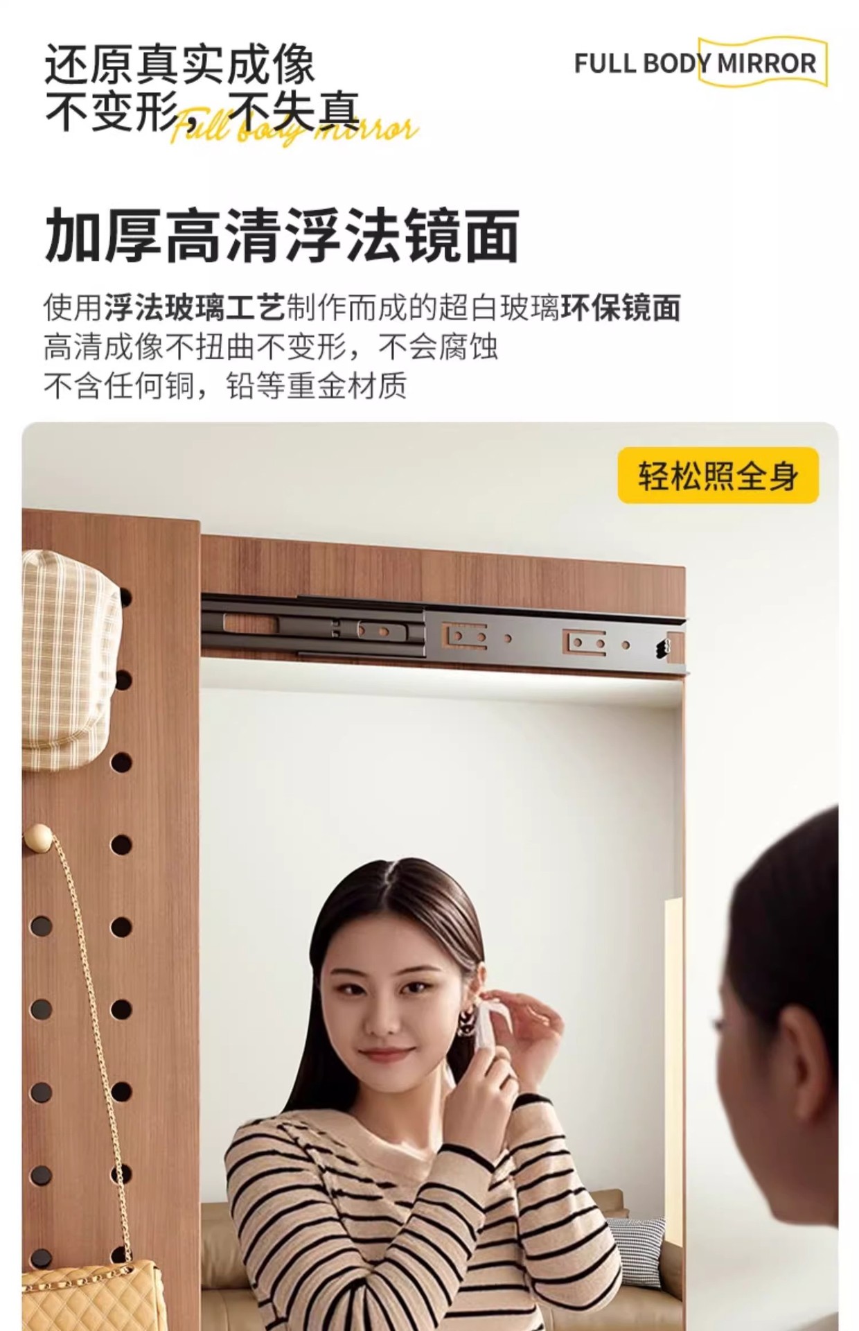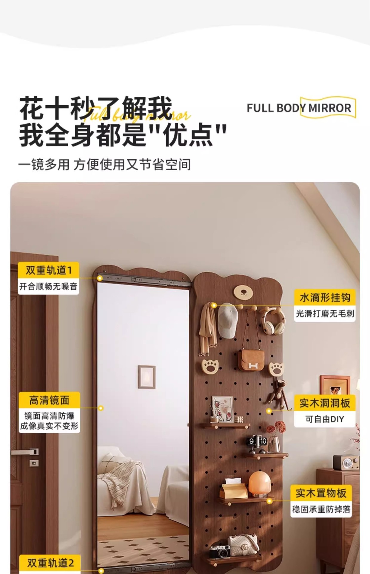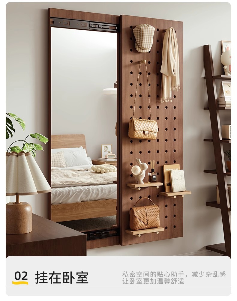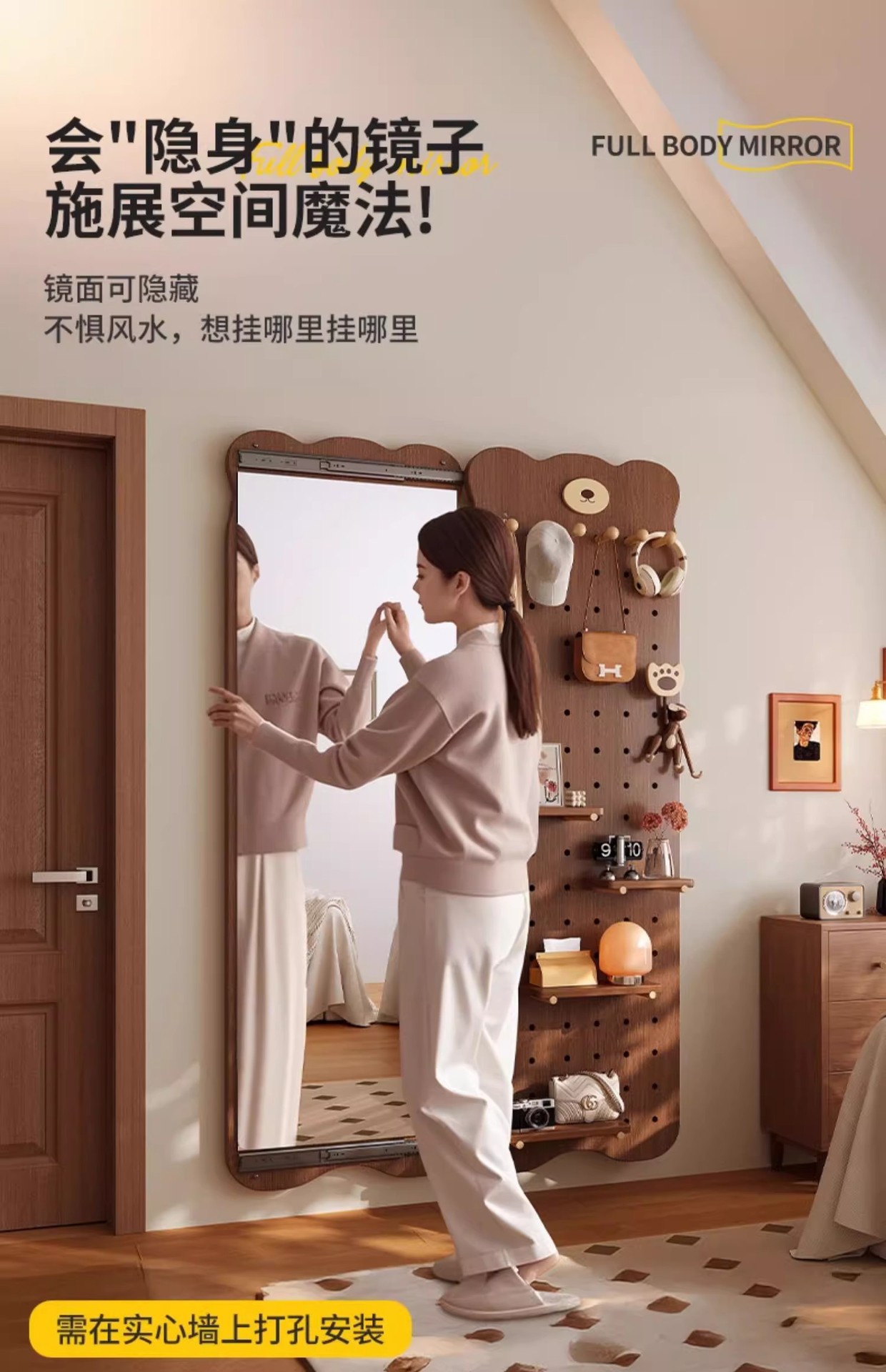espejo de vestir de madera sólida espejo de vestir de cuerpo entero escondido empujando y arrastrando hogar cerrable pared colgante espejo de vestir de vestir