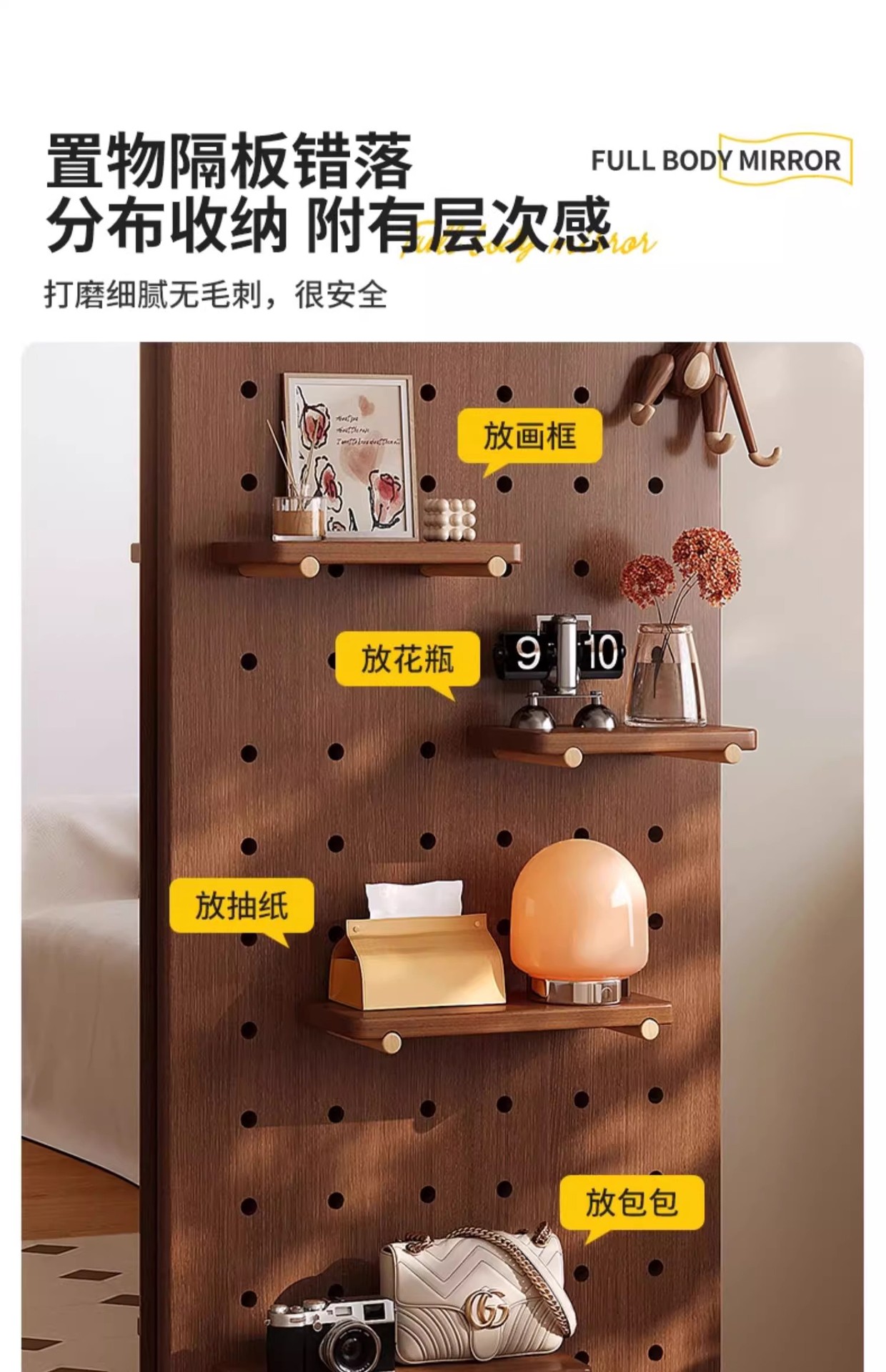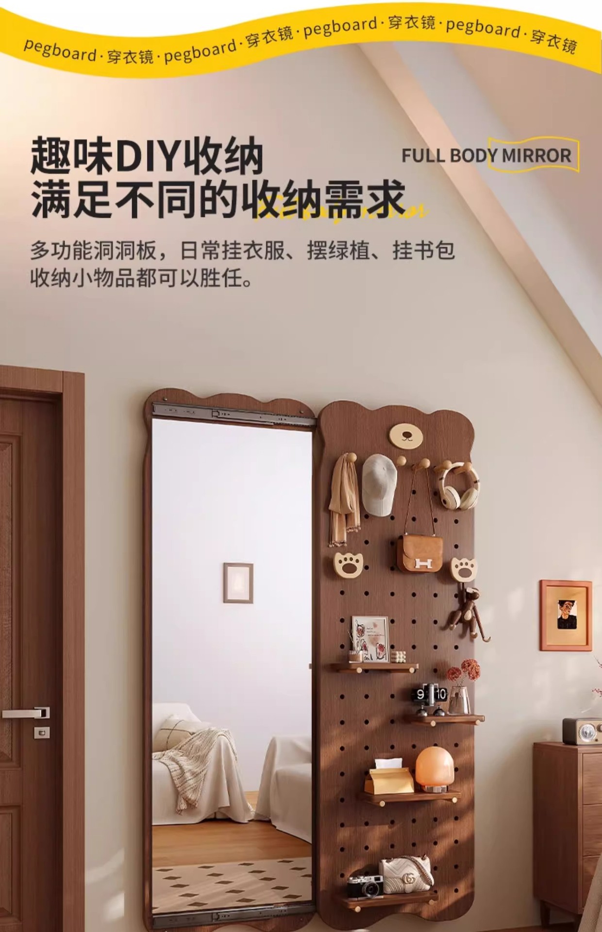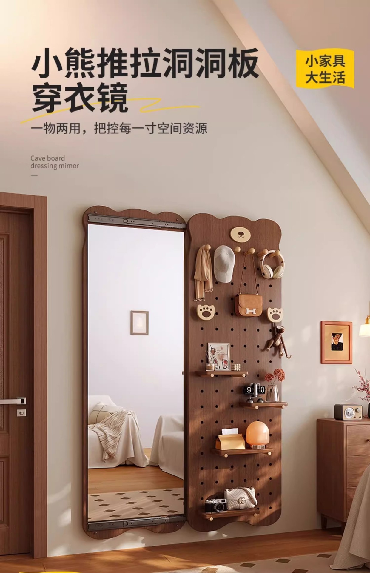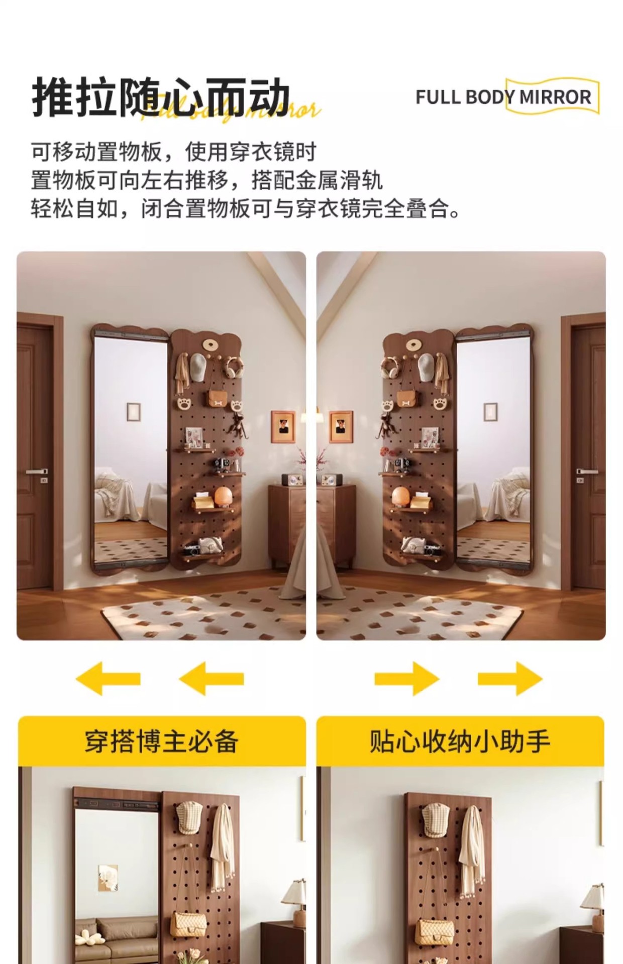 espejo de vestir de madera sólida espejo de vestir de cuerpo entero escondido empujando y arrastrando hogar cerrable pared colgante espejo de vestir de vestir