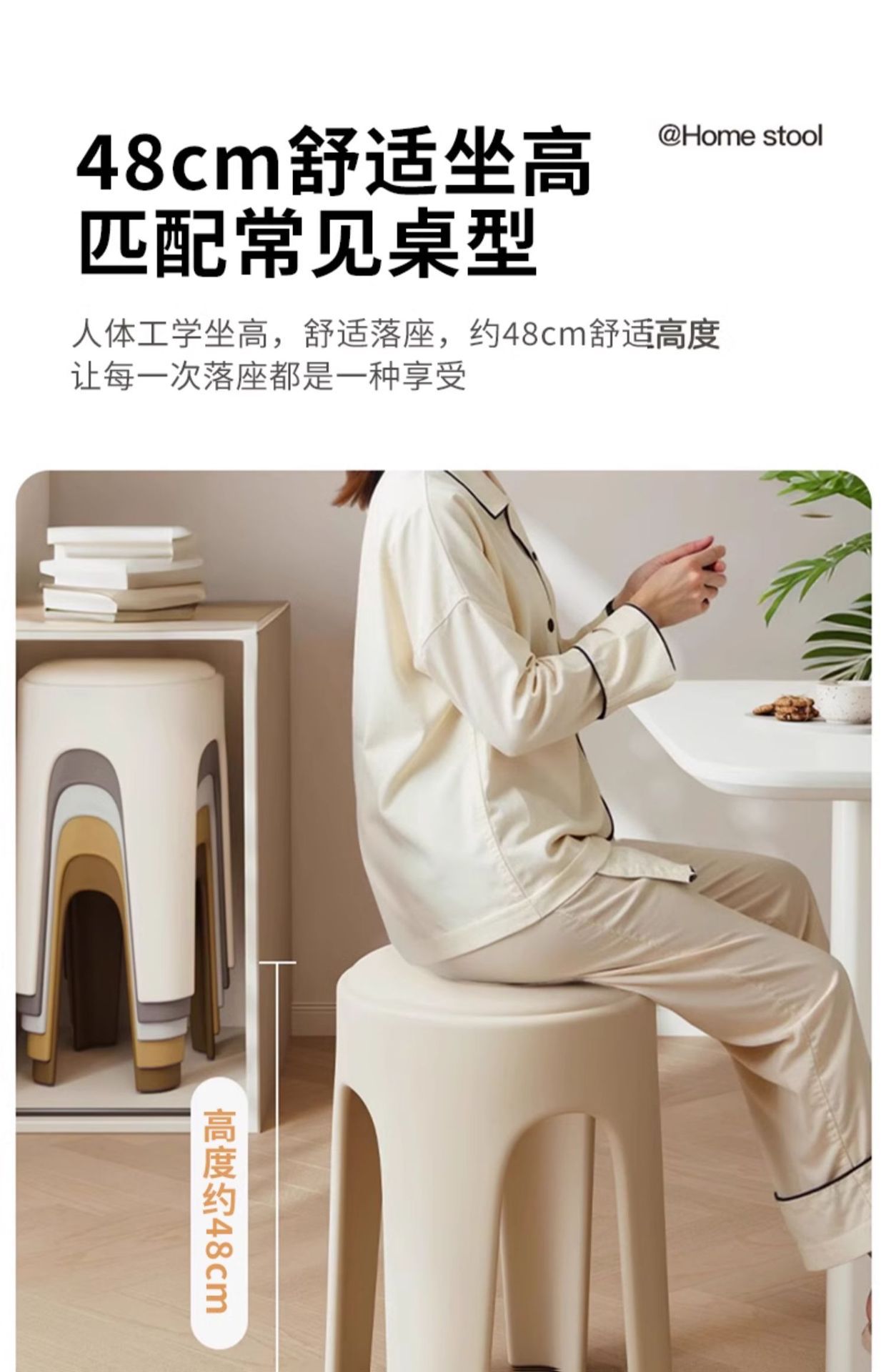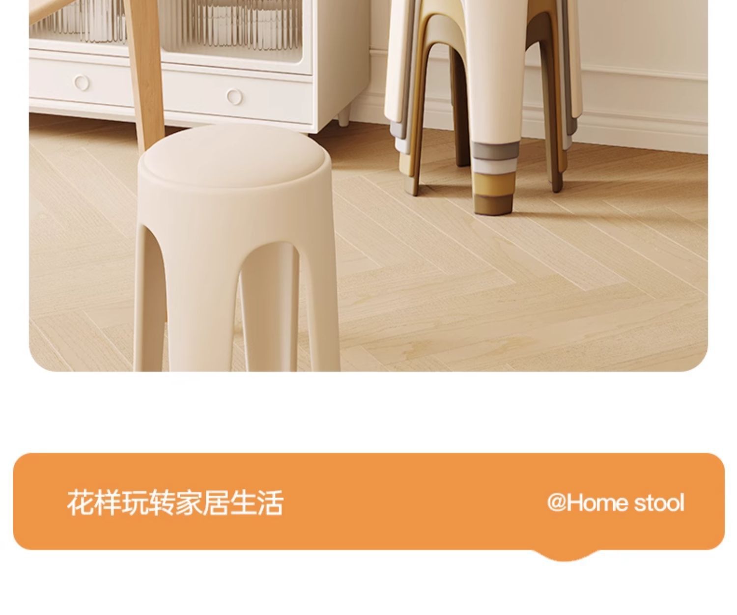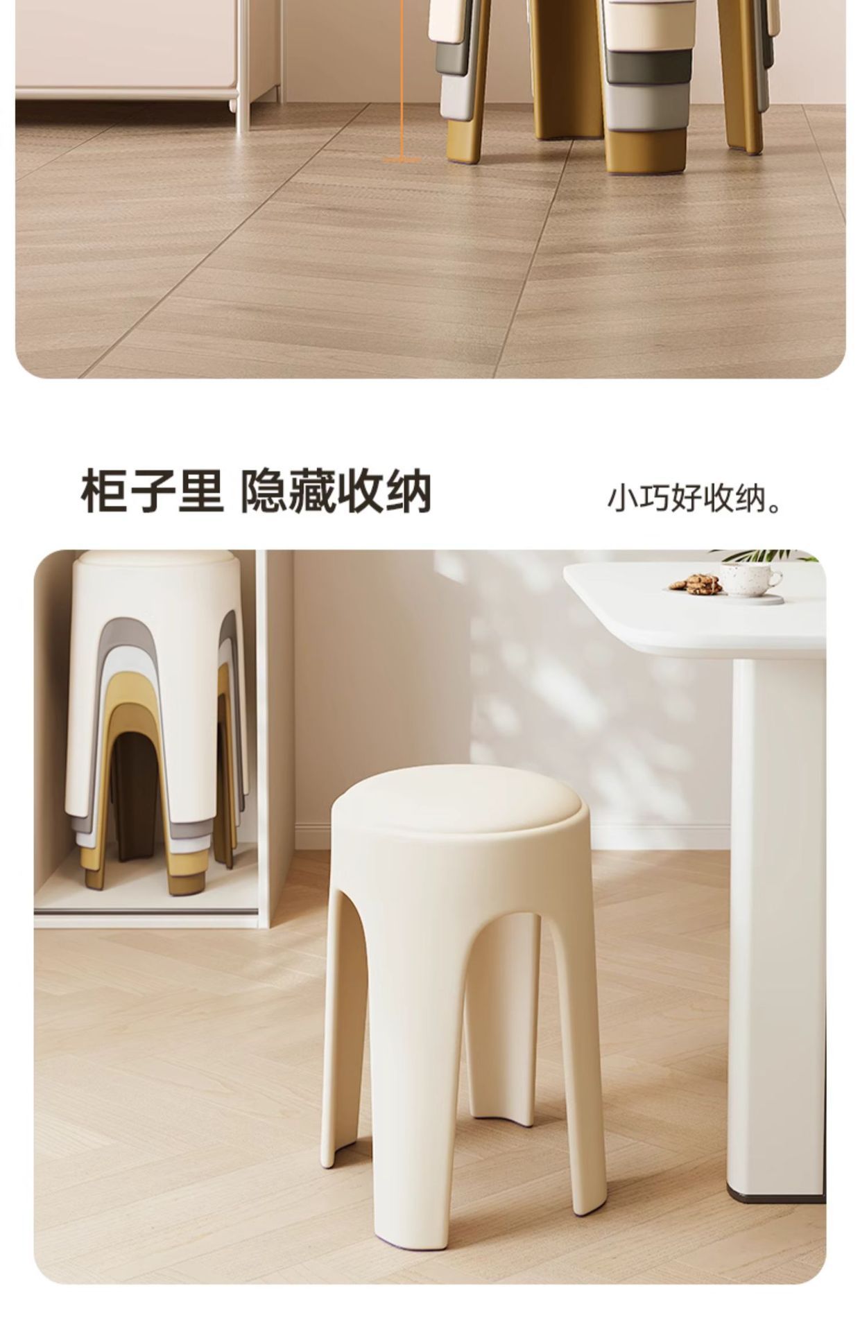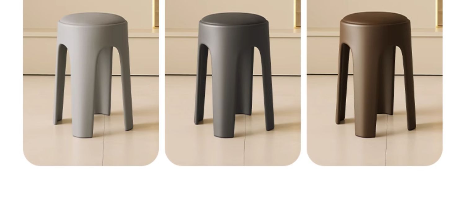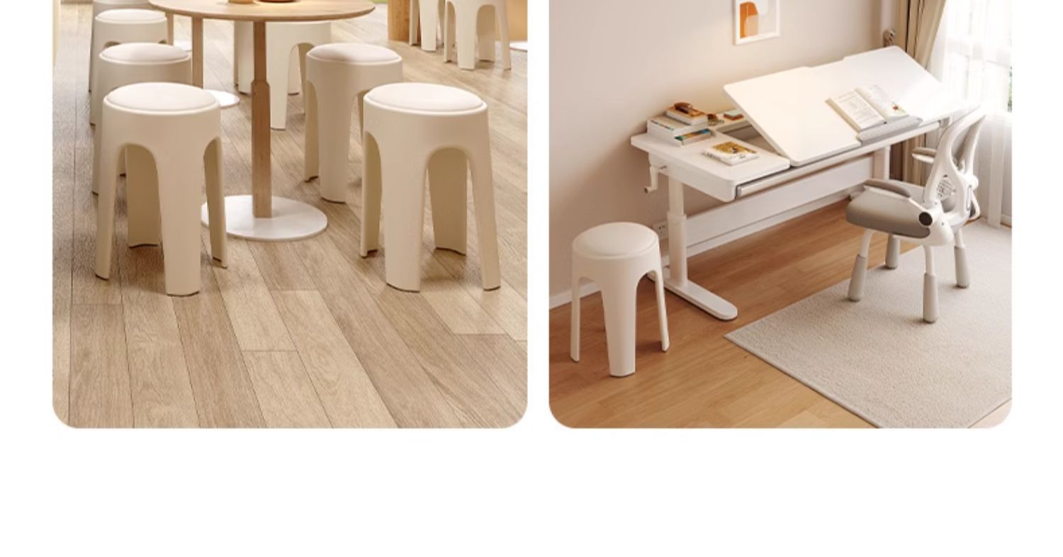 Los taburetes de plástico se pueden apilar para el hogar, taburetes redondos de crema de lujo ligero, mesa y silla de comedor de sala de estar, sillas de repuesto resistentes y duraderas