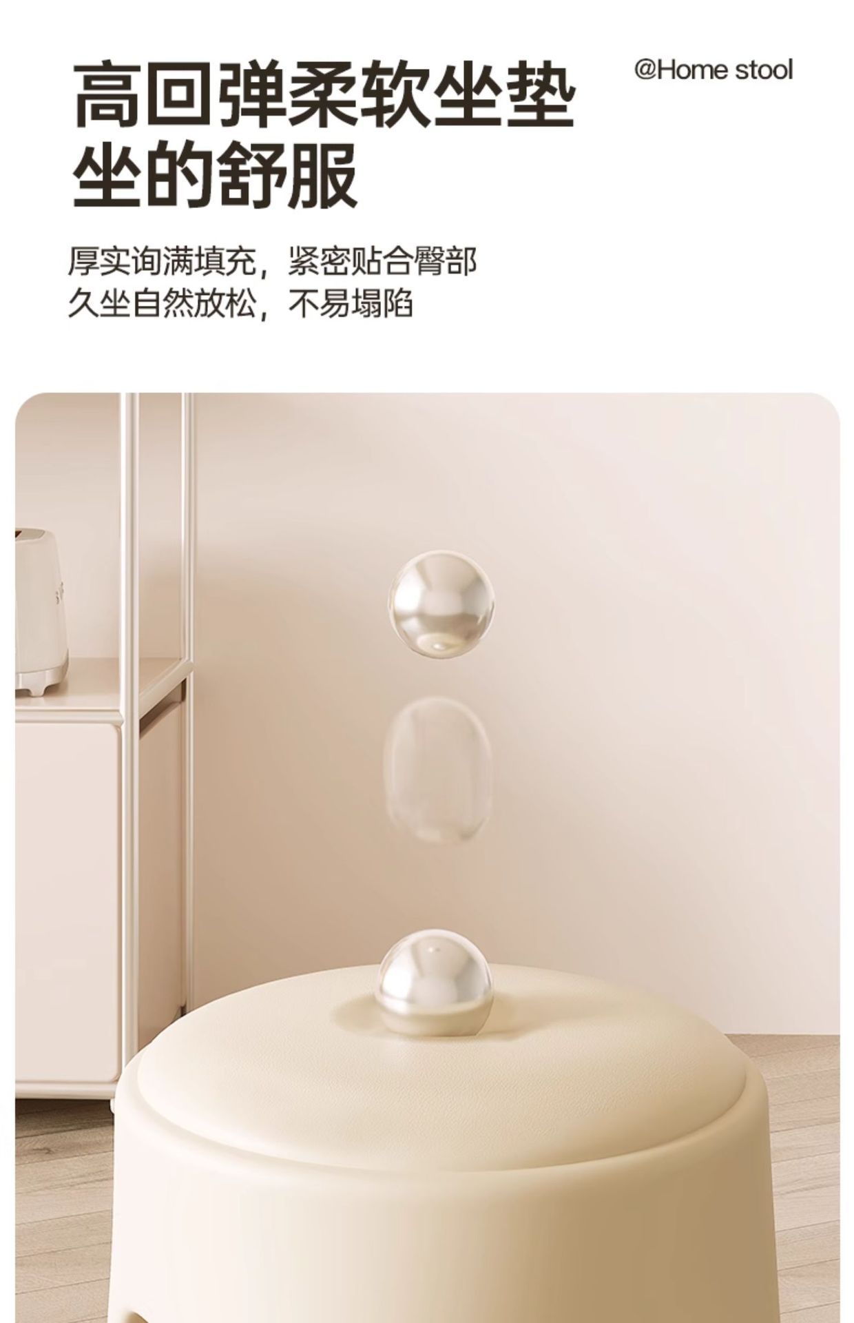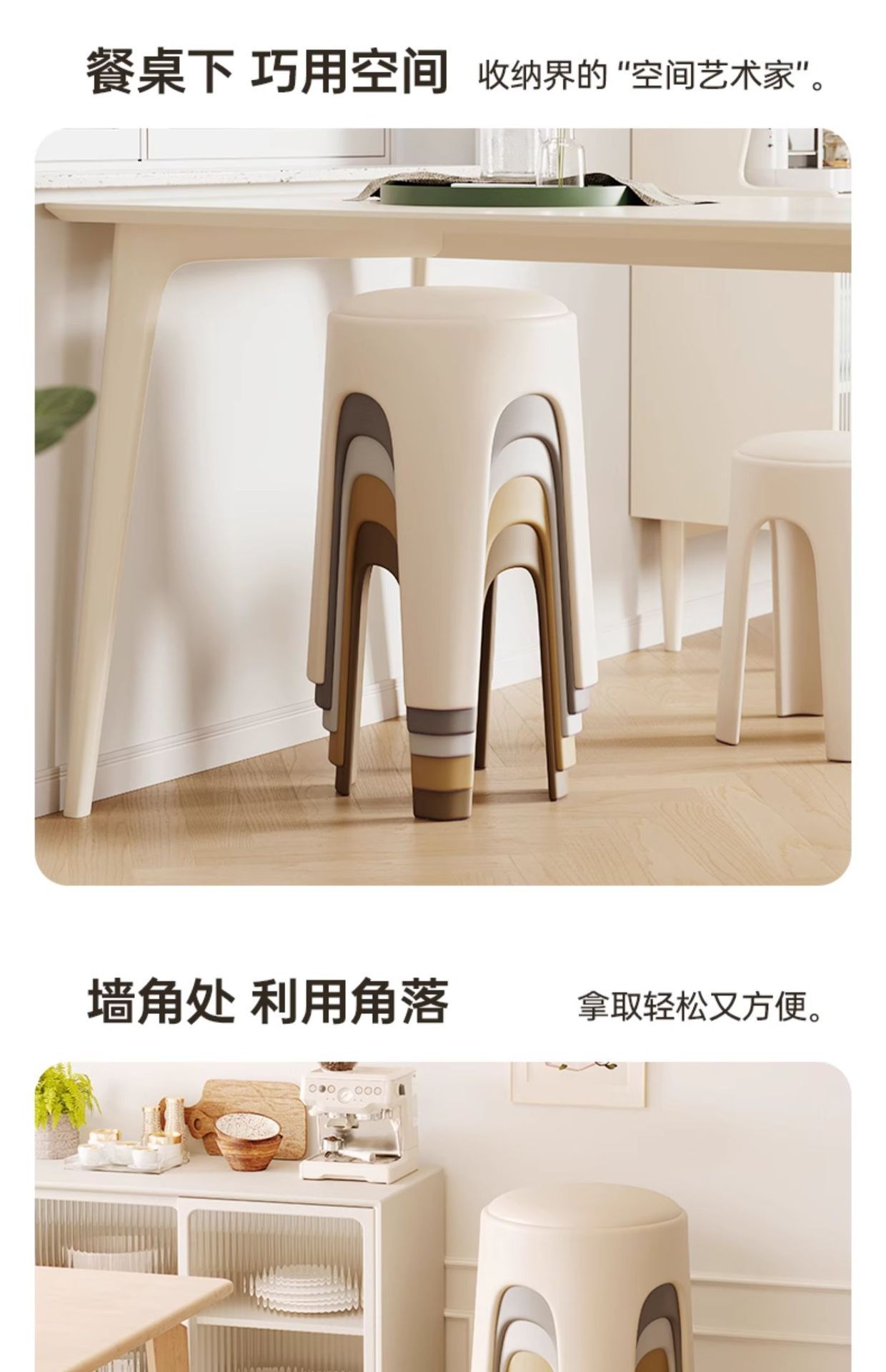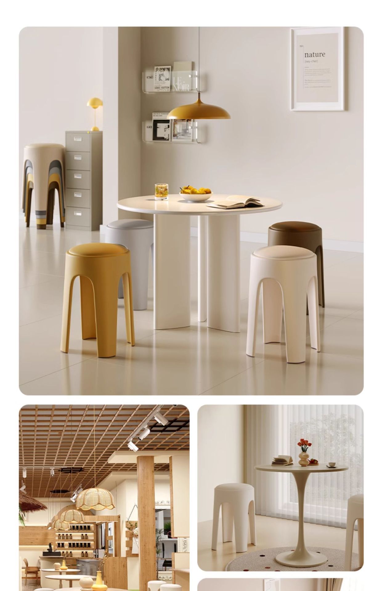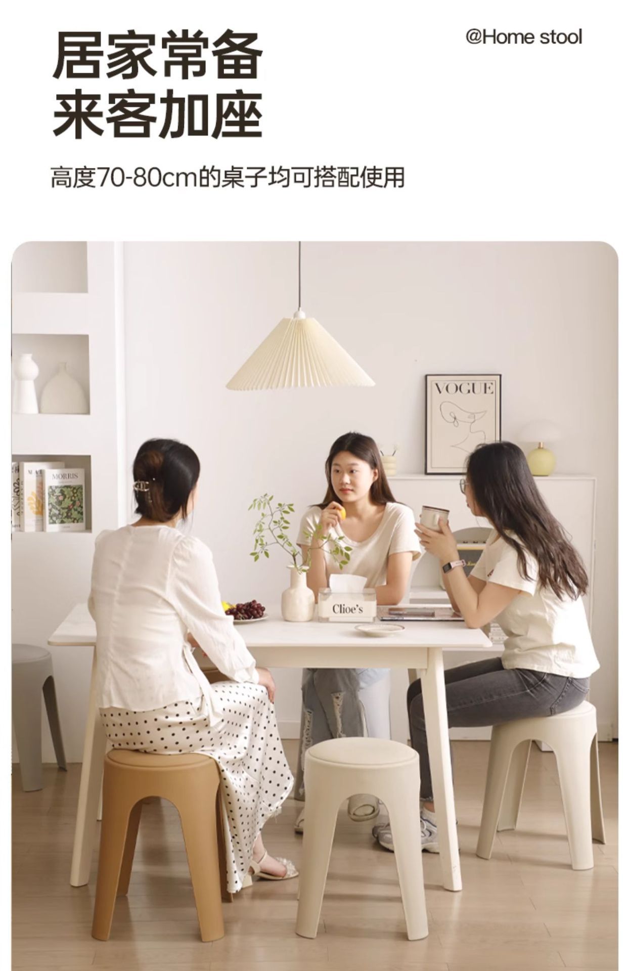 Los taburetes de plástico se pueden apilar para el hogar, taburetes redondos de crema de lujo ligero, mesa y silla de comedor de sala de estar, sillas de repuesto resistentes y duraderas