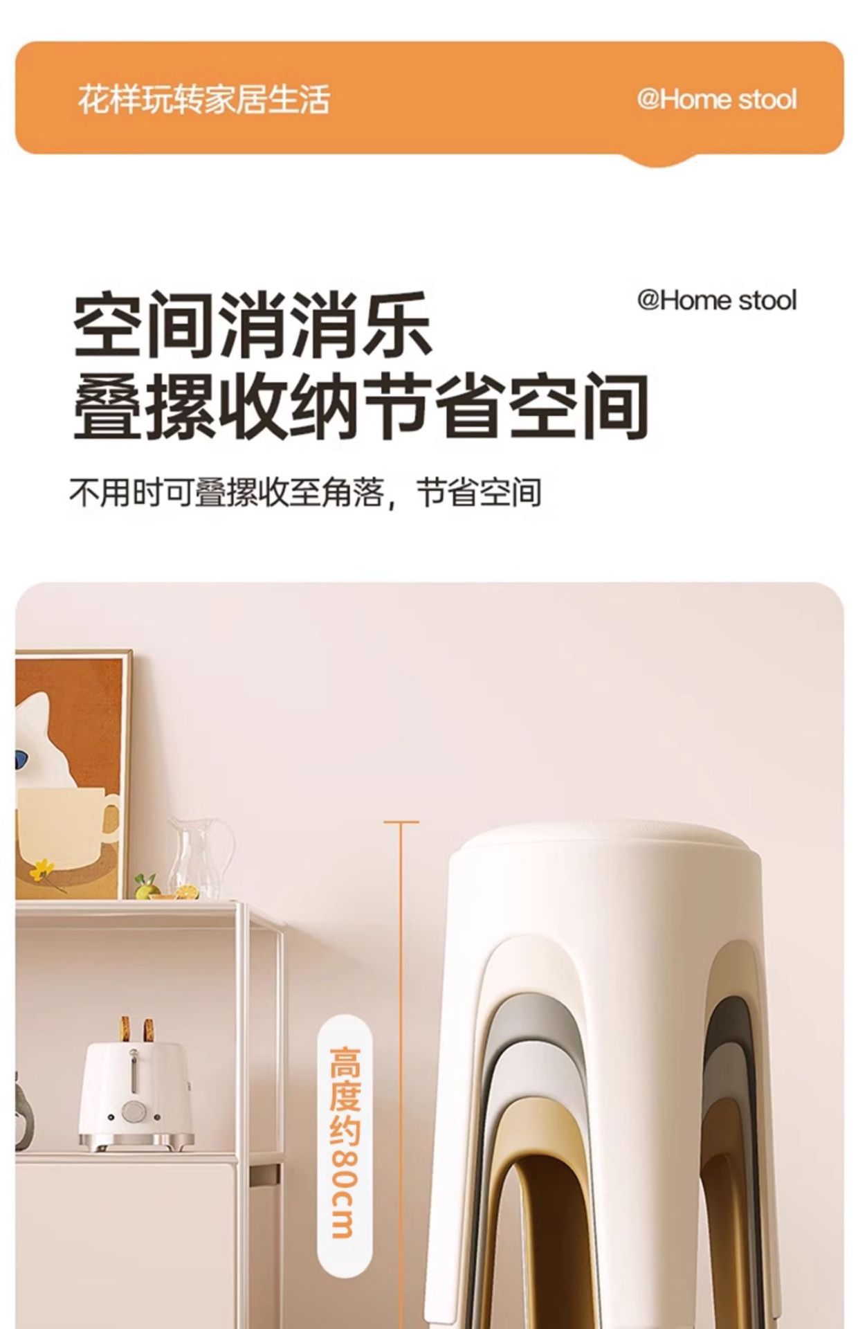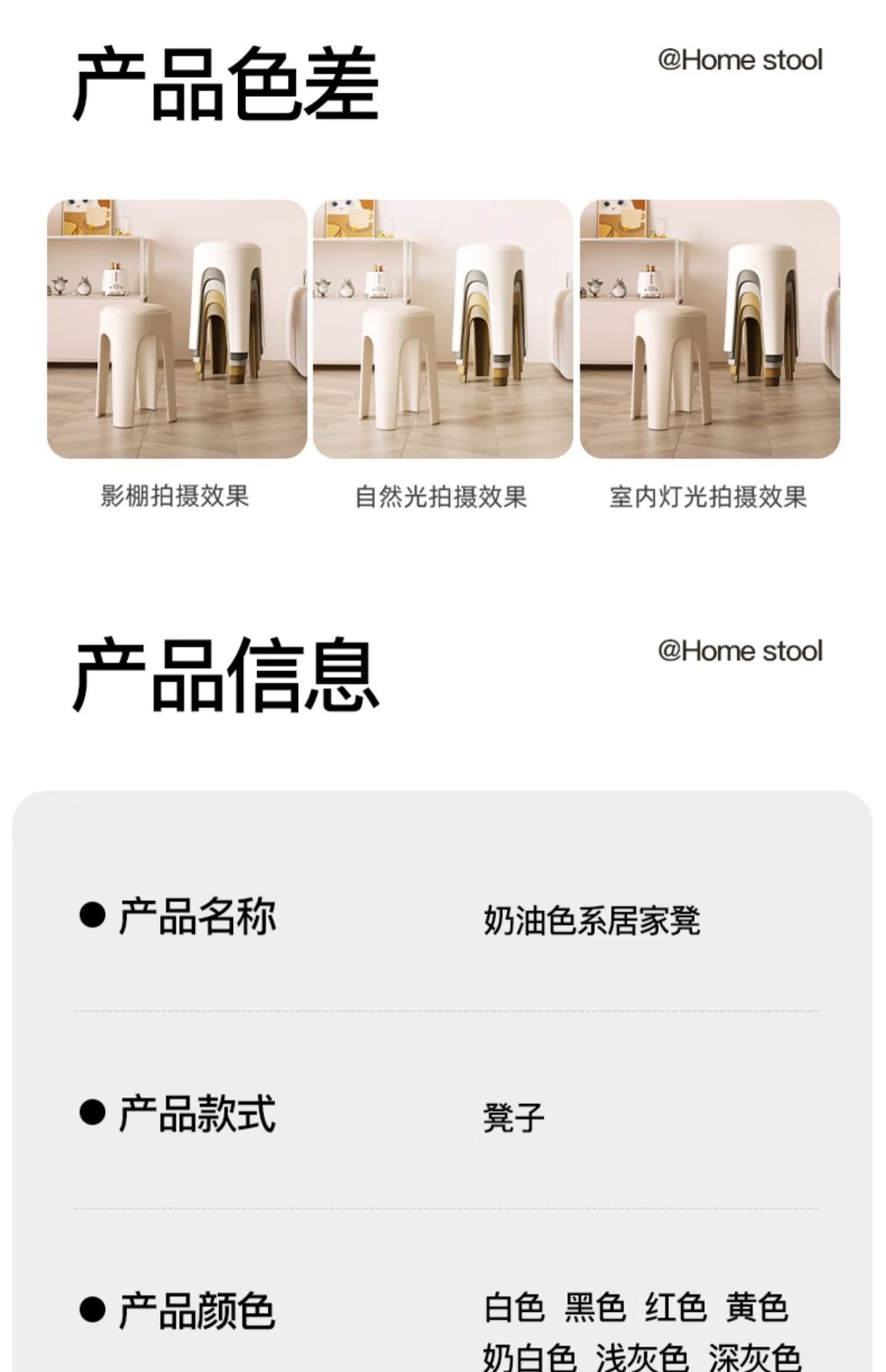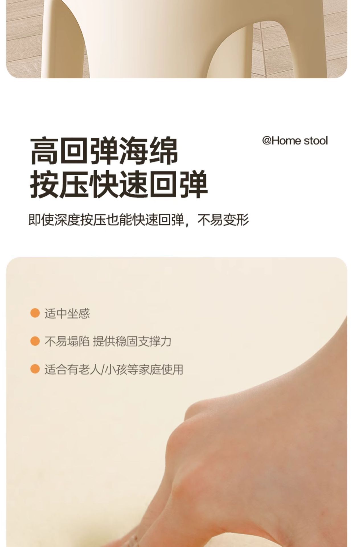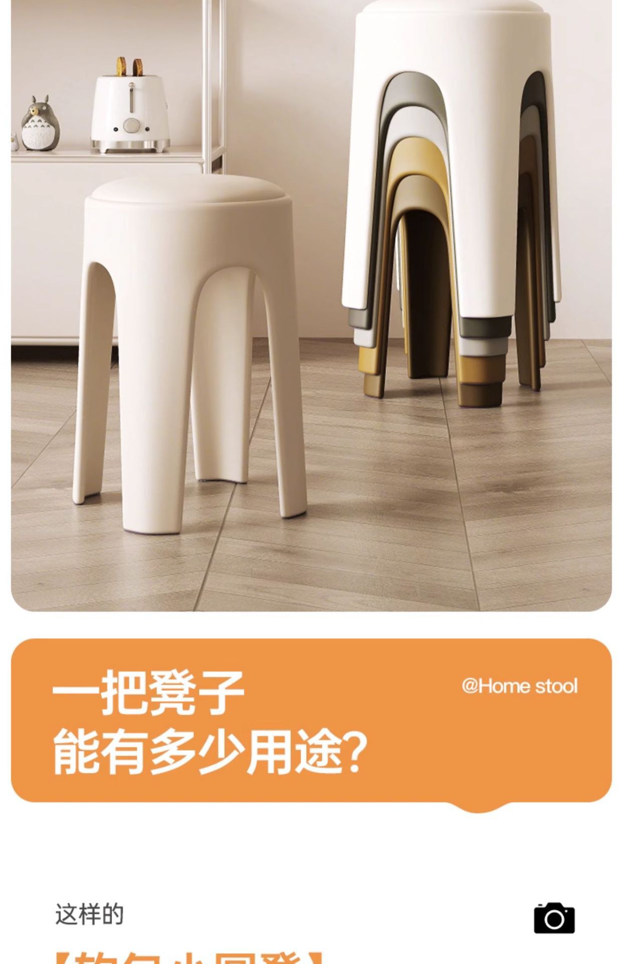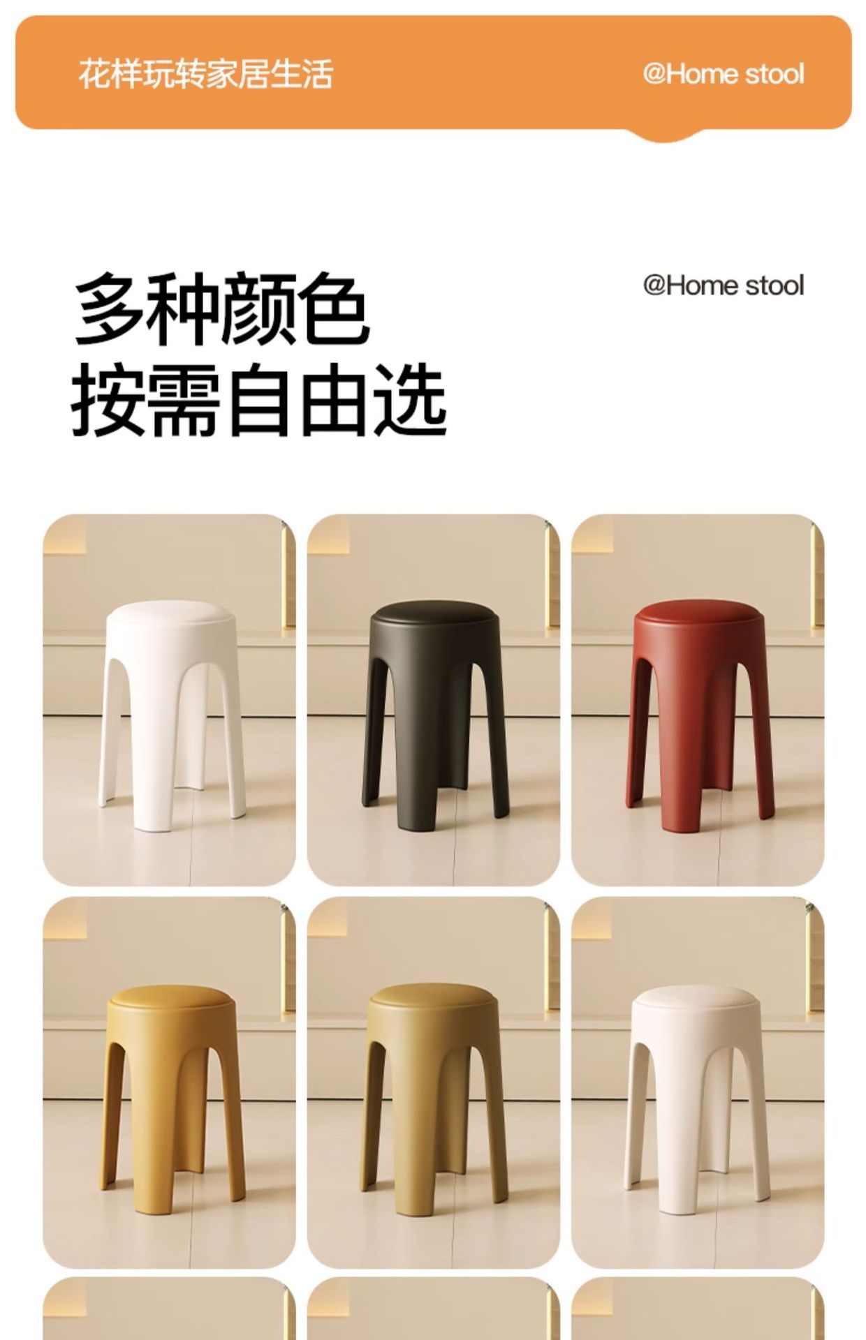 Los taburetes de plástico se pueden apilar para el hogar, taburetes redondos de crema de lujo ligero, mesa y silla de comedor de sala de estar, sillas de repuesto resistentes y duraderas