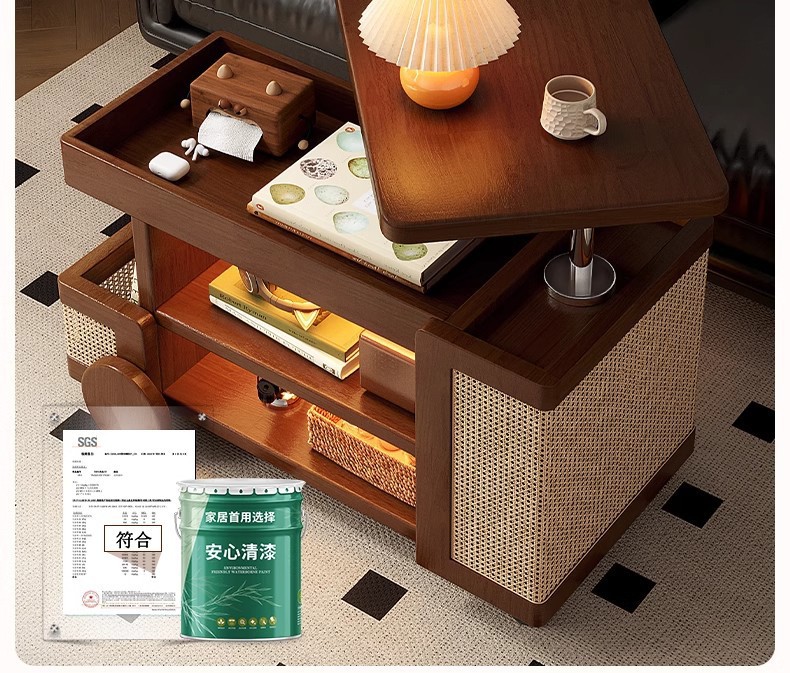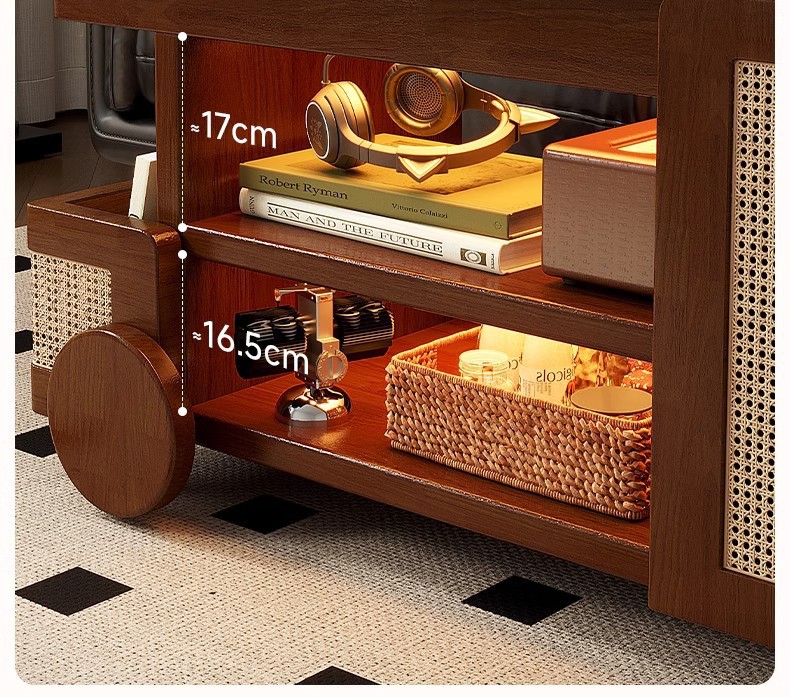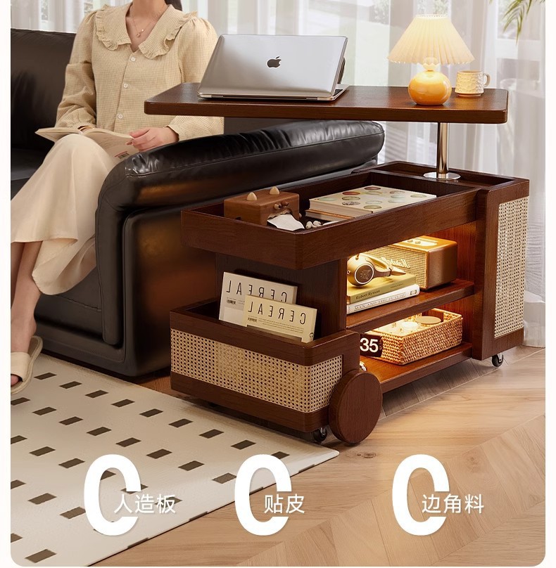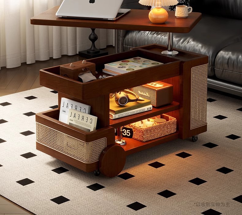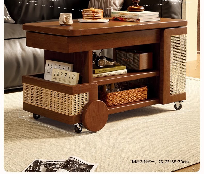 Mesa de centro móvil de madera maciza, tipo elevable, apartamento pequeño, sala de estar, sofá doméstico, armario lateral, carro pequeño, mesa lateral de autobús