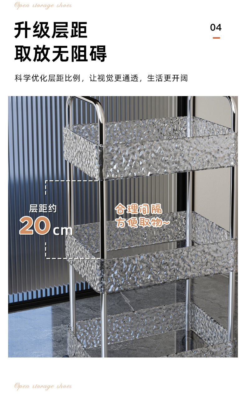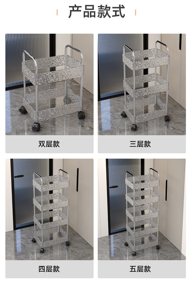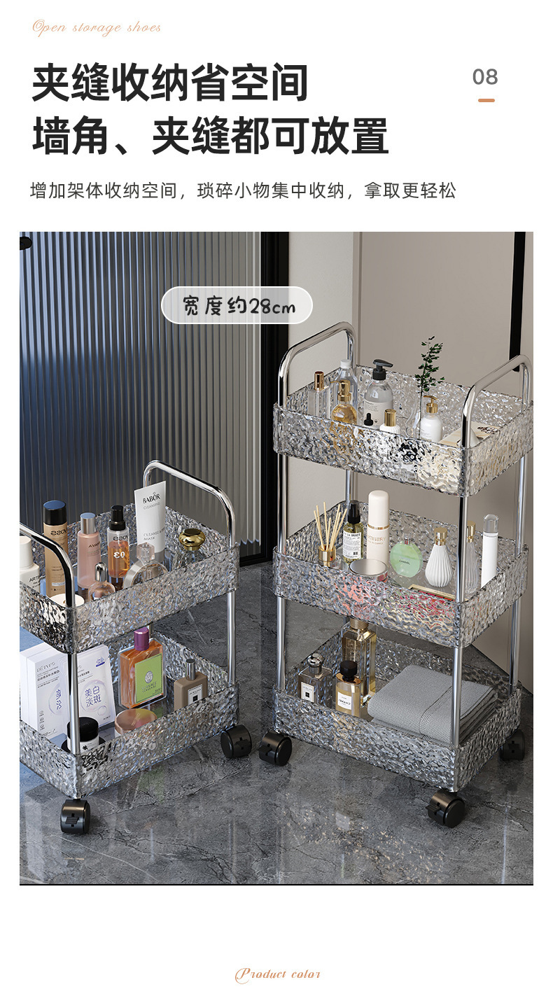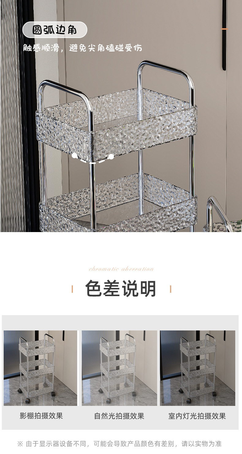 Estante, sala de estar para el hogar, cochecito, cocina, baño, piso, estante de almacenamiento multicapa, ondulación de agua, empuje pequeño