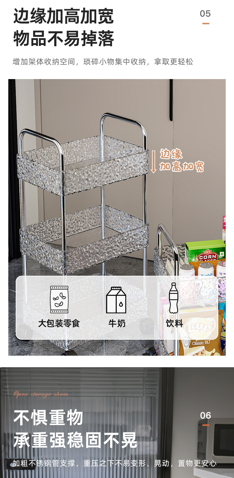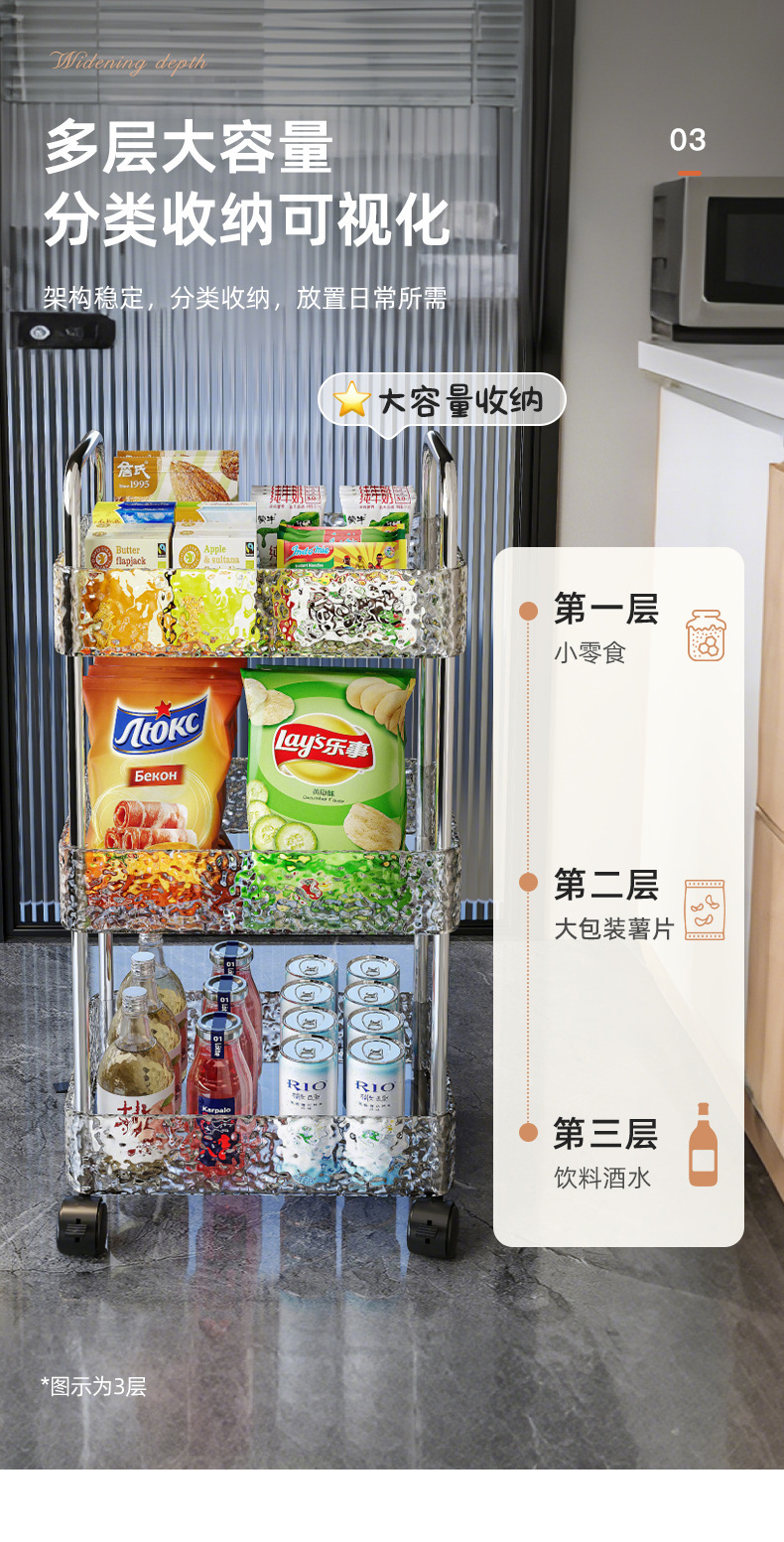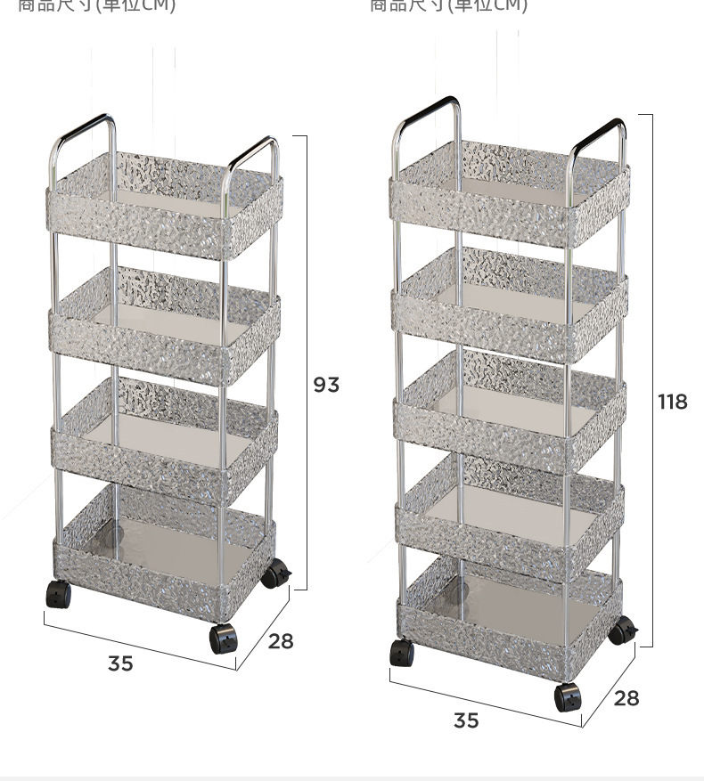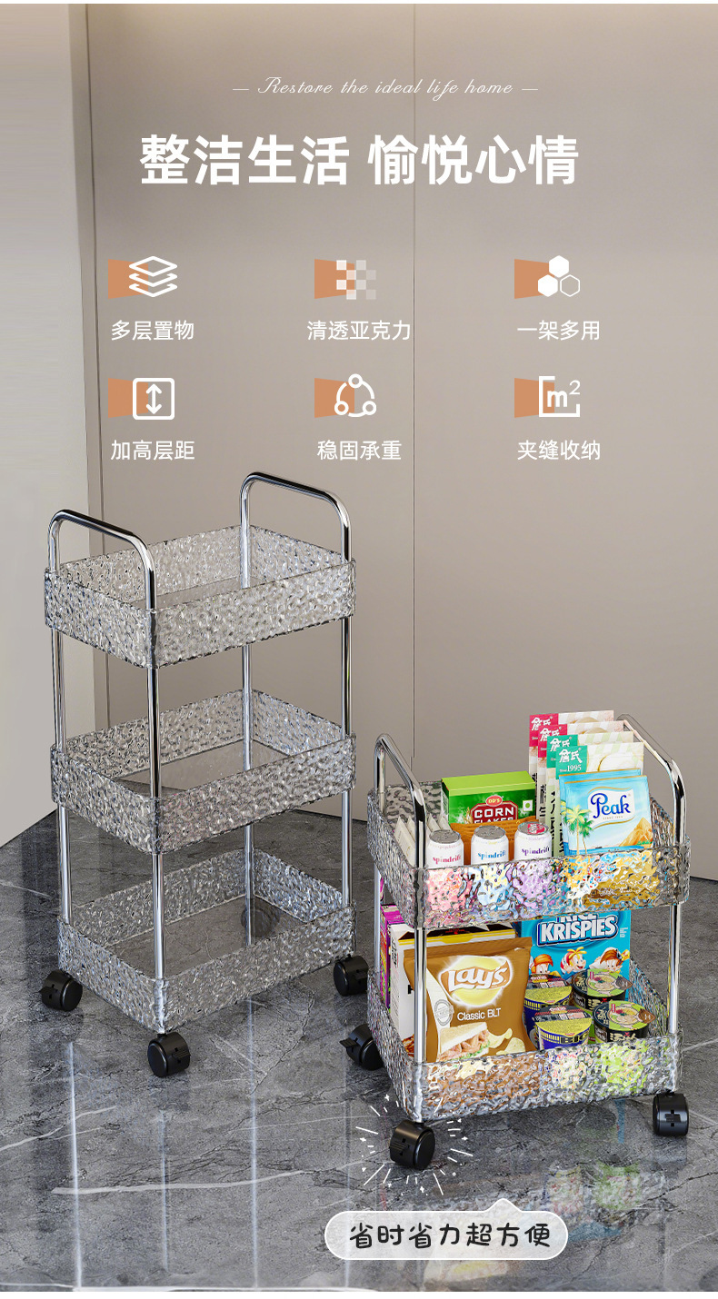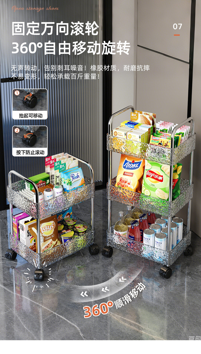 Estante, sala de estar para el hogar, cochecito, cocina, baño, piso, estante de almacenamiento multicapa, ondulación de agua, empuje pequeño