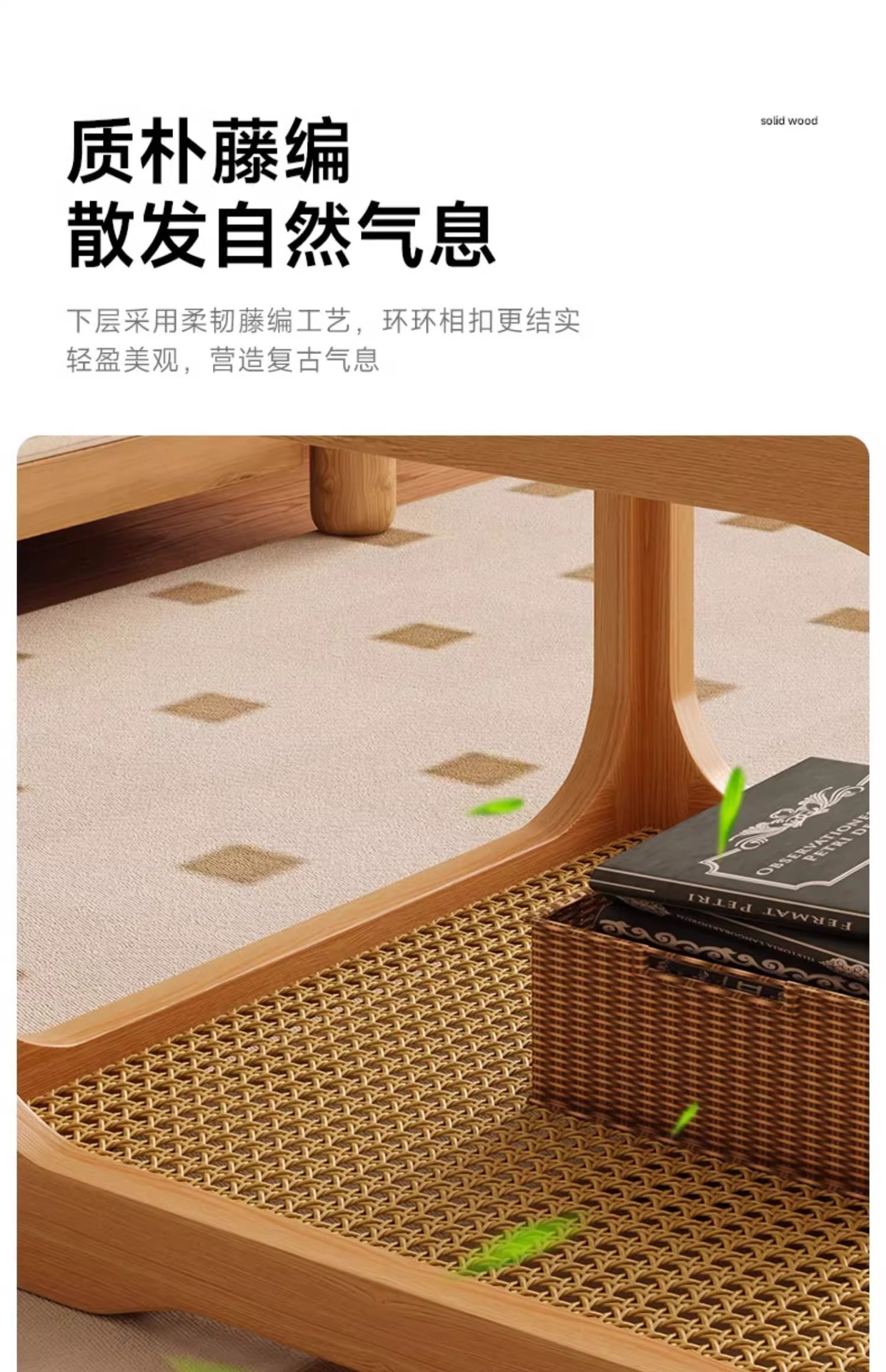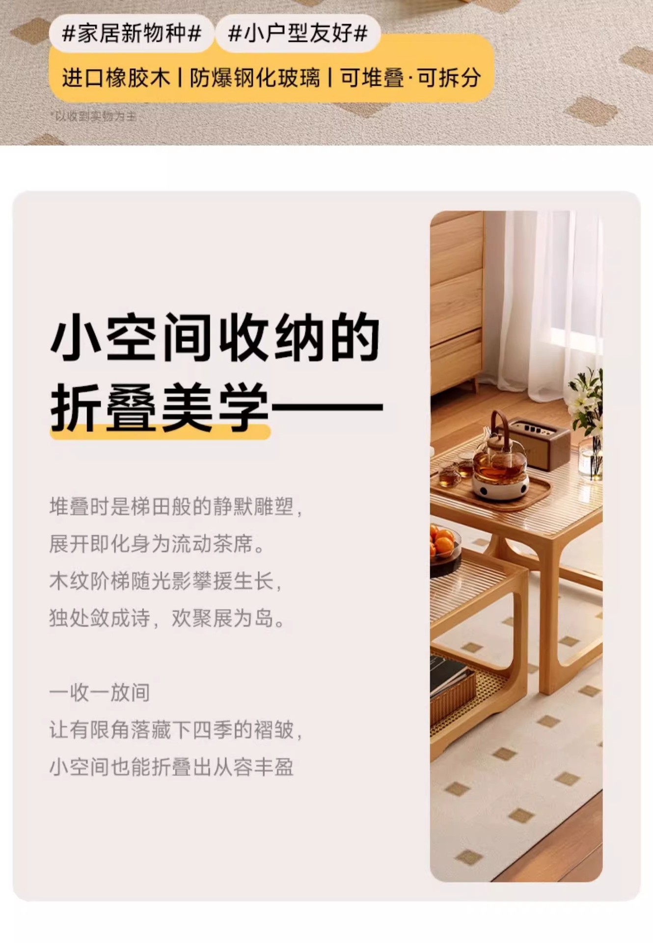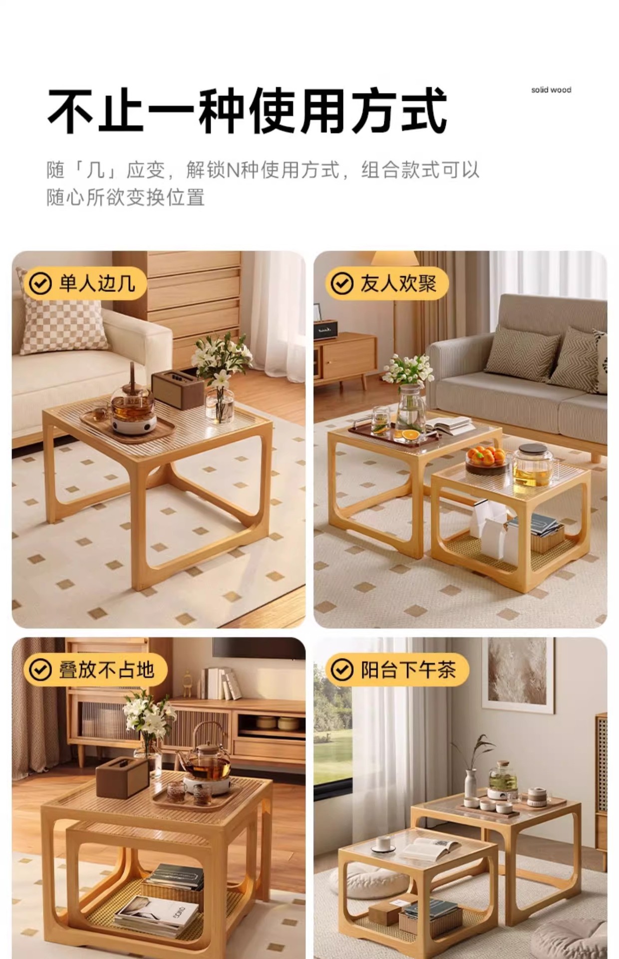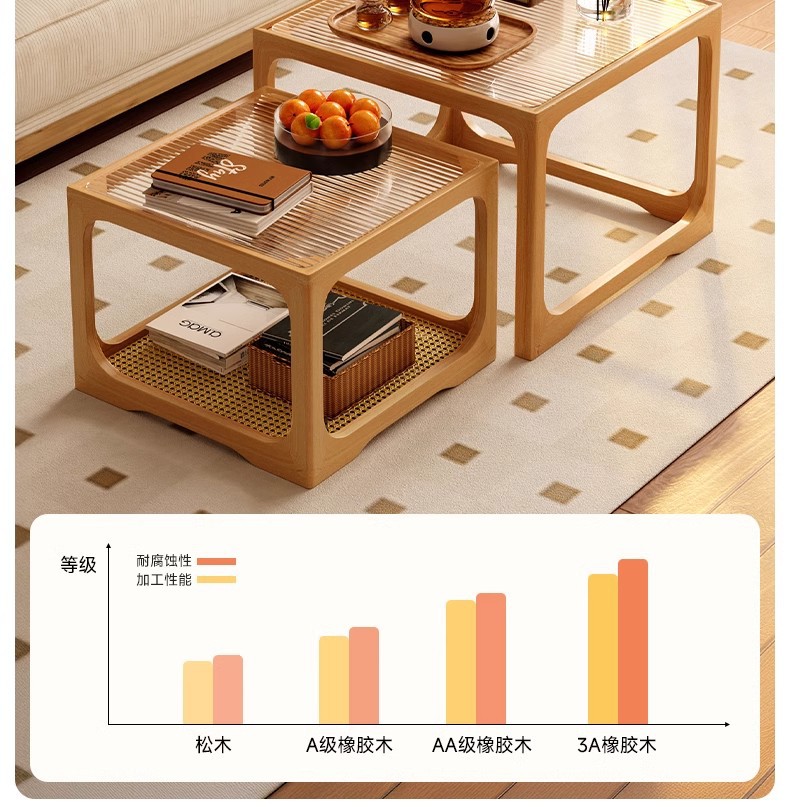 Mesa de centro de vidrio de madera, sala de estar, mesa de té de apartamento pequeño para el hogar 2025 nueva mesa lateral de combinación cuadrada, mesa de té pequeña de ratán