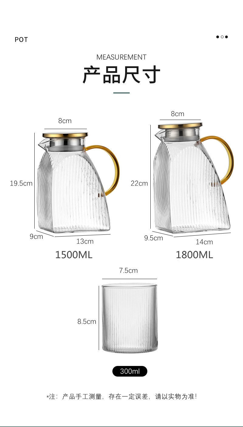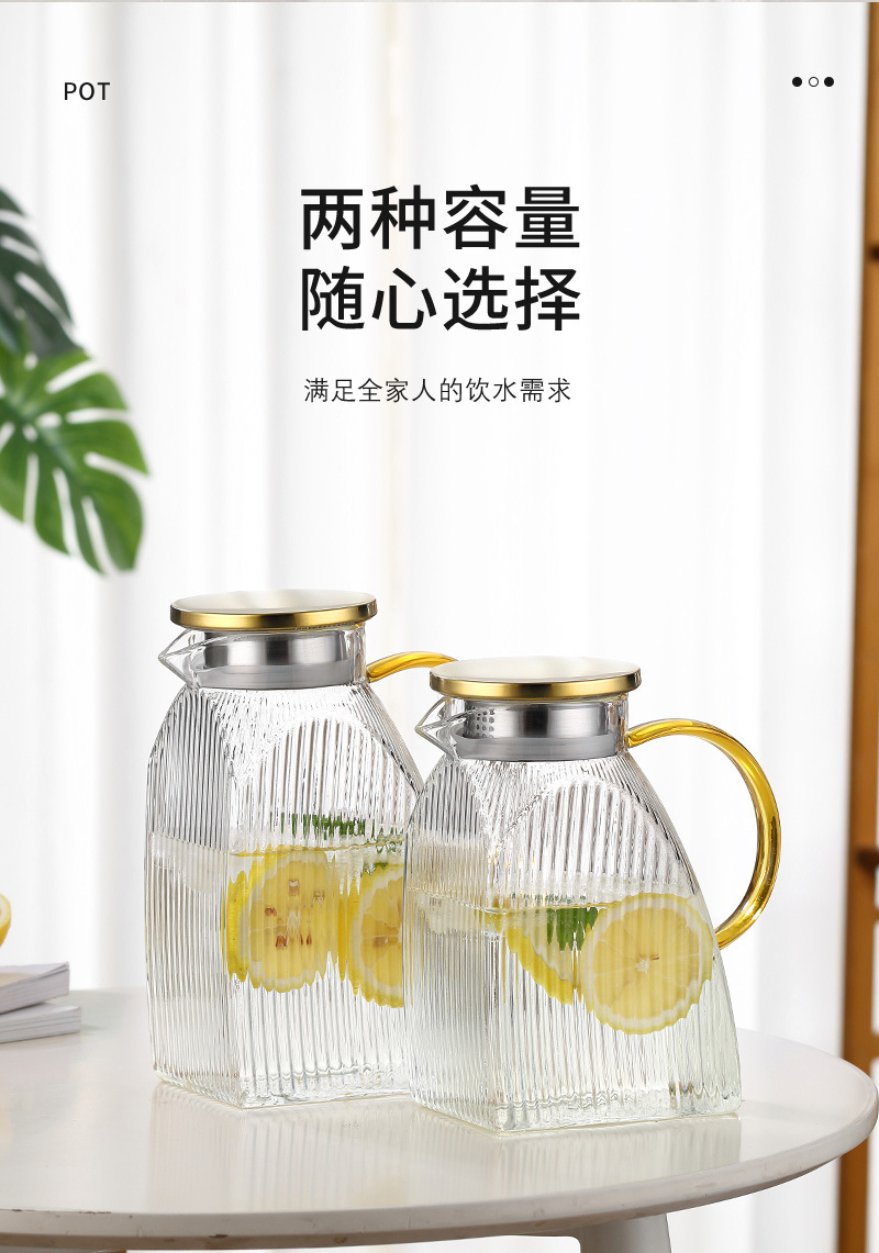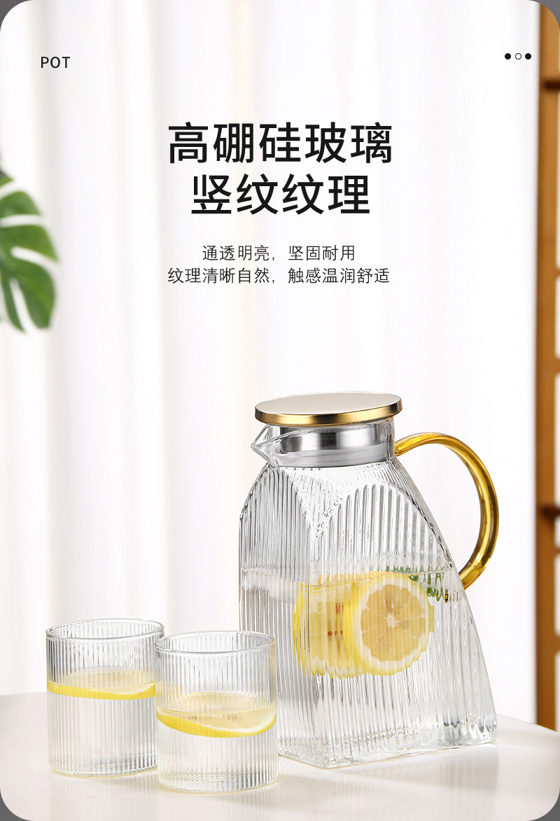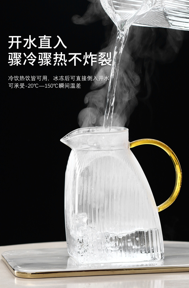vidrio de alta borosilicona resistente a altas temperaturas jugo doméstico ondulado hervidor refrigerador hervidor de agua fría gran capacidad vidrio de lujo ligero