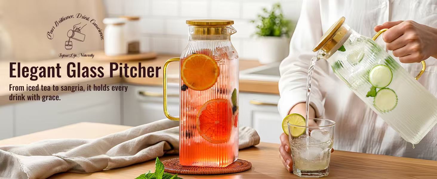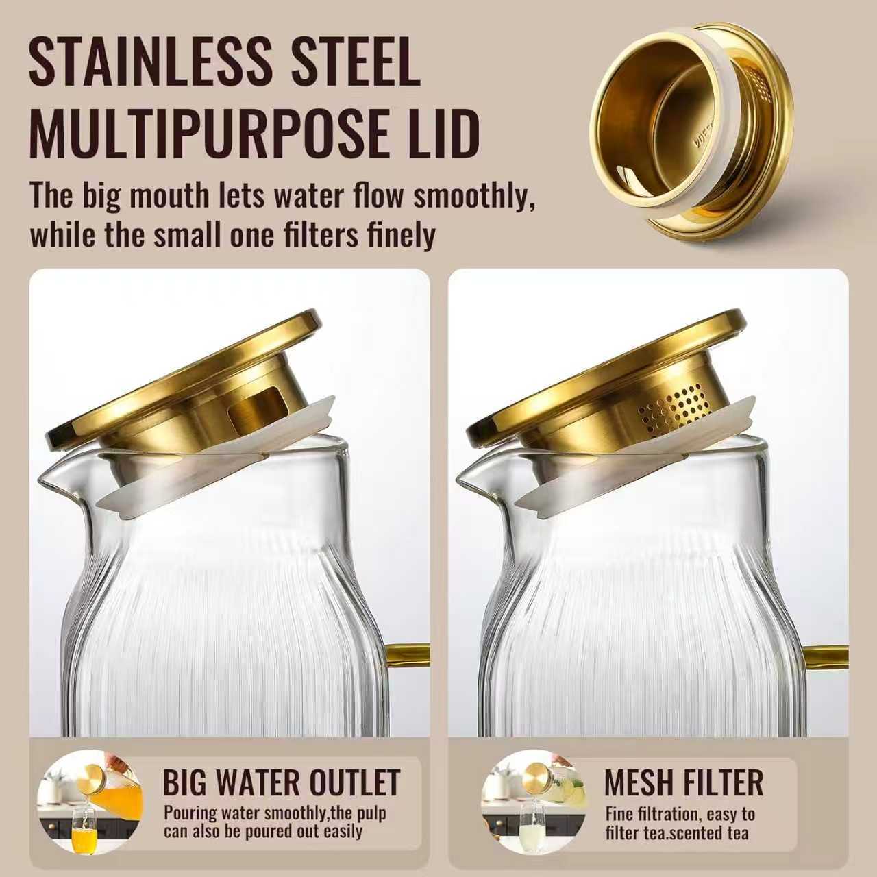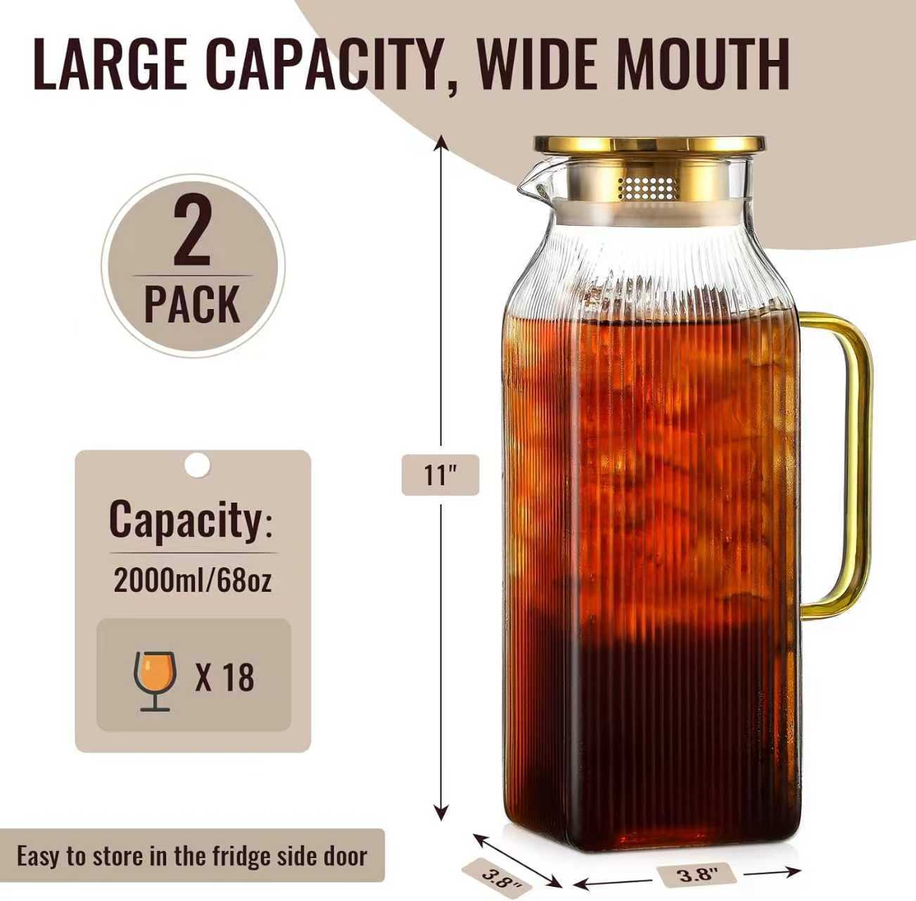 Botella de agua fría de vidrio con alto contenido de borosilicato, restaurante doméstico, olla de jugo engrosada con aislamiento térmico de gran capacidad, olla de bebida fría de alta calidad