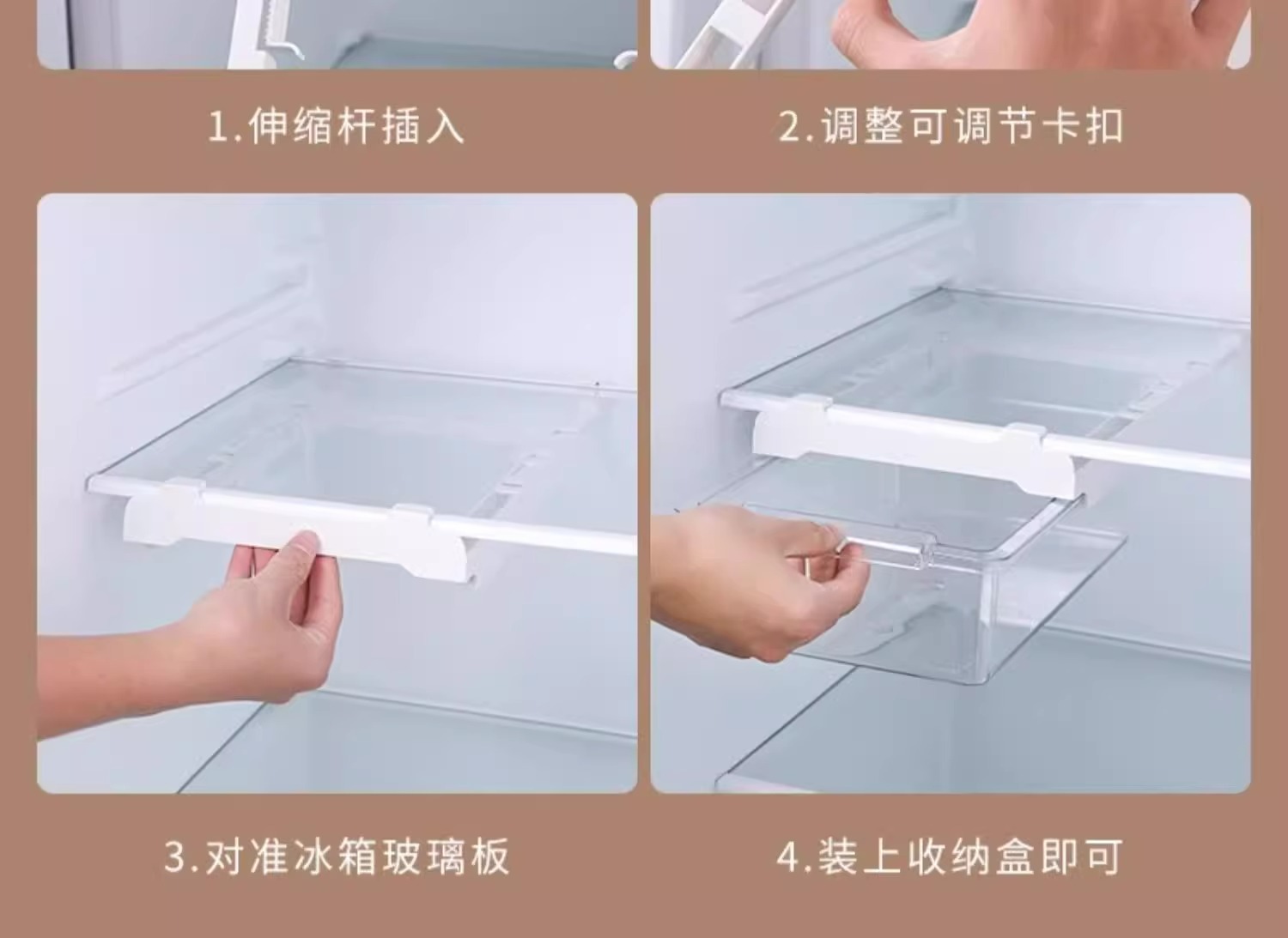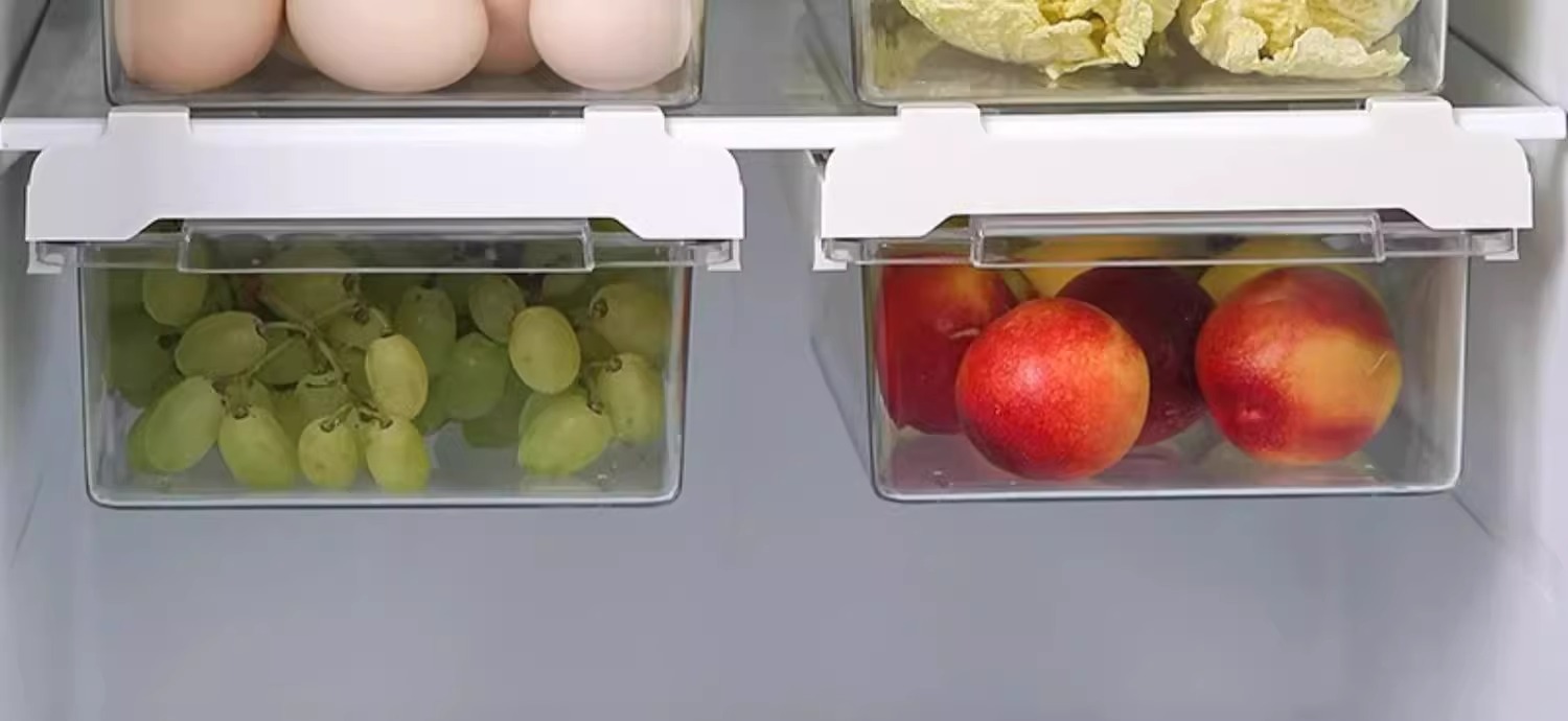 Caja de almacenamiento tipo cajón del refrigerador, canastas colgantes, huevos colgantes en el interior, estante de almacenamiento congelado fresco de la cocina, artefacto de soporte