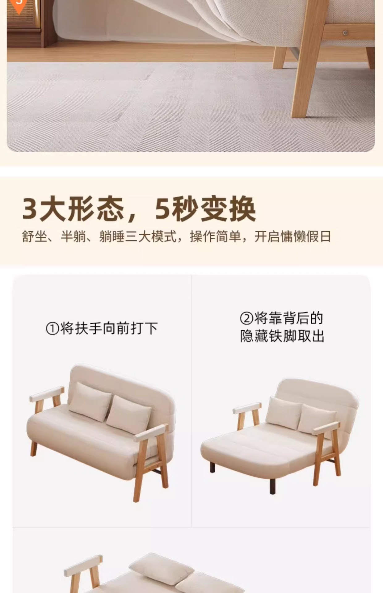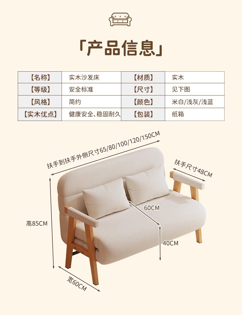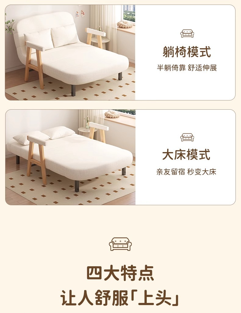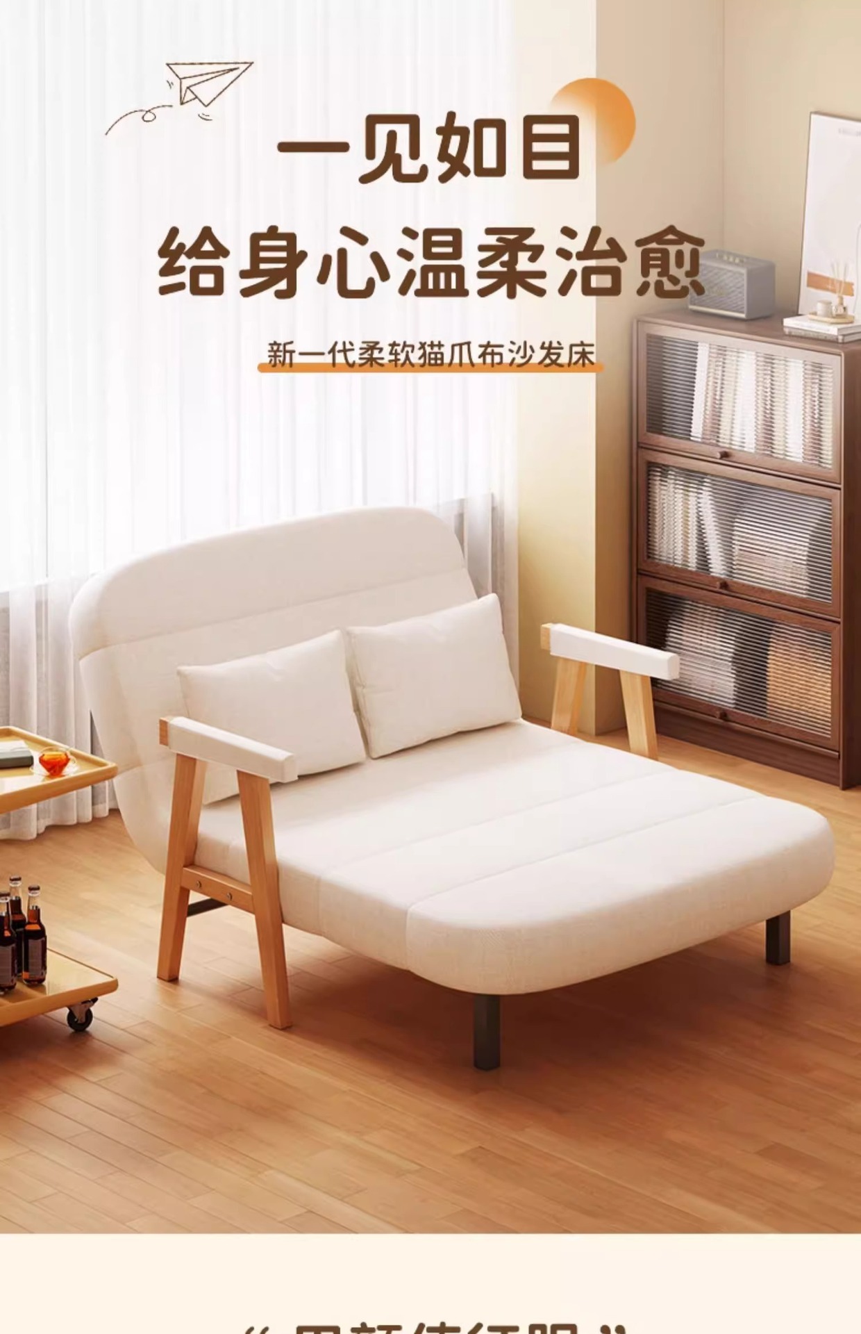 Sofá cama plegable 2024 nuevo tipo de madera maciza multifuncional pequeña casa en línea rojo cama individual cama telescópica doméstica