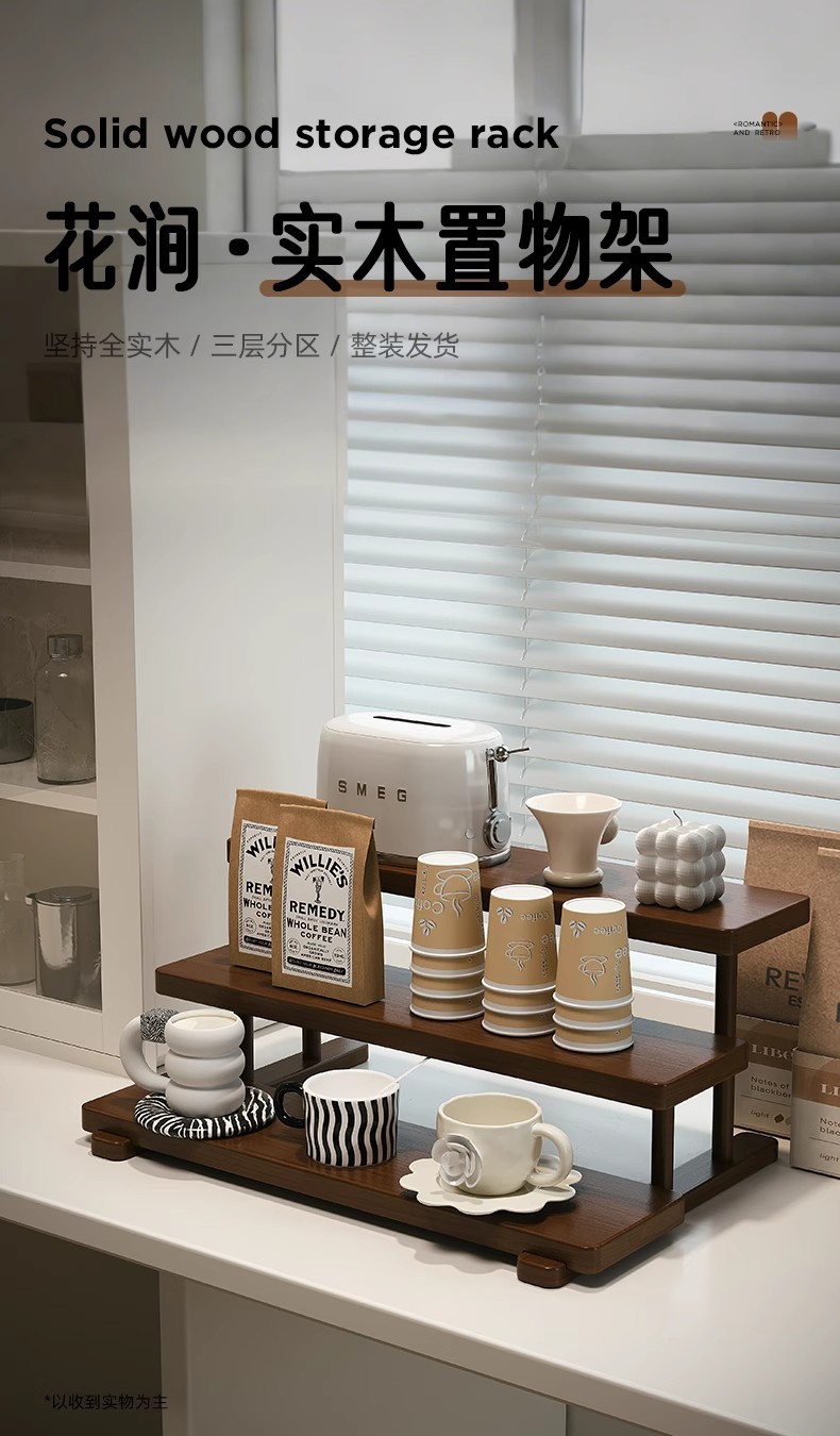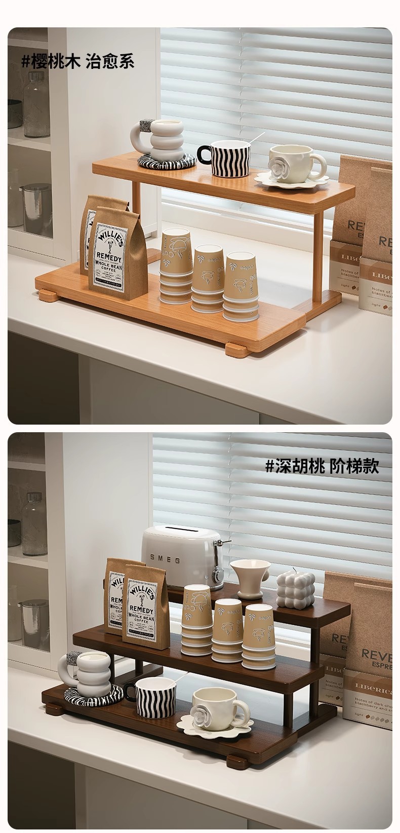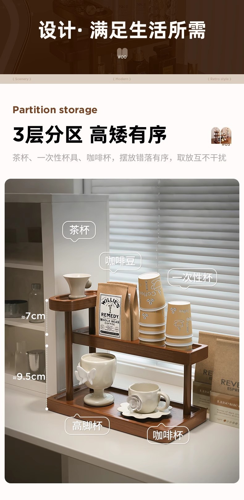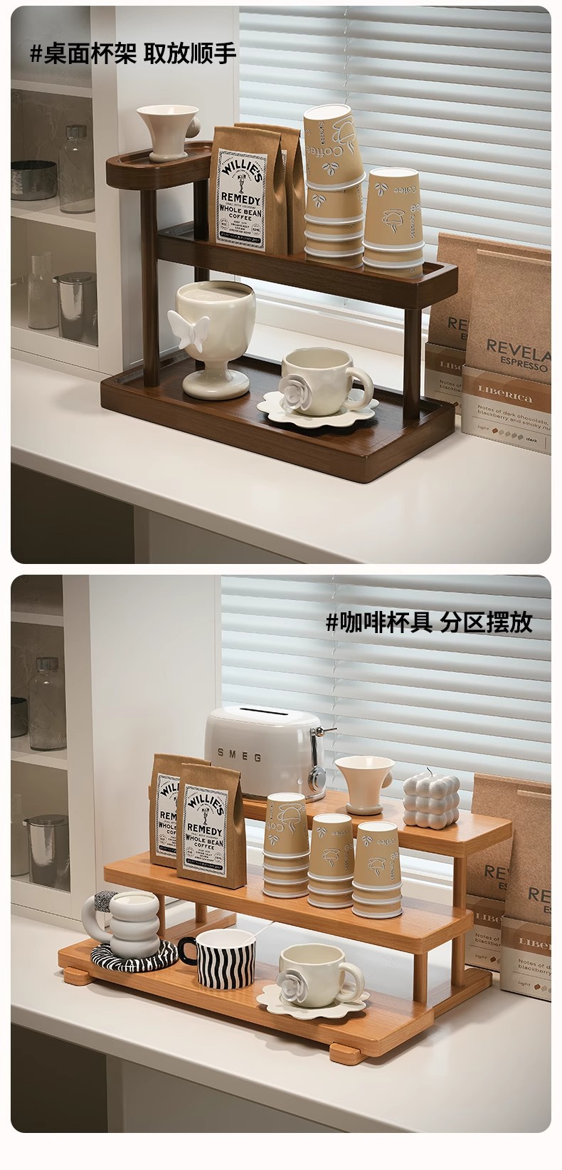 Estante de almacenamiento de tazas de madera maciza Taza de nogal negro Estante de taza de agua Taza de café Estante de almacenamiento de lujo ligero de alta calidad