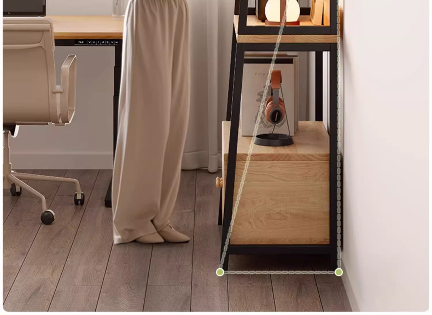 Estante trapezoidal de piso a techo con puerta de gabinete, dormitorio de madera maciza, esquina de la cabecera de la cama, estante de exhibición de la sala de estar, pequeño armario de almacenamiento