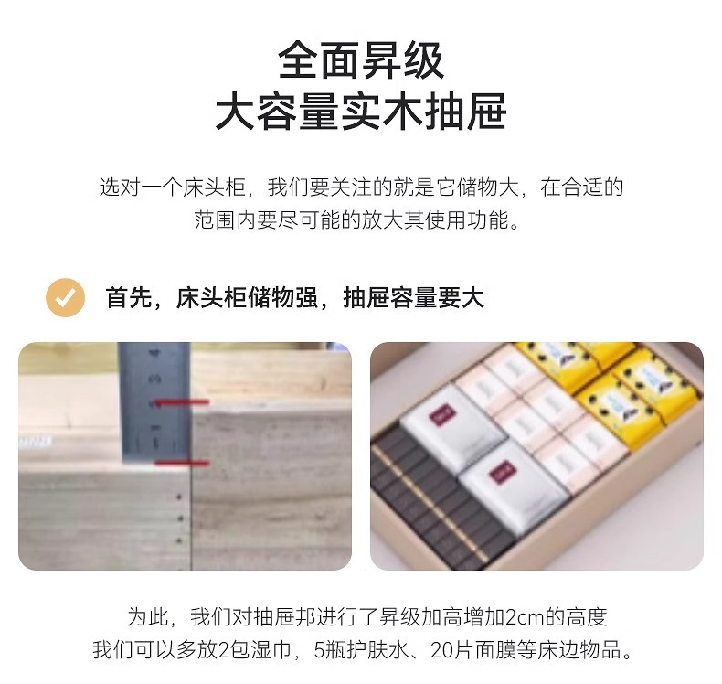 Mesa de cabezal de cama simple y moderna de madera maciza casera de dormitorio armario de almacenamiento de cama lujoso de alta calidad 2024 nuevo estante de almacenamiento