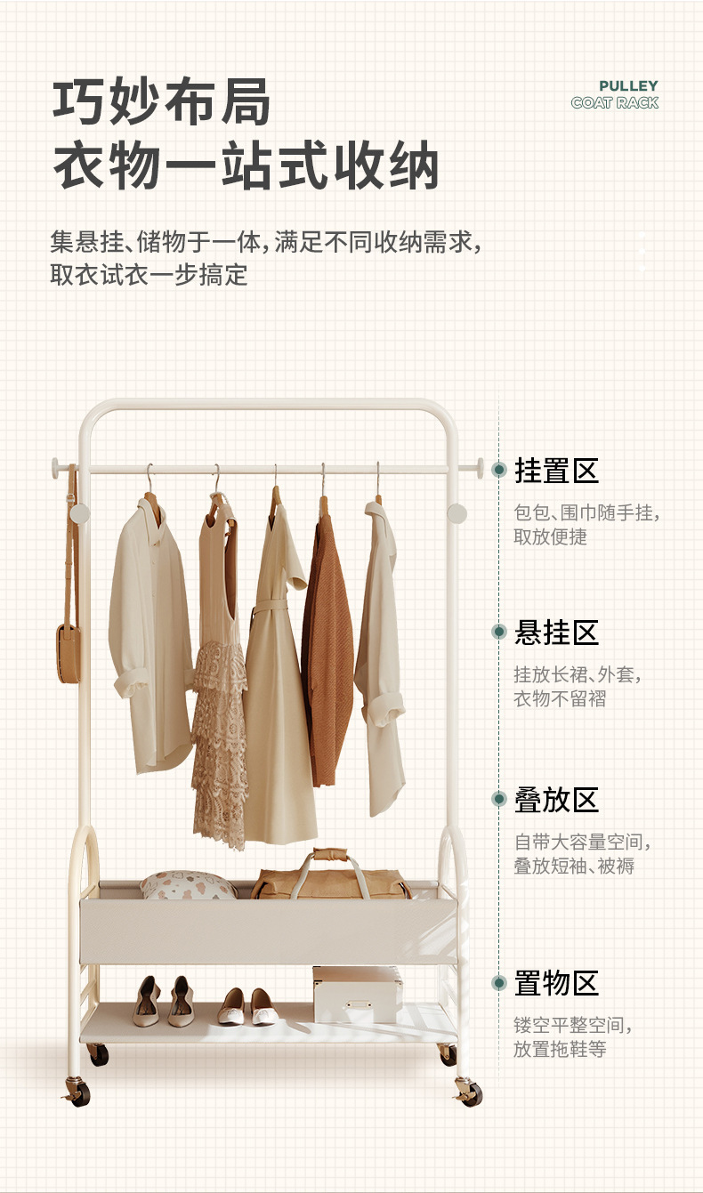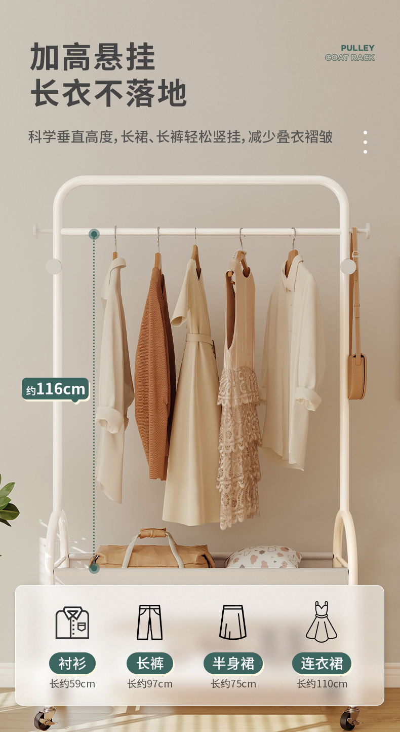 Perchero piso perchero multifunción móvil estante de almacenamiento de estilo antiguo dormitorio perchero de secado doméstico