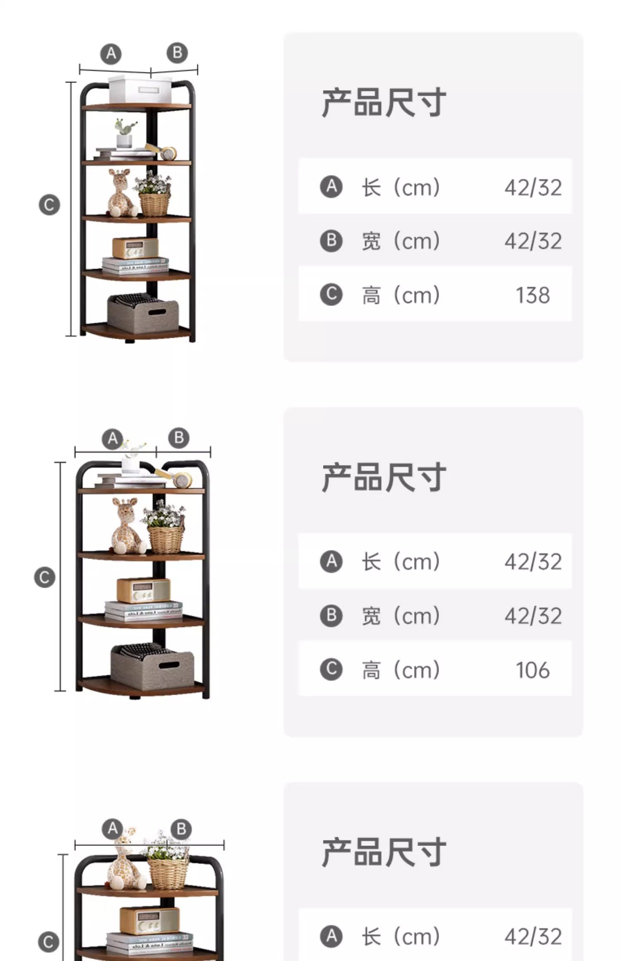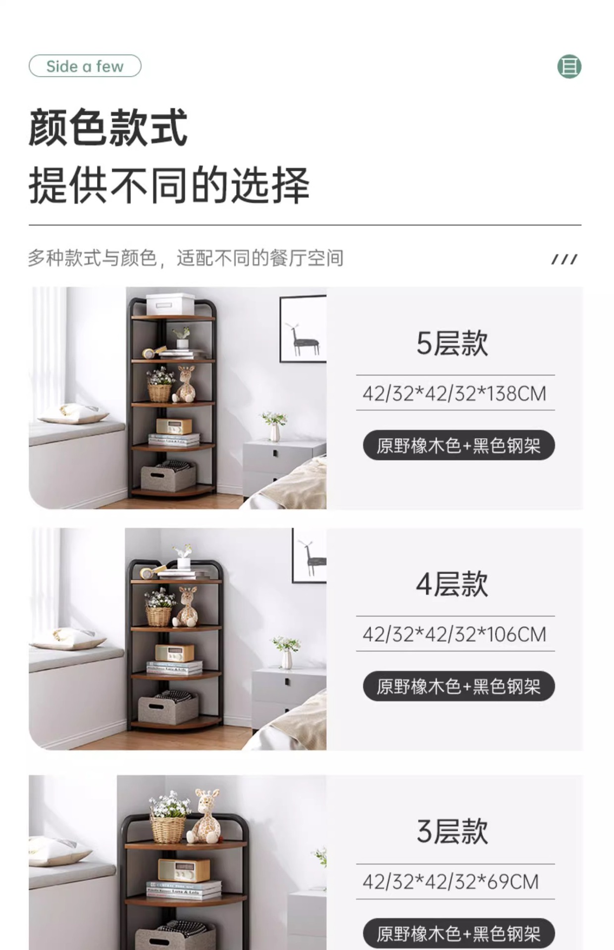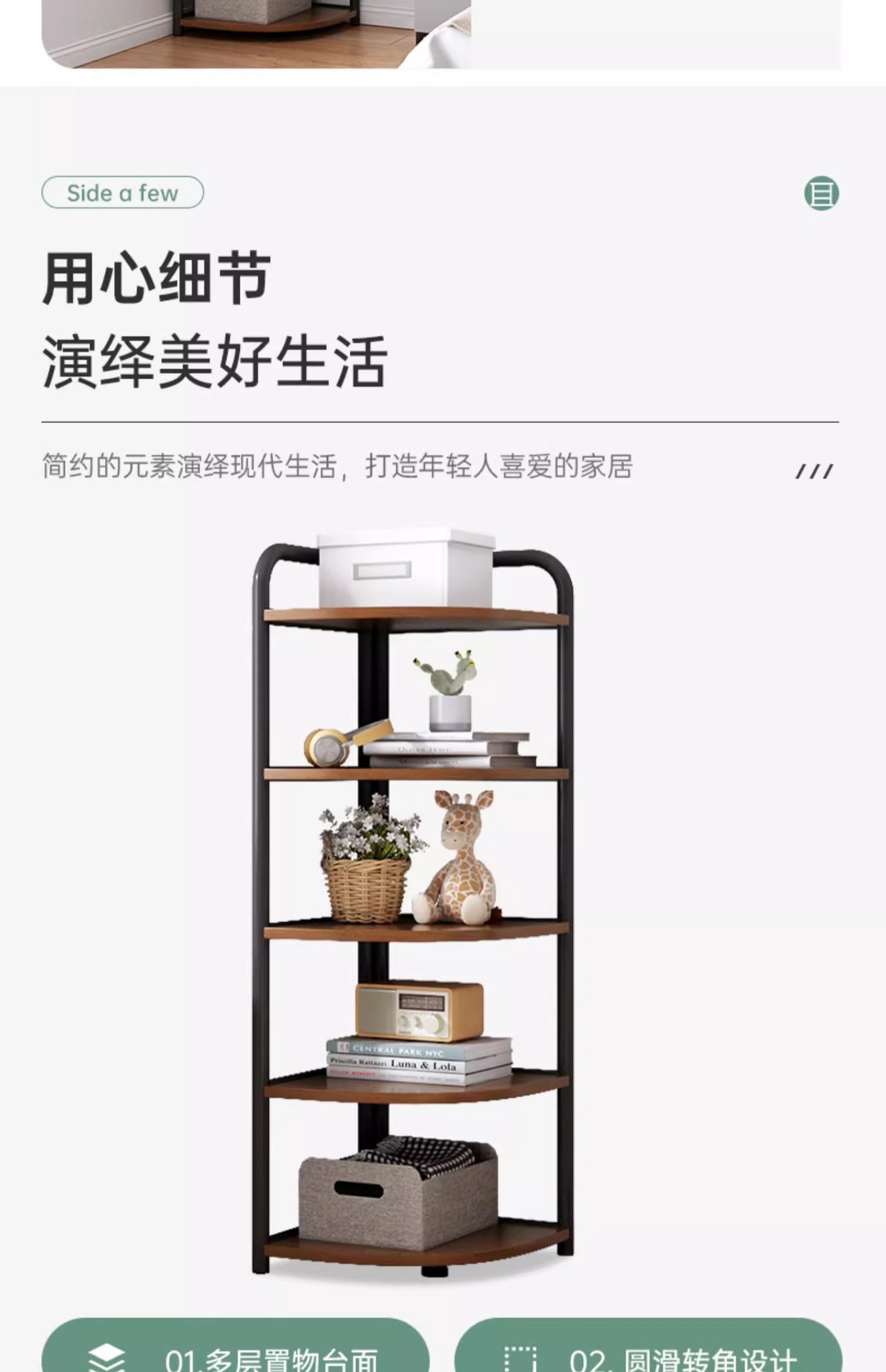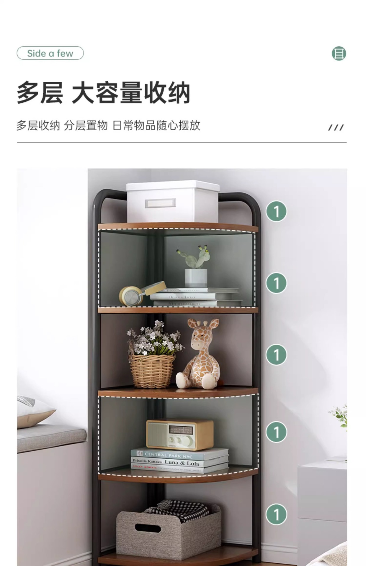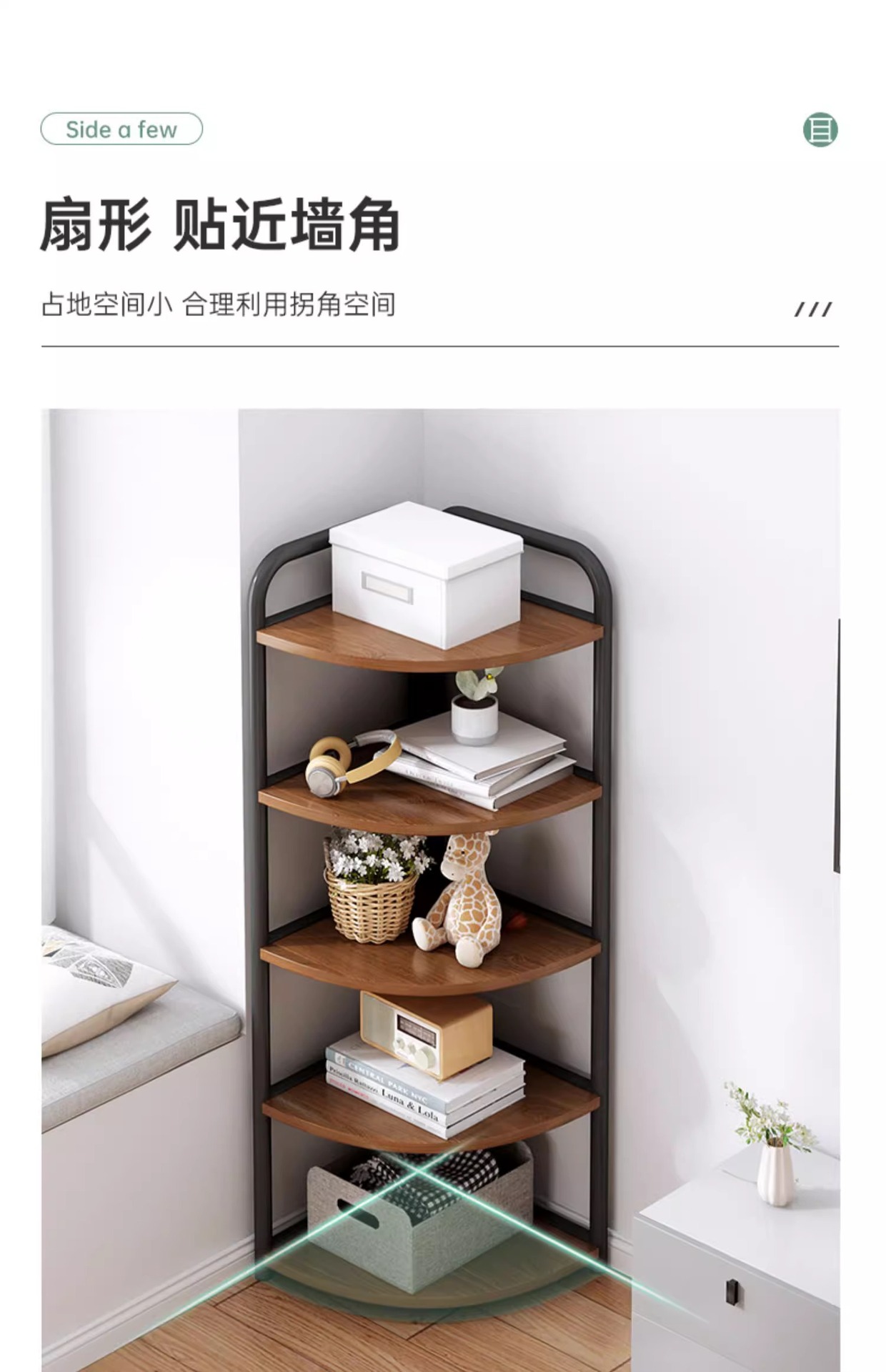 Estantería piso hogar sala de estar simple estante de almacenamiento esquina estantería integrada pared multi-capa Esquina de almacenamiento de hierro rack