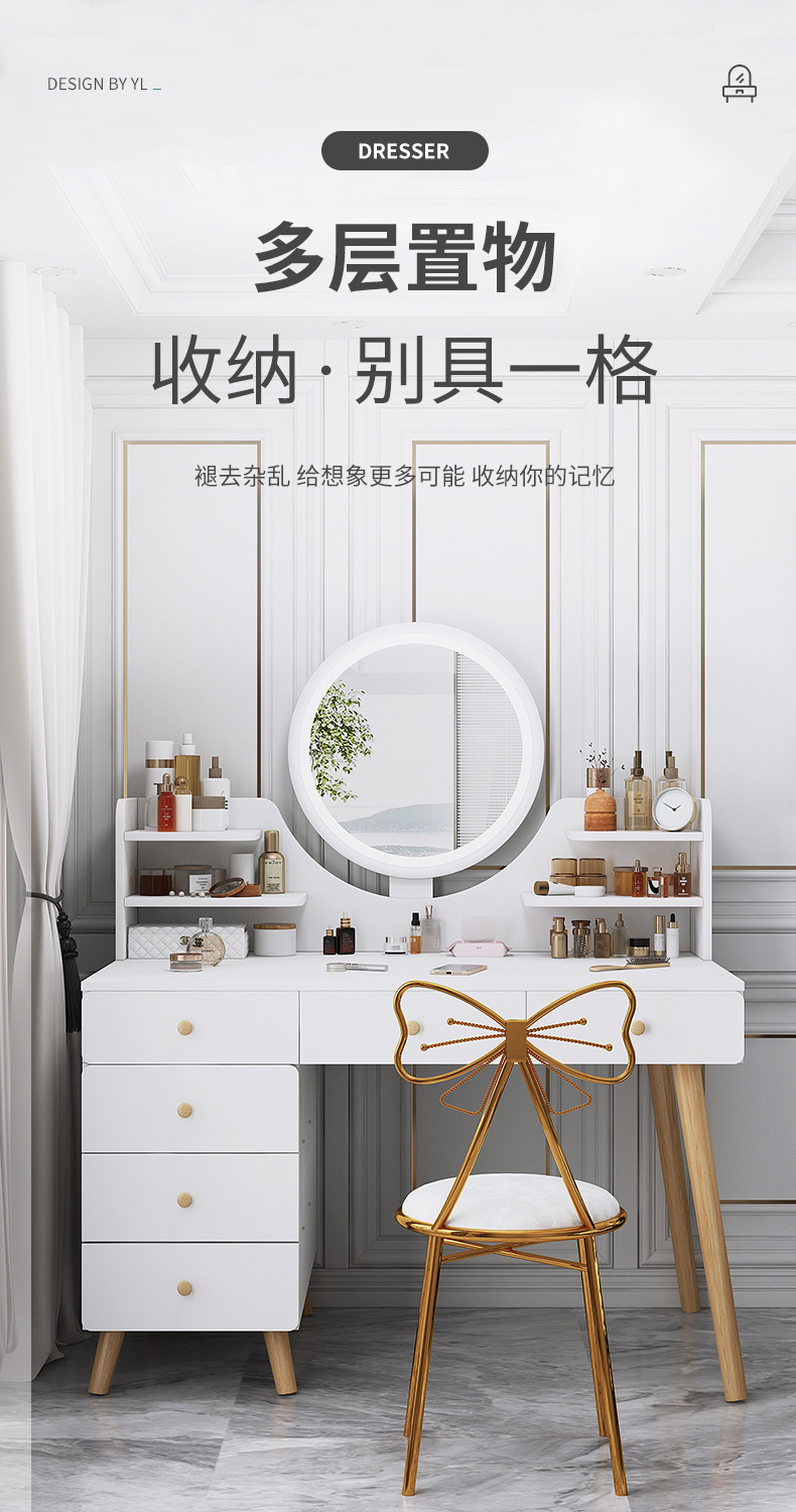 Luz lujo tocador dormitorio moderno simple pequeño apartamento en línea celebridad ins estilo pecho de cajones gabinete de almacenamiento integrado espejo de mesa de maquillaje